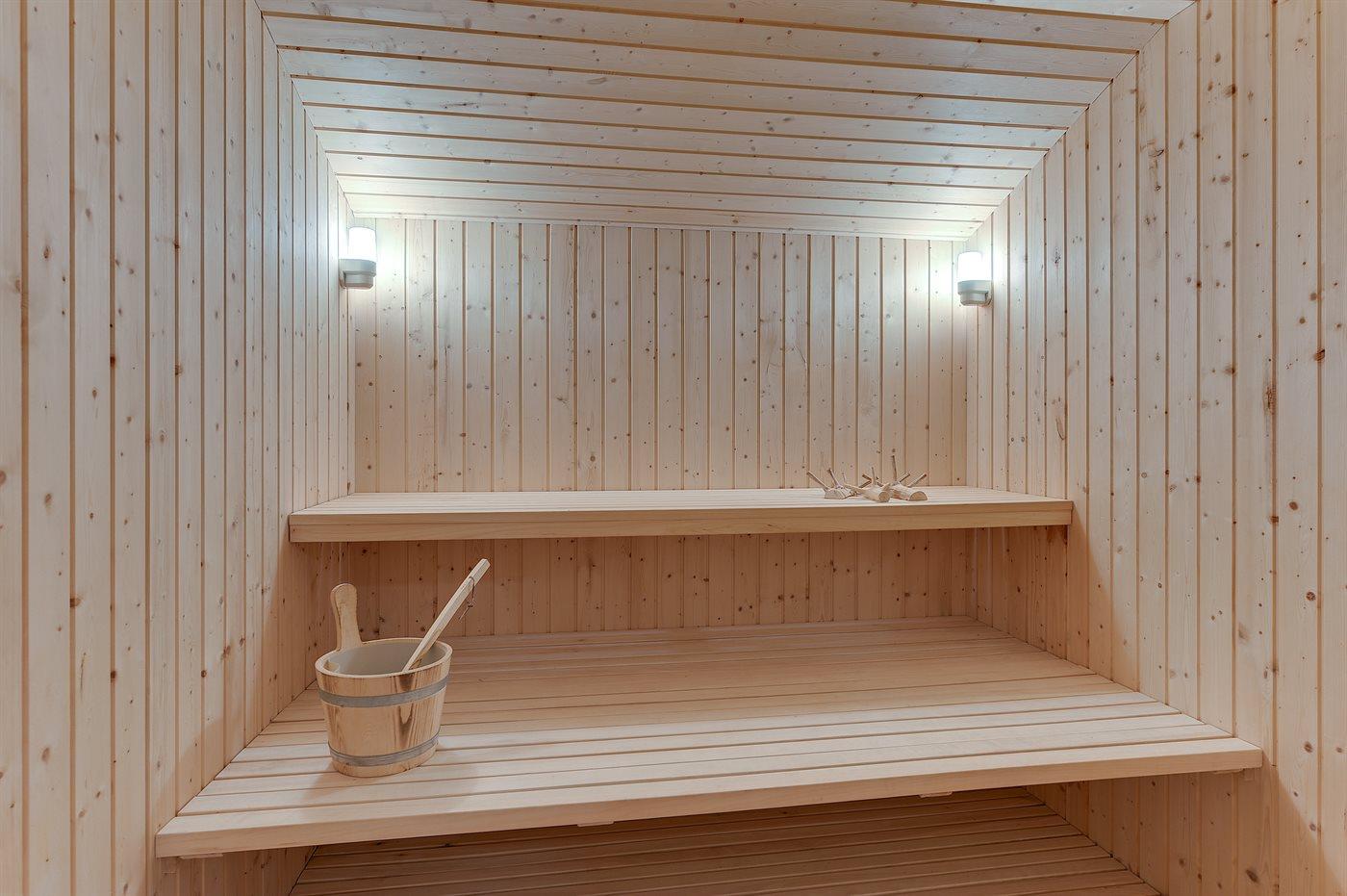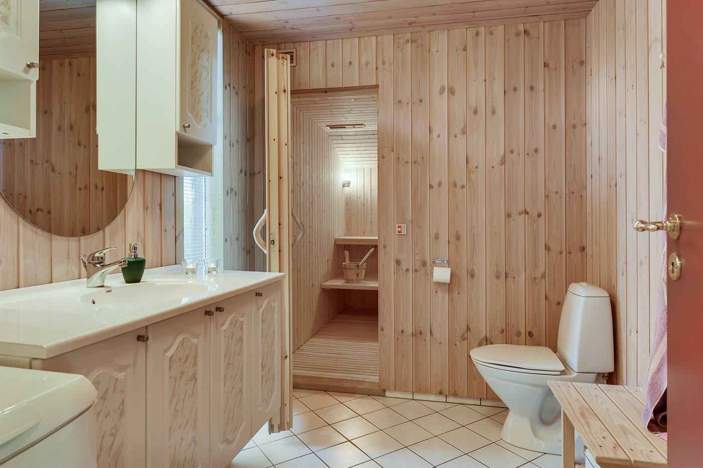 Der er 1 badeværelse med bruseniche og 1 toilet.. Der er gulvvarme på 1 badeværelse. I saunaen er der mulighed for afslapning.
