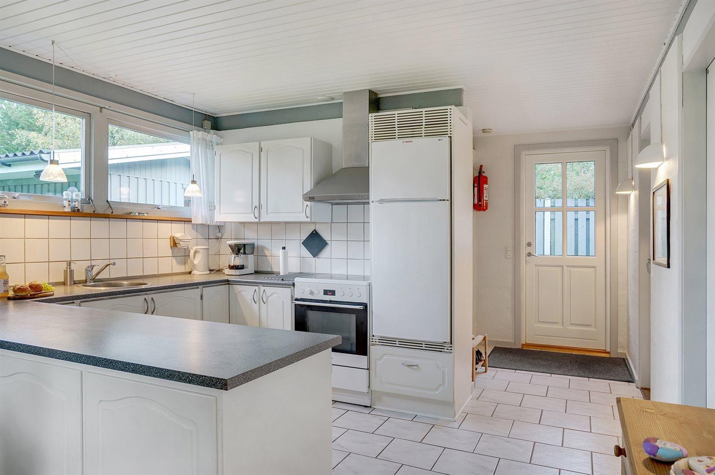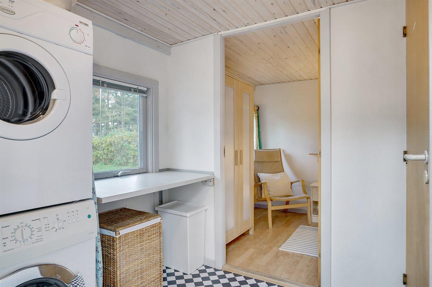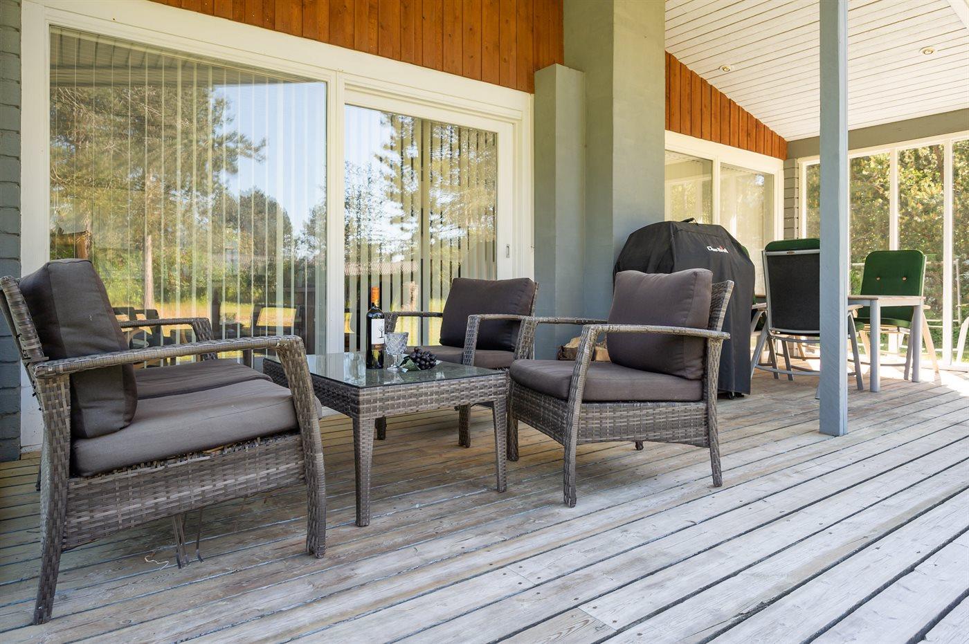 Ferieboligen er beliggende på en 1500 m² stor naturgrund. Der er 150 m til havet. Nærmeste forretning er beliggende i en afstand af 7000 m. Til ferieboligen hører 40 m² terrasseareal. Desuden er der 15 m² overdækket terrasse. Grill til rådighed. Der er carport til rådighed. Parkering ved ferieboligen.