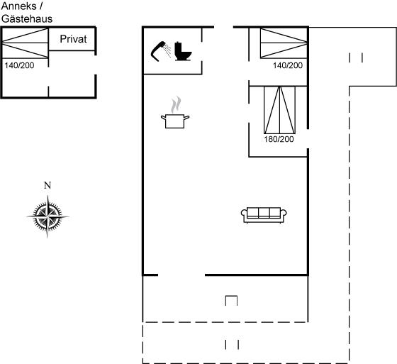 Kun 150 m fra havet, på en dejlig stor hjørnegrund i rolige omgivelser, ligger dette dejlige sommerhus. Til huset hører et anneks, som er indrettet med 2 af de i alt 6 sovepladser.
