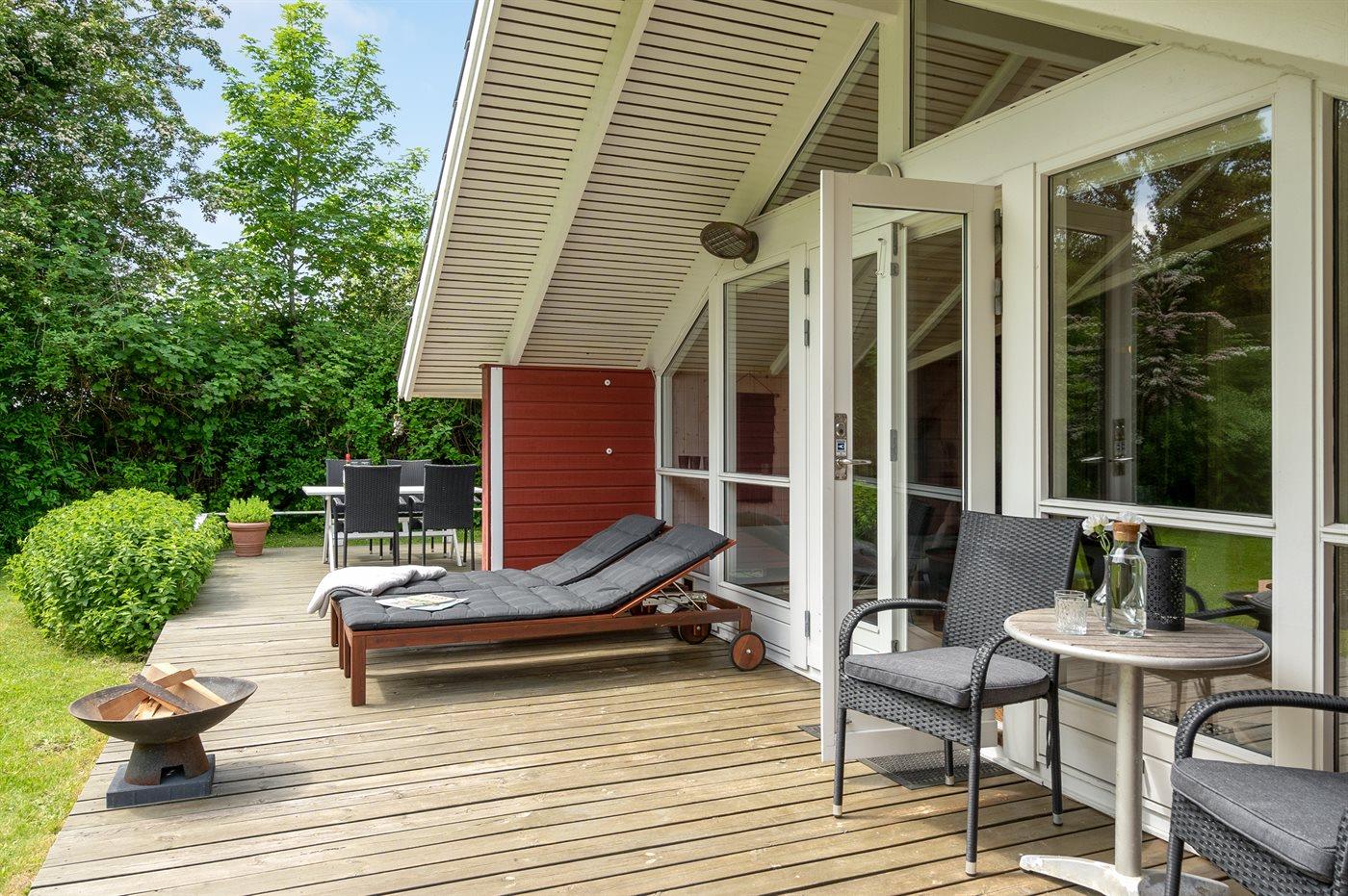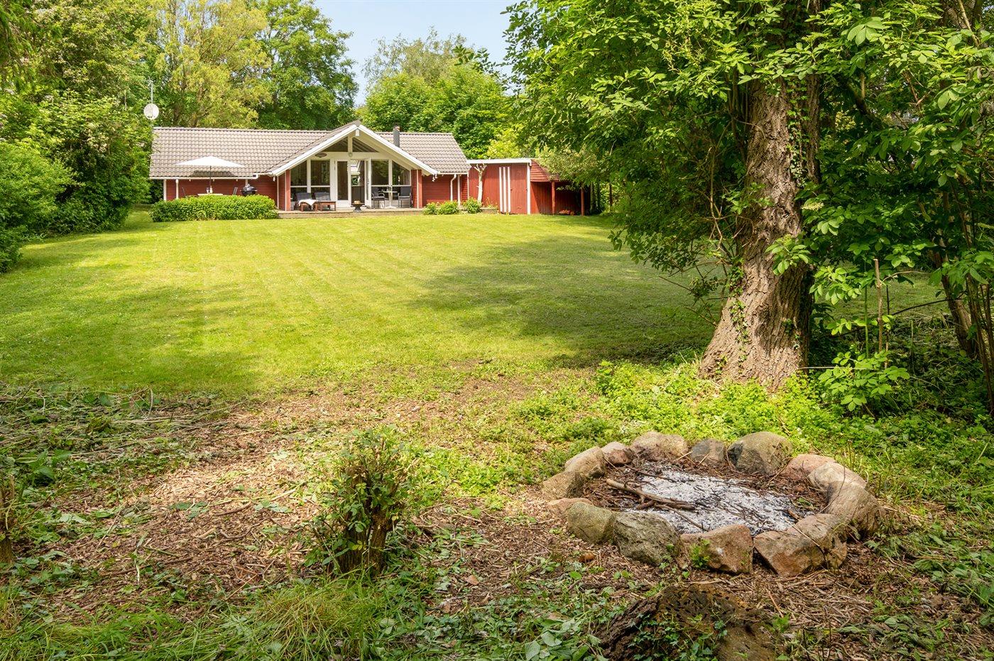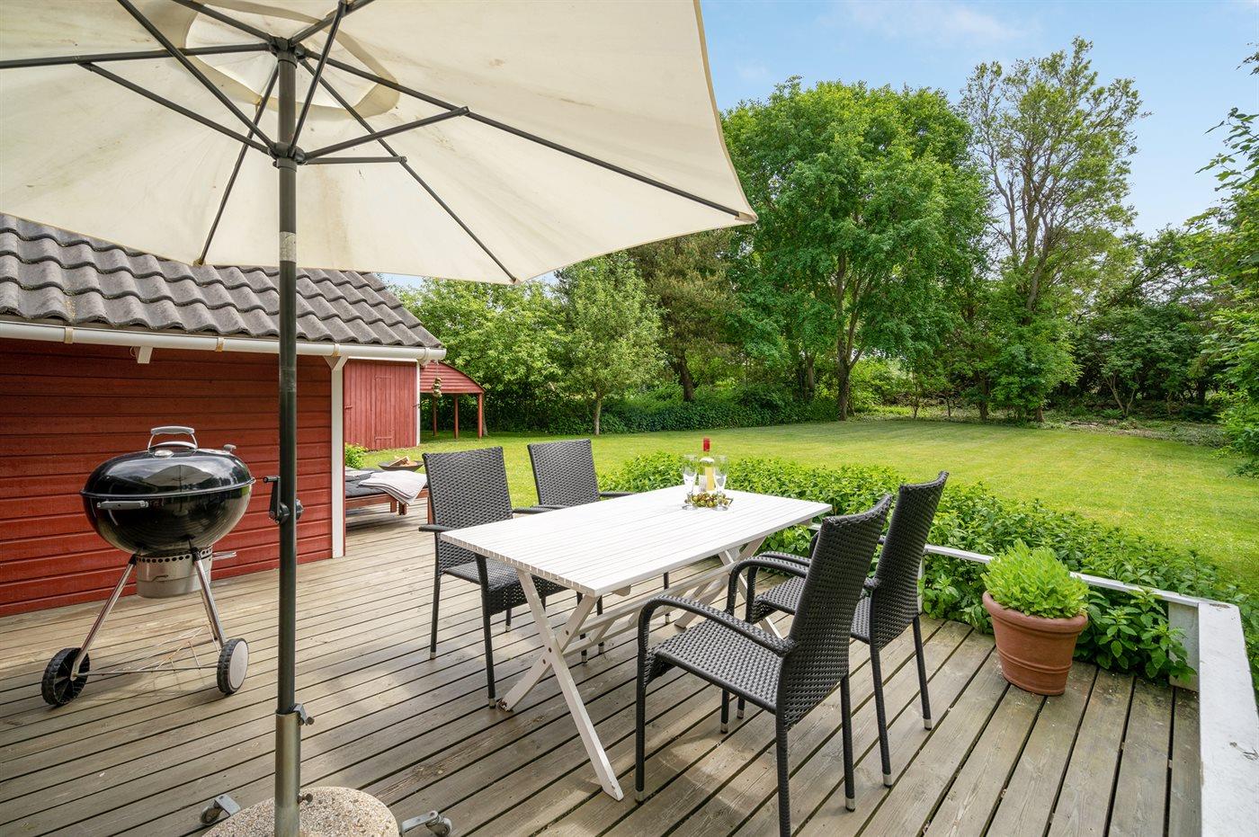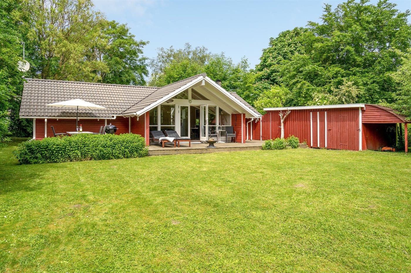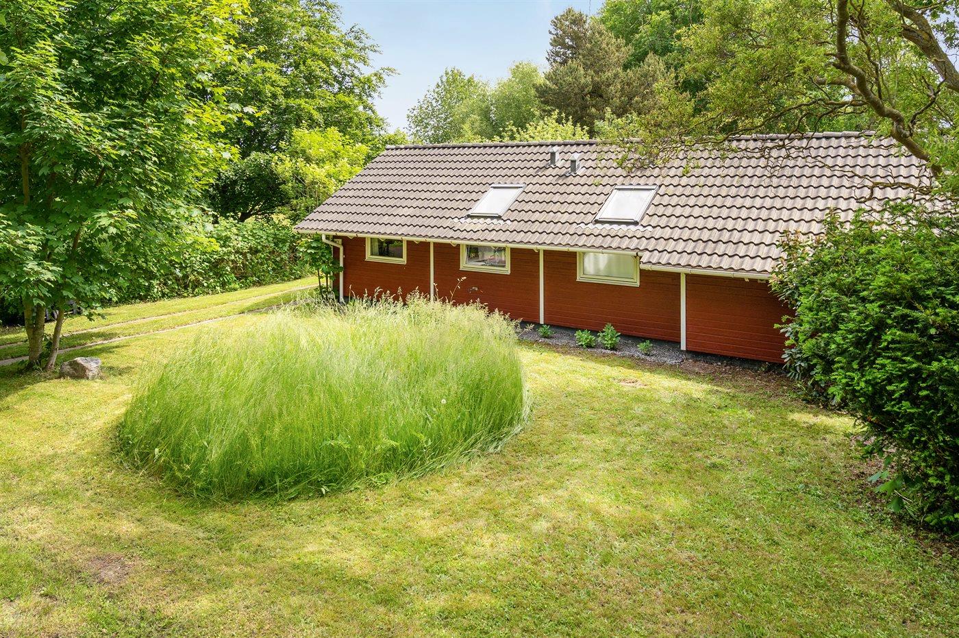 Ferieboligen er beliggende på en 1198 m² stor havegrund. Der er 325 m til havet. Nærmeste forretning er beliggende i en afstand af 8000 m. Til ferieboligen hører 40 m² terrasseareal. Desuden er der 10 m² overdækket terrasse. Der er redskabsrum. Bålsted. Grill til rådighed. Der er carport til rådighed. Parkering ved ferieboligen.