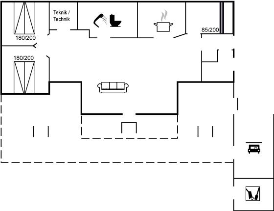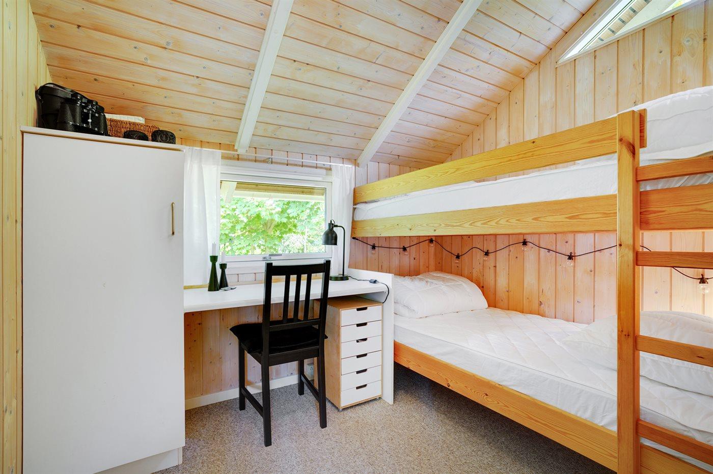 Der er i alt 3 soveværelser. Sovepladserne fordeler sig på: 4 sovepladser i dobbeltsenge. 2 sovepladser i køjeseng.