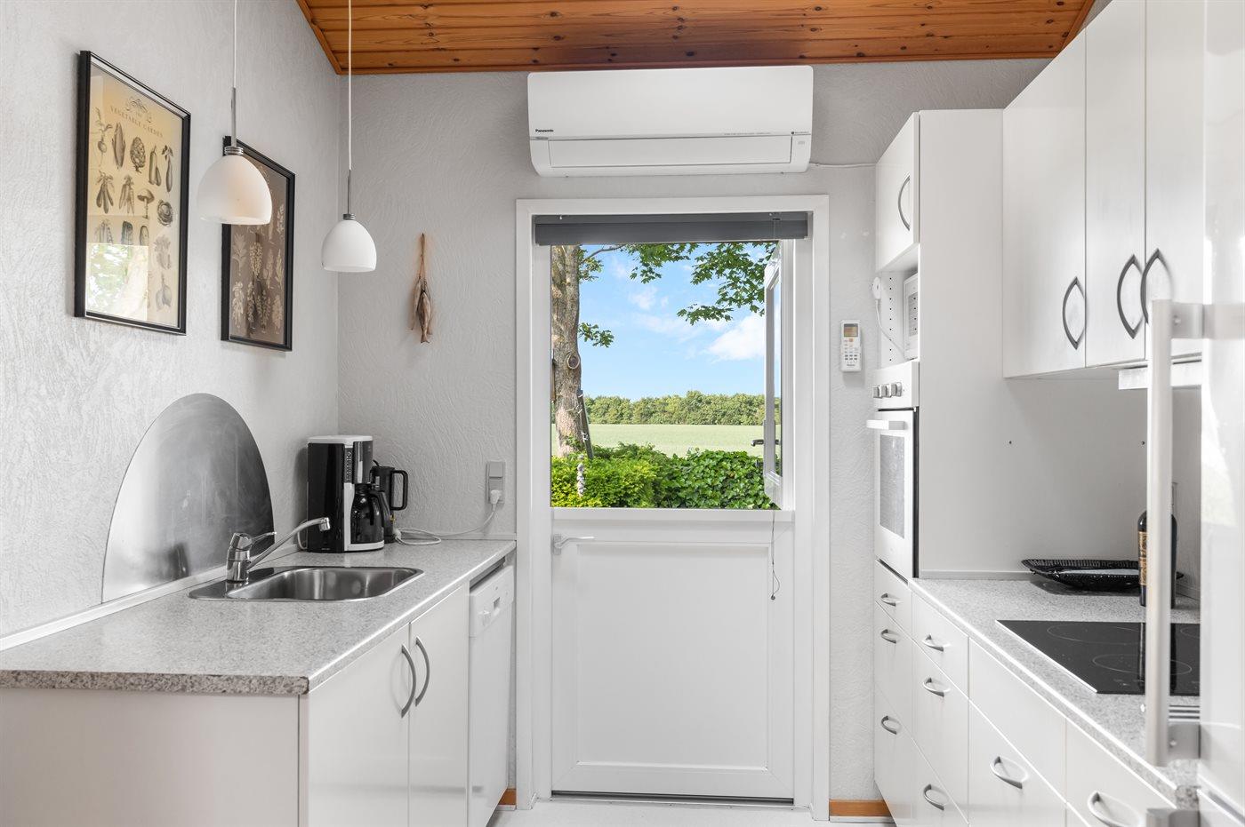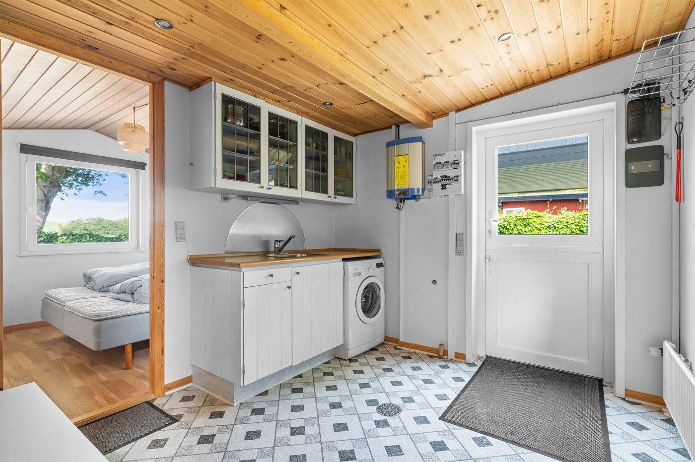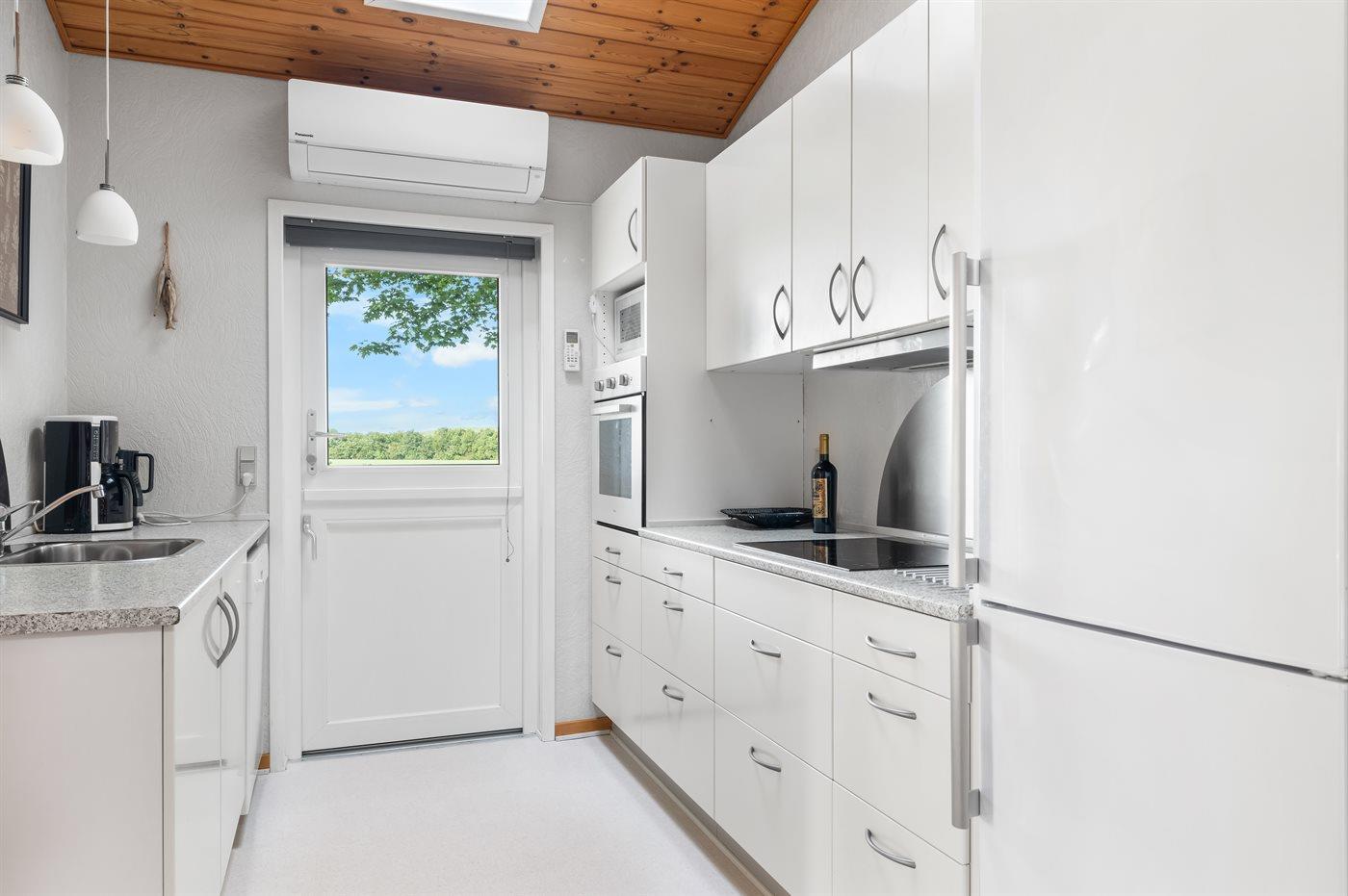 Køkkenet er udstyret med 1 køleskab. Der er 4 keramiske kogeplader, varmluftovn, mikrobølgeovn samt opvaskemaskine.