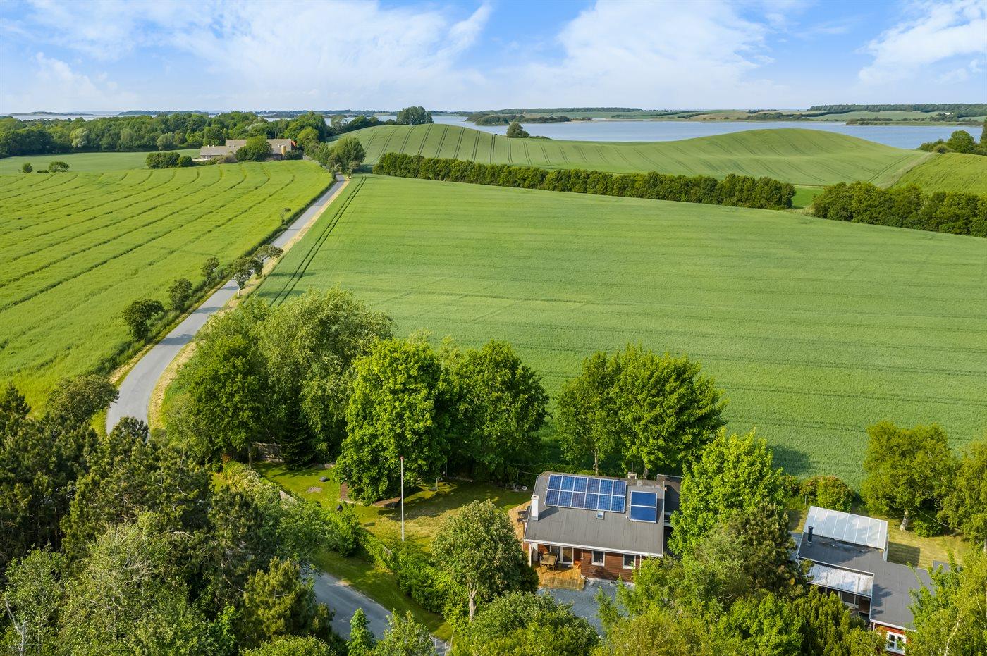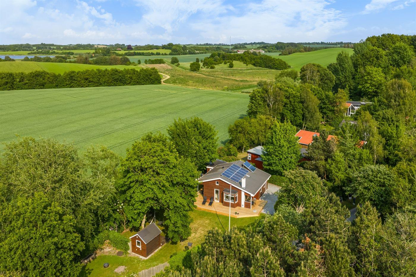 Ferieboligen er beliggende på en 824 m² stor havegrund. Grunden er indhegnet. Der er 150 m til havet. Nærmeste forretning er beliggende i en afstand af 6400 m. Til ferieboligen hører åbent terrasseareal. Desuden er der overdækket terrasse. Gynge. Legetårn. Rutchebane. Bålsted. Udendørs bruser. Grill til rådighed. Parkering ved ferieboligen.