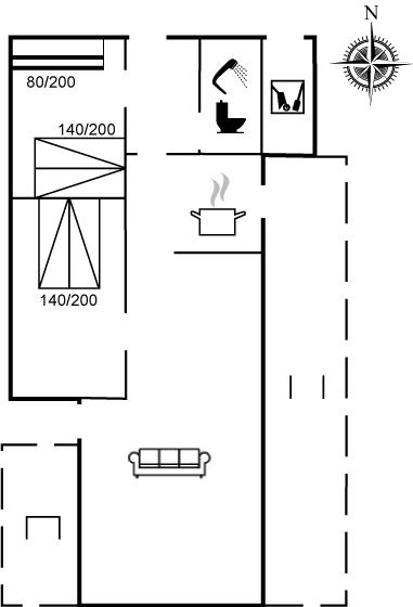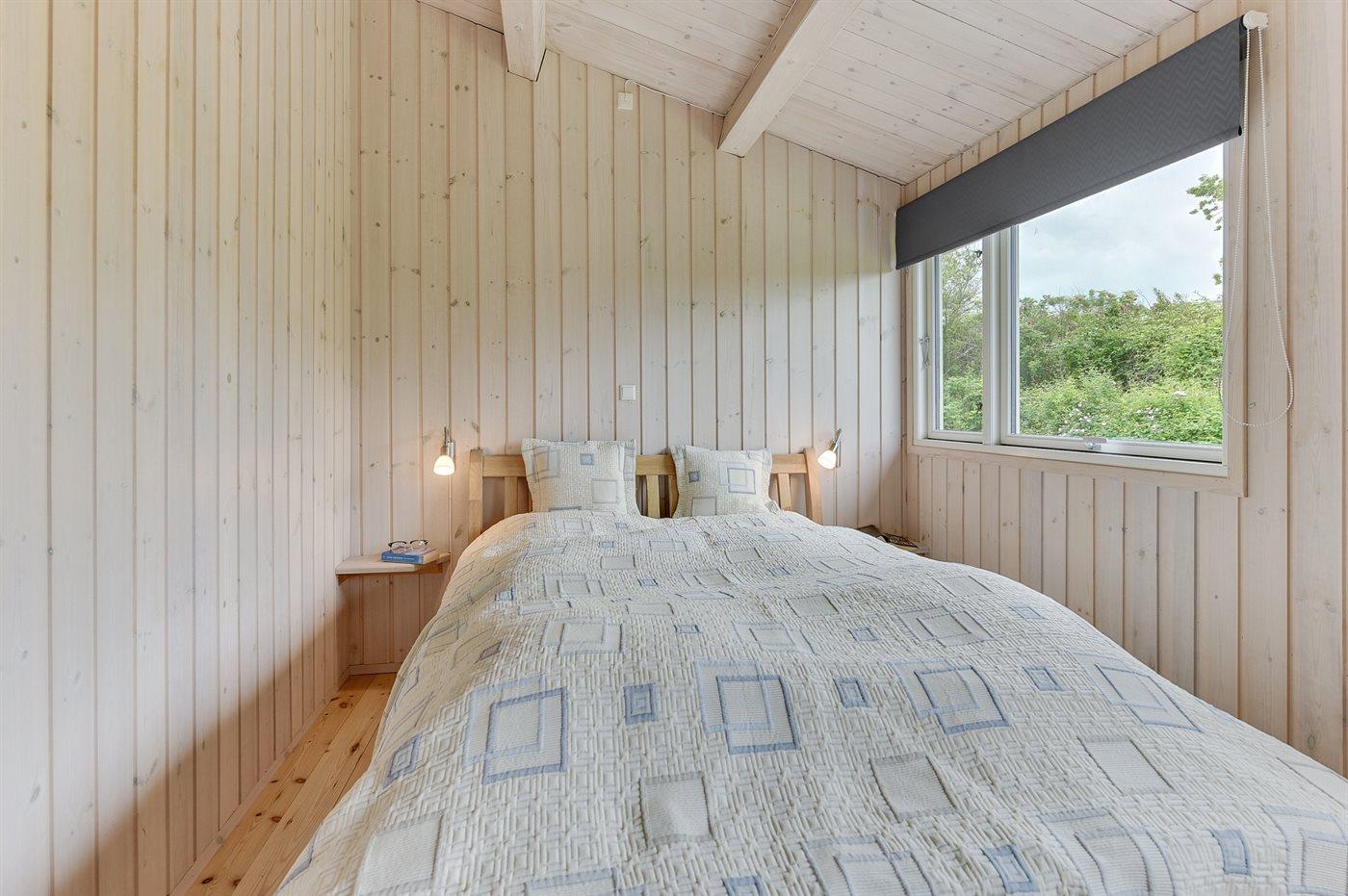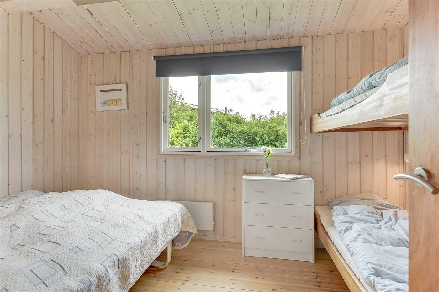 Der er i alt 2 soveværelser. Sovepladserne fordeler sig på: 4 sovepladser i dobbeltsenge. 2 sovepladser i køjeseng. Derudover er der 1 stk. barneseng.