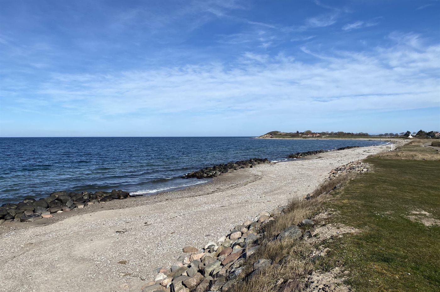 Flot, lyst og moderniseret sommerhus kun 75 m fra dejlig badestrand. Huset er nydeligt indrettet og har bl.a. en skøn udestue, hvorfra der er udsigt over haven. Både foran og bagved huset er der anlagt træterrasse. Den sydvendte terrasse ligger bag huset i god læ bag skrænt og er delvist overdækket. Huset ligger på en stor grund, hvor der er god plads til udendørs aktiviteter.