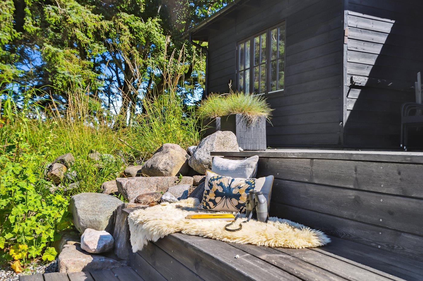 Ferieboligen er beliggende på en 20060 m² stor grund i skov/plantage. Der er 10 m til havet. Nærmeste forretning er beliggende i en afstand af 9500 m. Der er en golfbane i en afstand af 13200 m. Til ferieboligen hører åbent terrasseareal. Shelter. Grill til rådighed. Parkering ved ferieboligen.