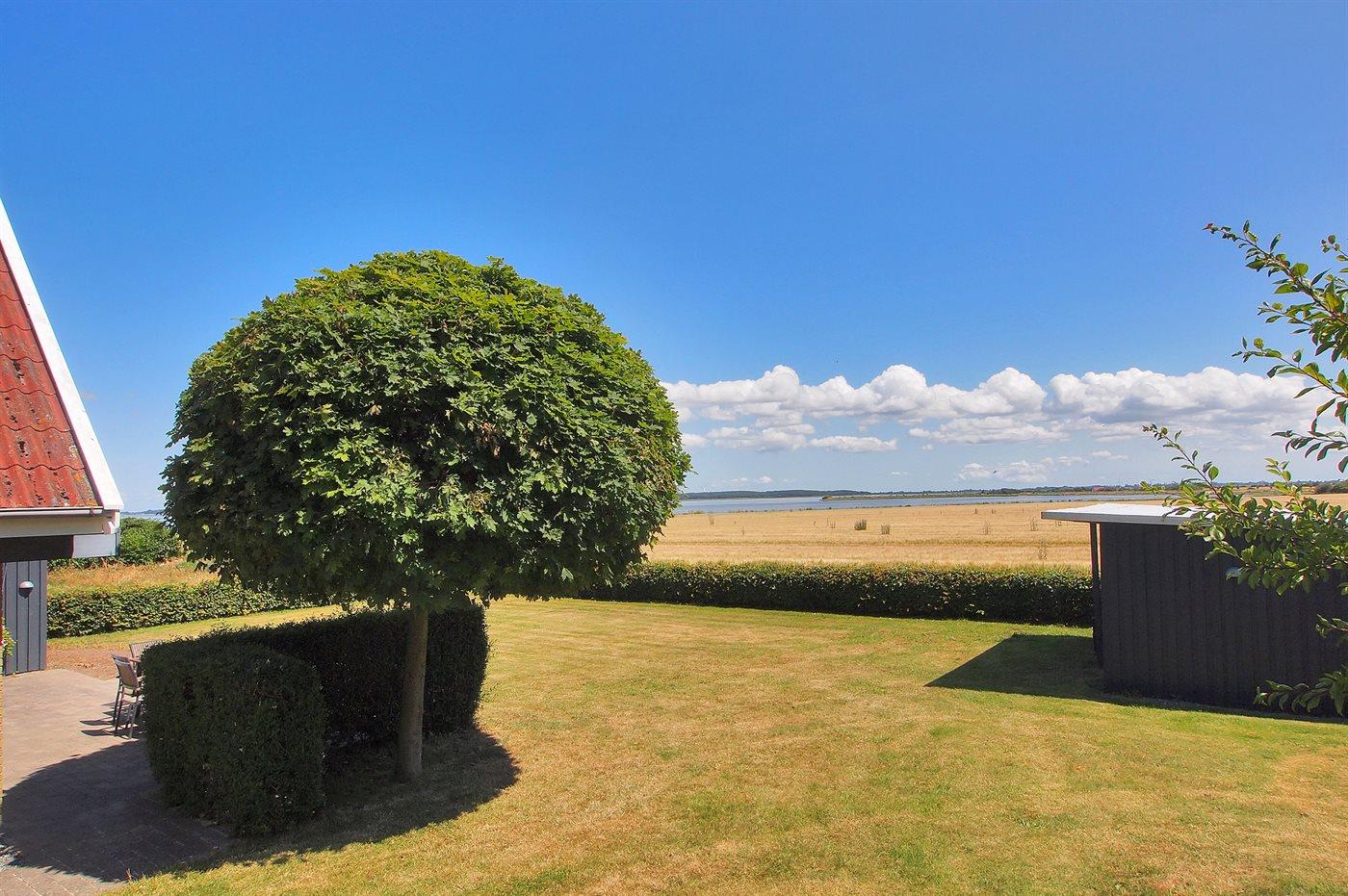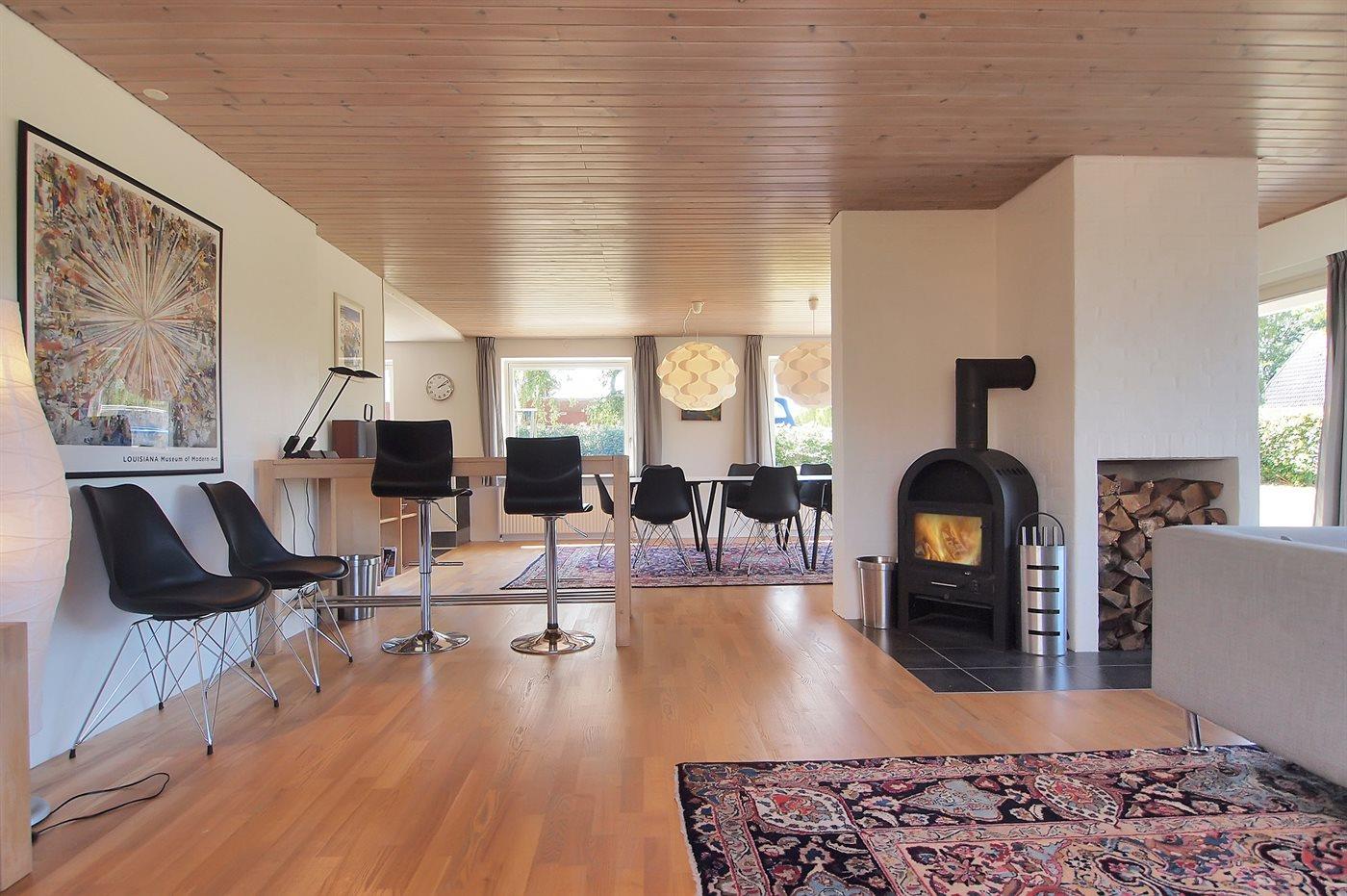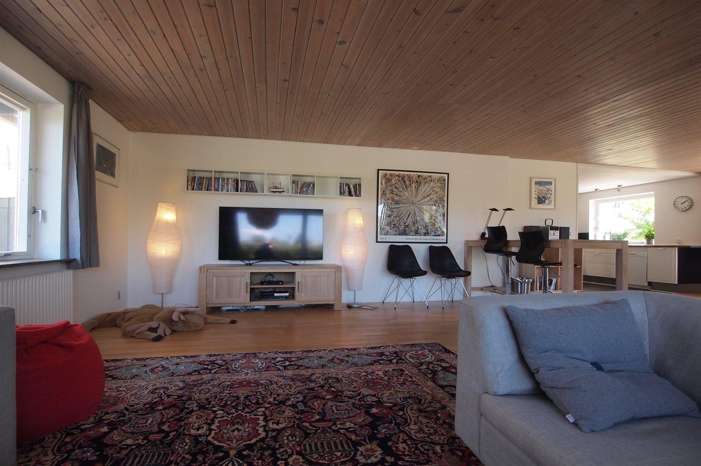 Fra store dele af huset, fra terrasserne og den store hyggelige grund, er der udsigt over fjorden – smuk uanset årstid. Her er der højt til loftet, og skuldrene sænker sig med det samme.