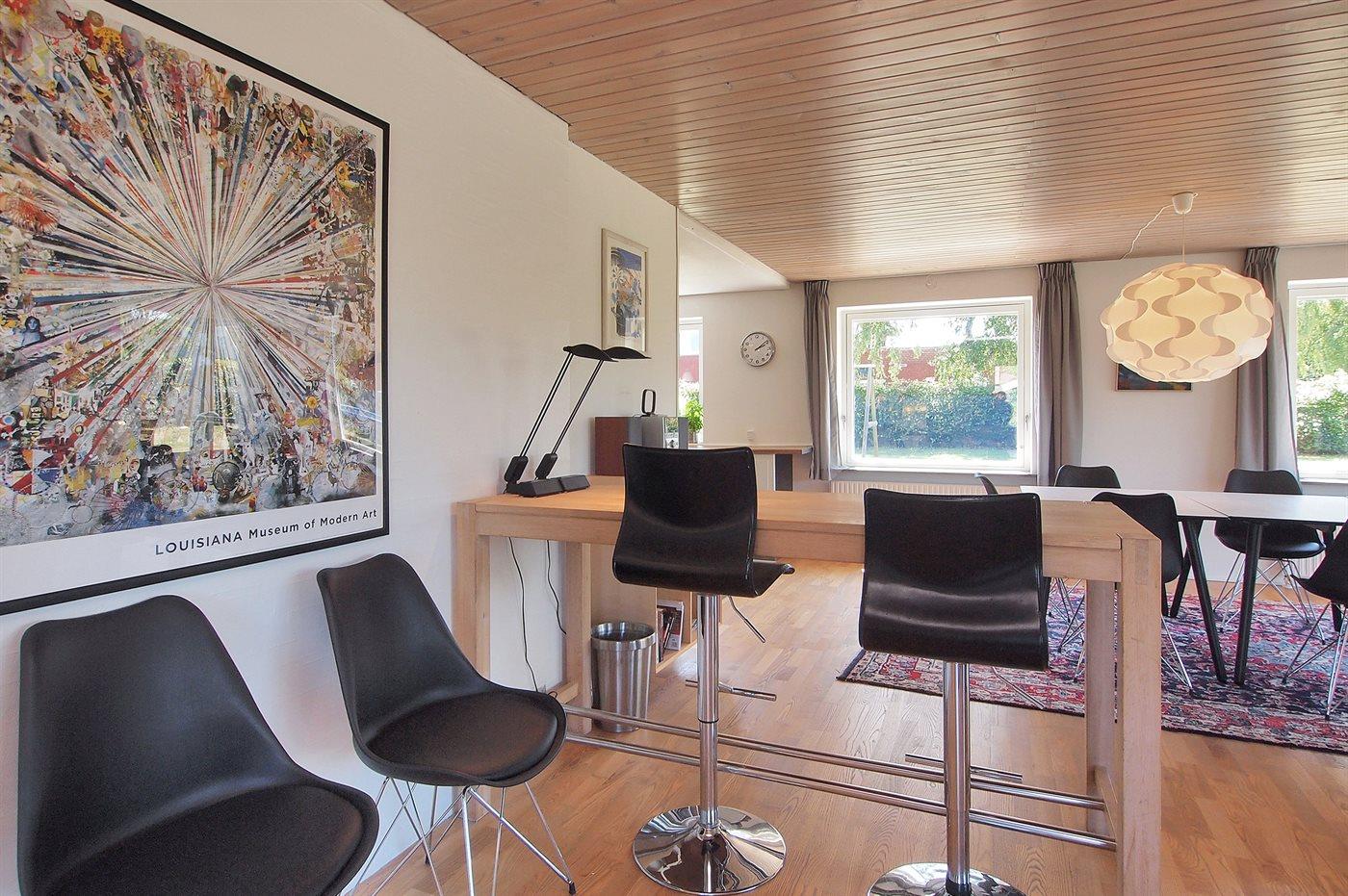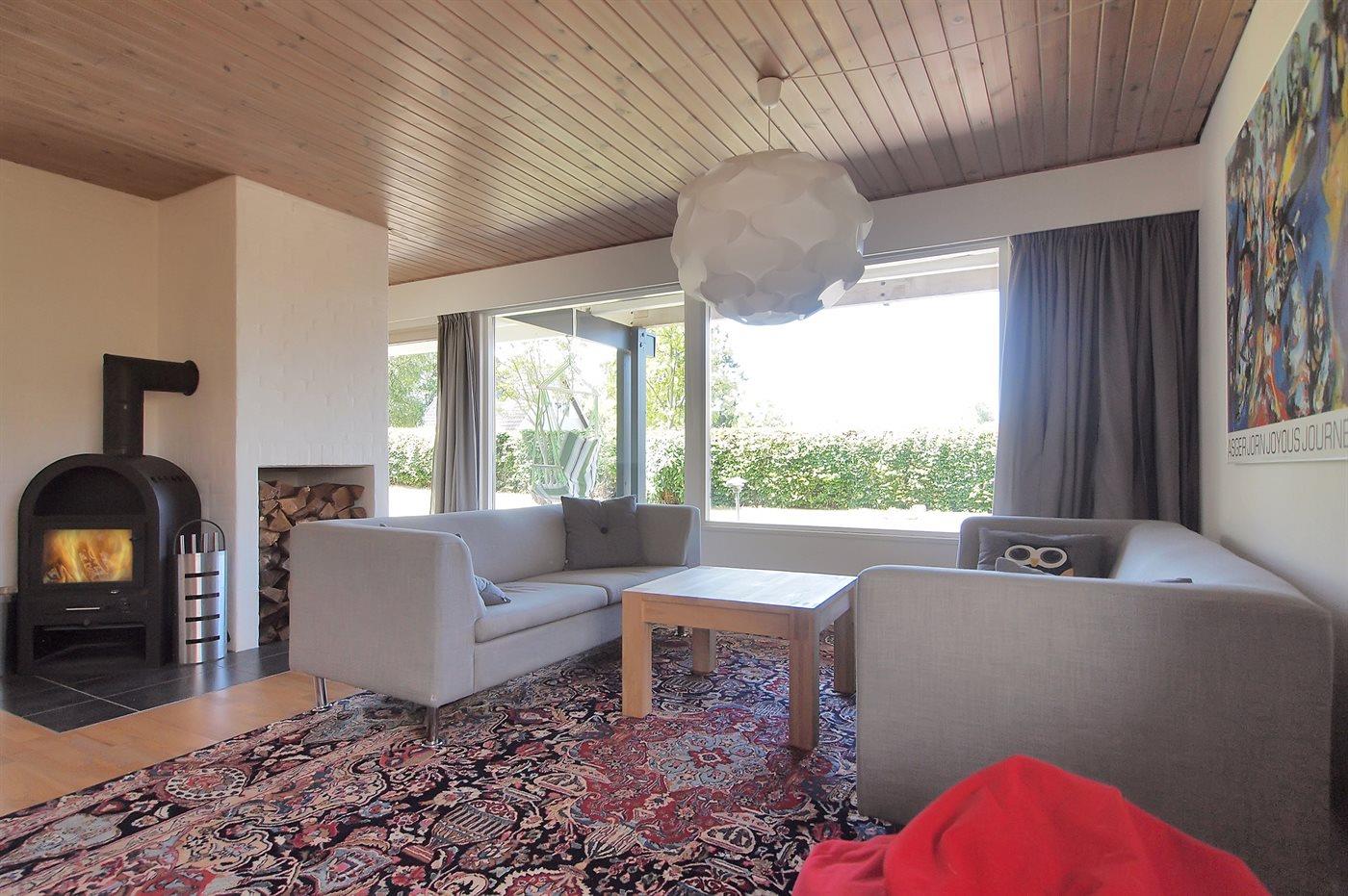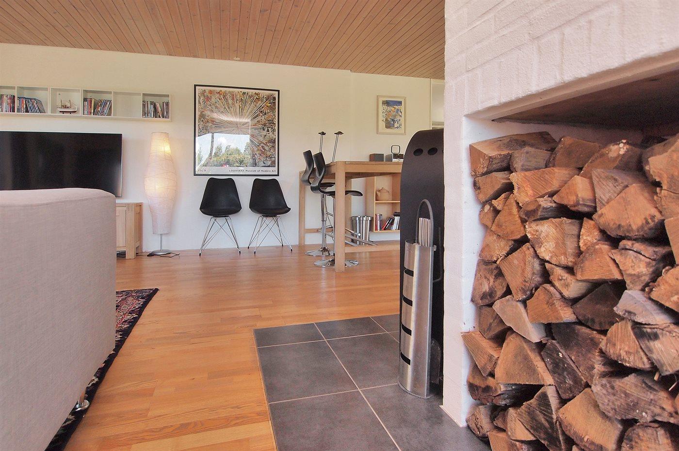 Fra store dele af huset, fra terrasserne og den store hyggelige grund, er der udsigt over fjorden – smuk uanset årstid. Her er der højt til loftet, og skuldrene sænker sig med det samme.