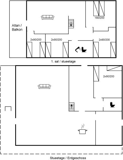 Der er i alt 5 soveværelser. Sovepladserne fordeler sig på: 2 sovepladser i dobbeltseng. 8 sovepladser i enkeltsenge. Derudover er der 1 stk. barneseng.