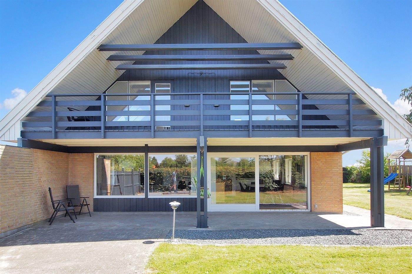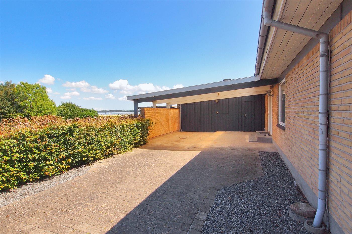 Ferieboligen er beliggende på en 1200 m² stor naturgrund. Der er 5000 m til havet. Der er 250 m til fjorden. Nærmeste forretning er beliggende i en afstand af 6000 m. Desuden er der 44 m² overdækket terrasse. Til ferieboligen hører åbent terrasseareal. Der er redskabsrum. Gynge. Trampolin. Rutchebane. Grill til rådighed. Der er carport til rådighed. Parkering ved ferieboligen.