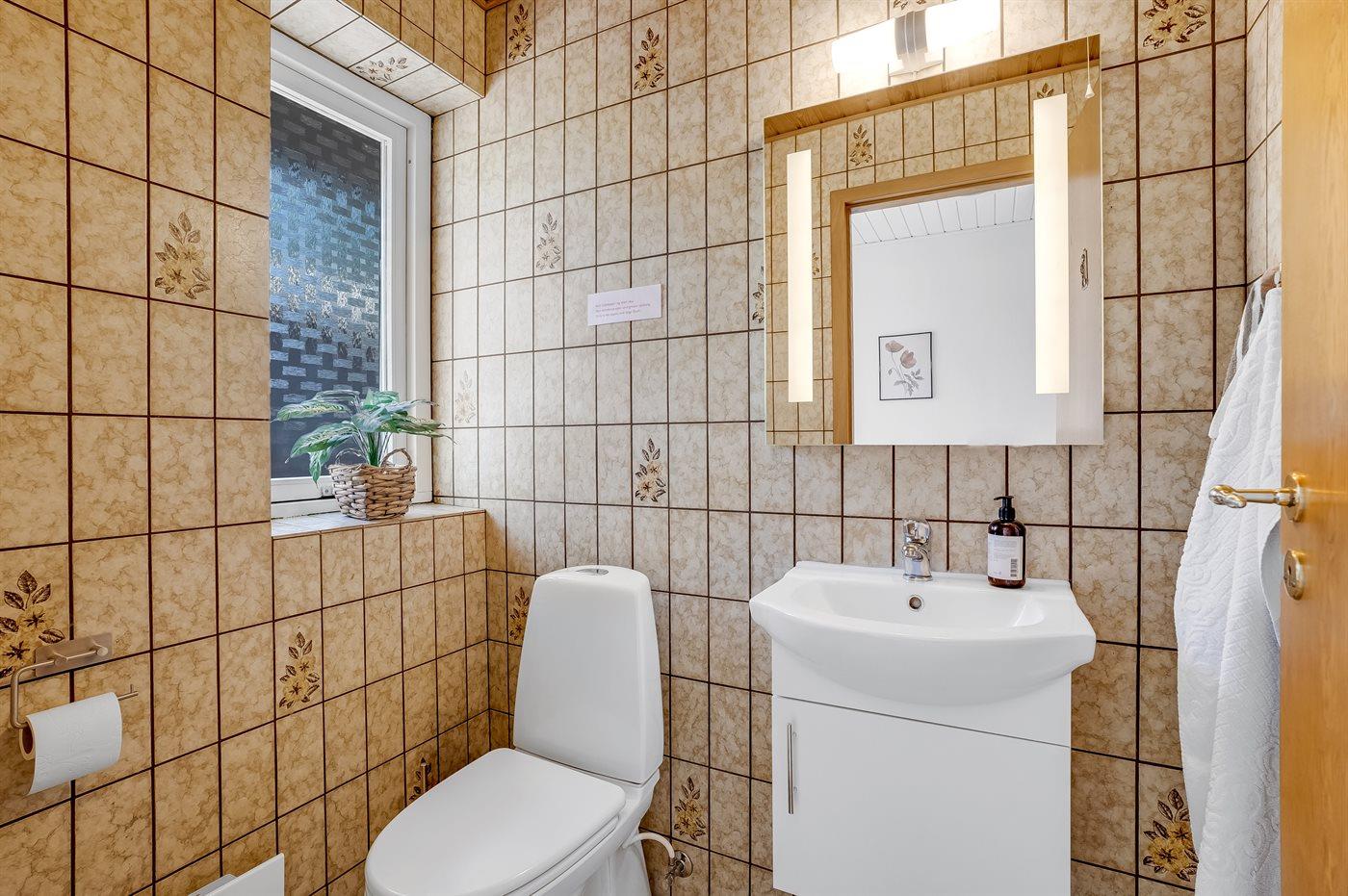 Der er 1 badeværelse med bruseniche og 2 toiletter, heraf 1 gæstetoilet. Der er gulvvarme på 1 badeværelse.