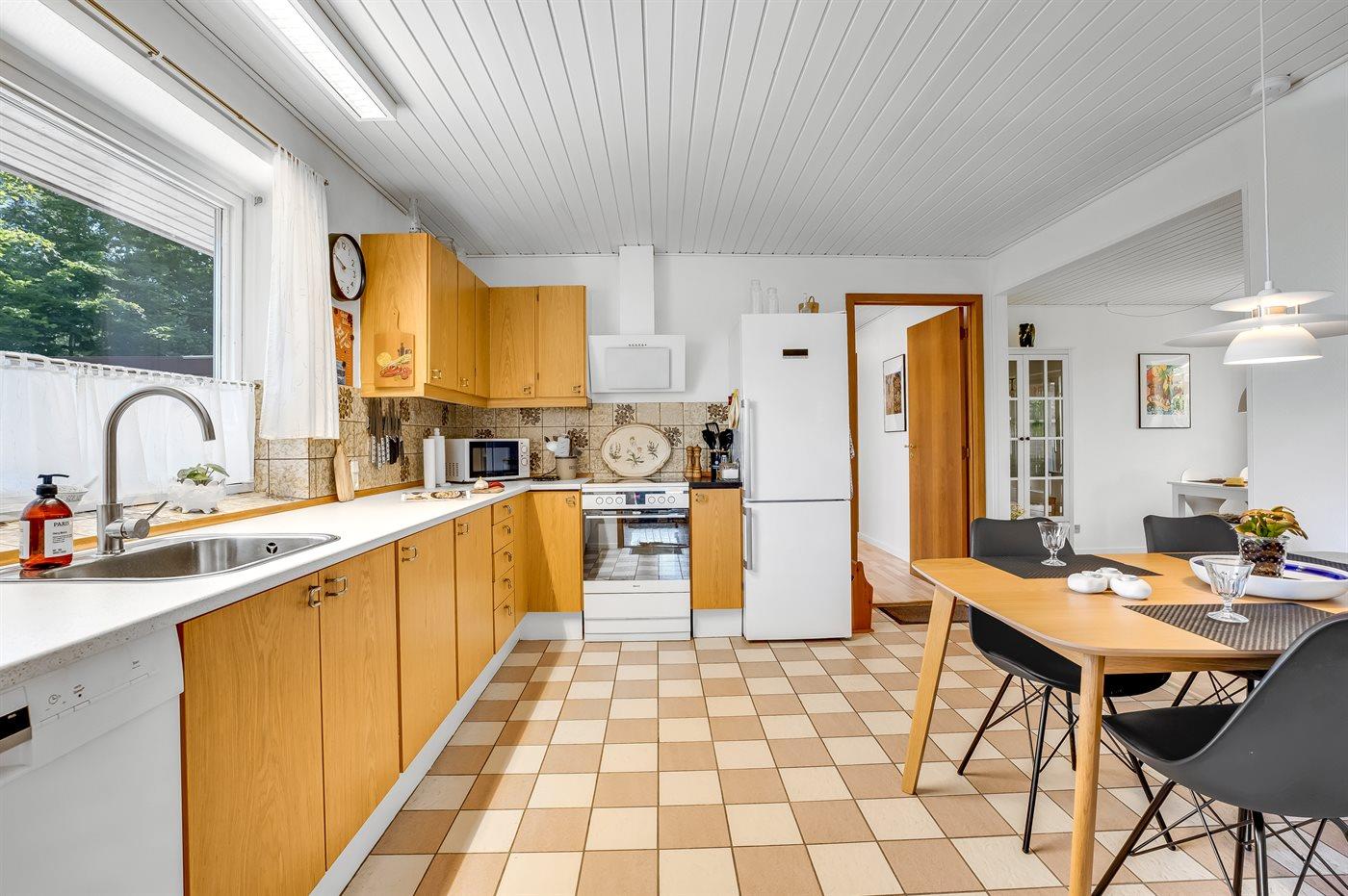 Køkkenet er udstyret med 1 køleskab. Der er 4 induktionskogeplader, varmluftovn, mikrobølgeovn samt opvaskemaskine.