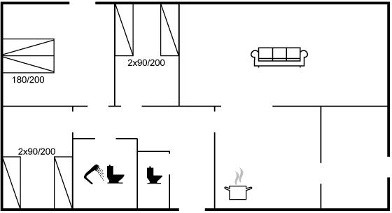 Der er i alt 3 soveværelser. Sovepladserne fordeler sig på: 2 sovepladser i dobbeltseng. 4 sovepladser i enkeltsenge.