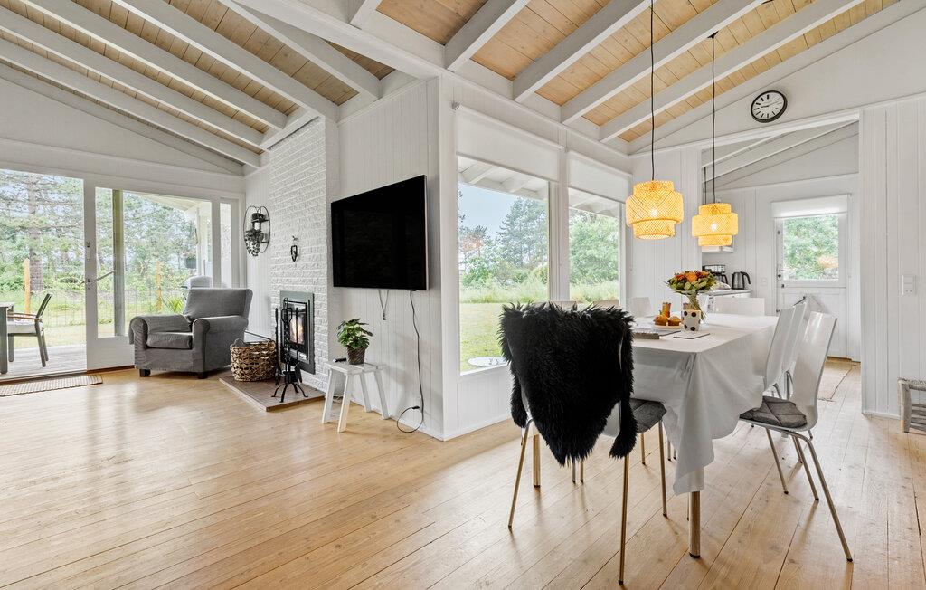 Jeres hus har en forrygende beliggenhed ved kysten, kun nogle få meter fra stranden, og byder på mange moderne faciliteter. Efter en rolig nat vågner I frisk og veludhvilet op og kan nyde en lækker morgenmad sammen med hele familien. Hvis vejret tillader det, kan I spise jeres måltider udenfor på den skønne, overdækkede terrasse. Det rummelige køkken indbyder til fælles madlavning med familien. Den lyse spiseplads og den hyggelige stue med de store vinduer giver jer en fantastisk udsigt til udendørsområdet. Om aftenen kan I slappe af på sofaen eller i de hyggelige lænestole og slutte dagen af med en god bog eller en film. Eller forkæl jer selv med en behagelig tur i saunaen.
