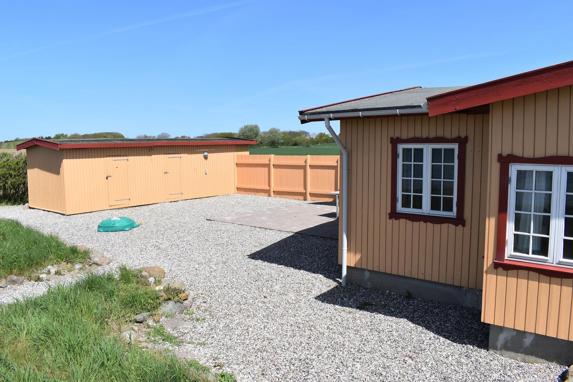 Fra køkkenet er der direkte adgang til en stor, afskærmet terrasse, hvor du kan nyde solen fra morgen til aften. Den rolige beliggenhed og den storslåede udsigt gør terrassen til det perfekte sted at slappe af, spise ude eller nyde solnedgangen.