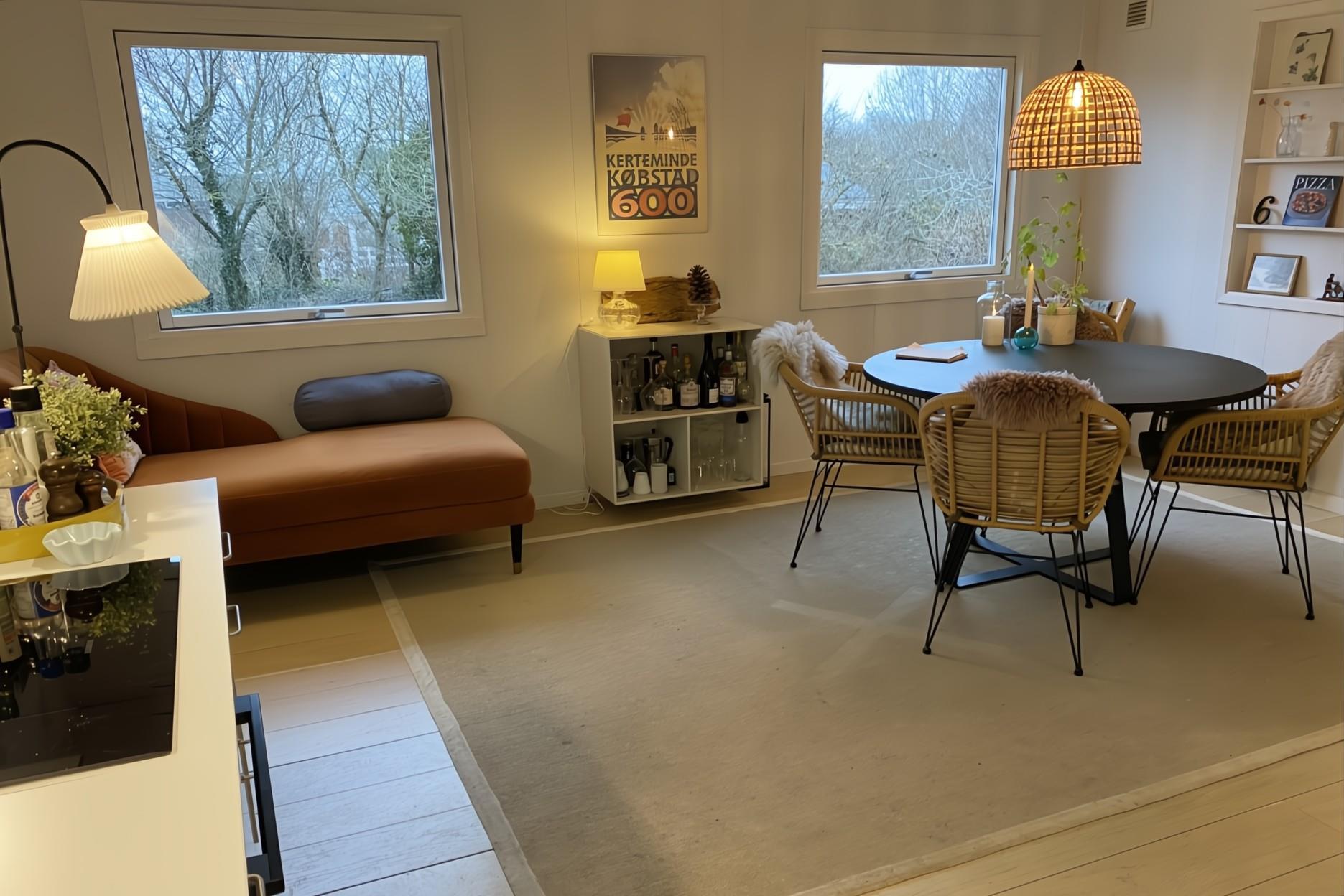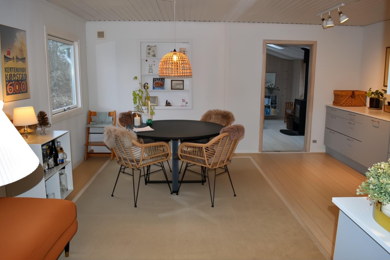 Dette charmerende sommerhus ligger på en smuk og ugeneret naturgrund i det fredelige sommerhusområde Bogensø – tæt på strand, skov og Kertemindes hyggelige byliv. Huset er rummeligt og funktionelt indrettet med et stort, åbent køkken-alrum med opvaskemaskine og direkte adgang til en hyggelig stue med brændeovn og god plads til samvær og afslapning.