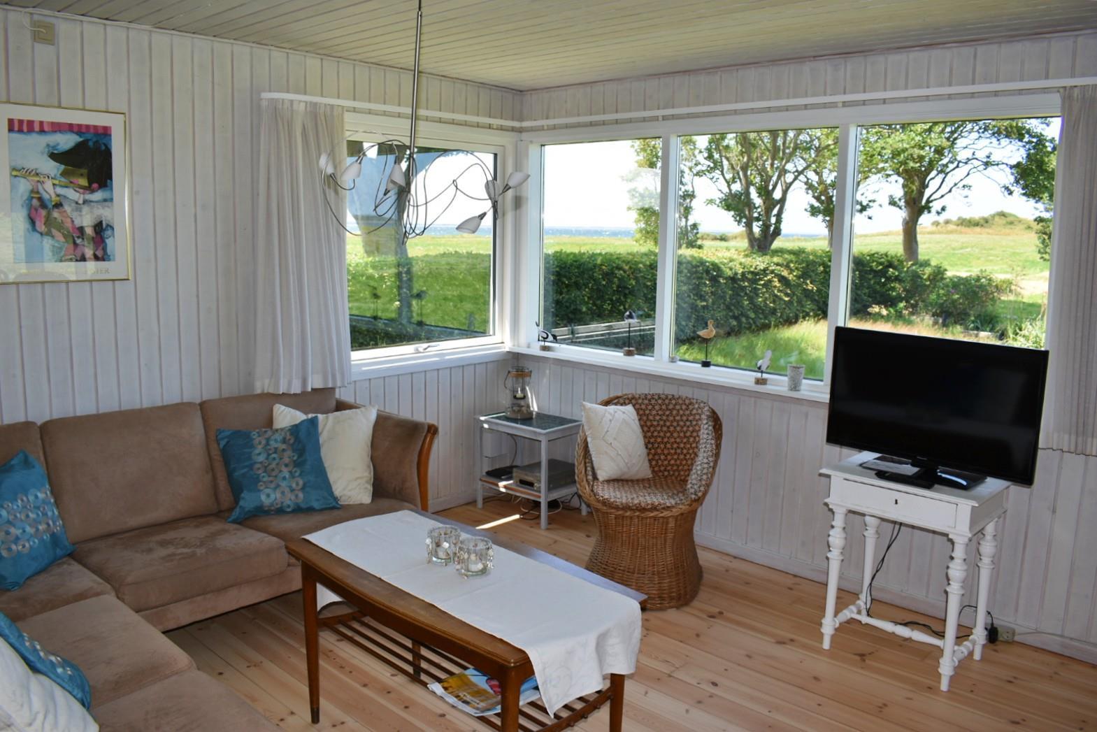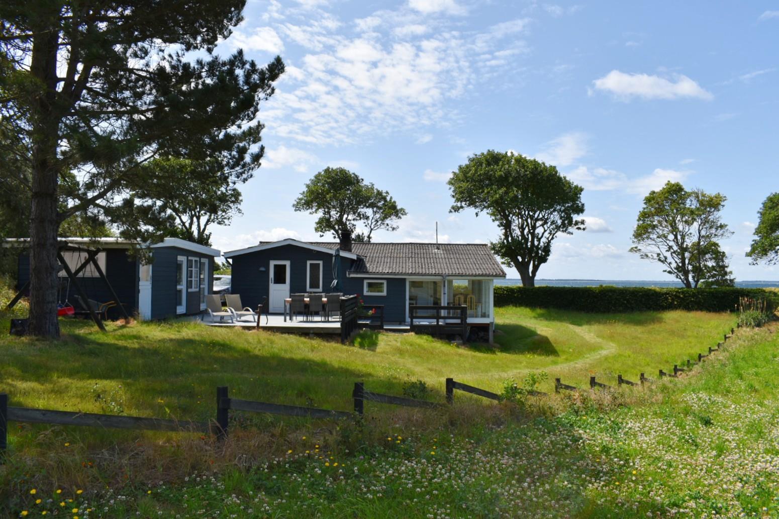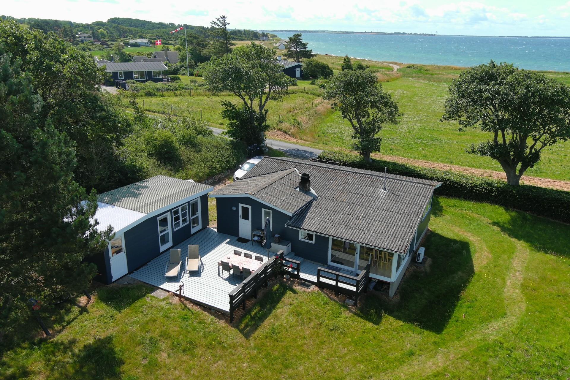 Dette charmerende sommerhus ligger unikt placeret på halvøen Langø nord for Kerteminde med udsigt til både hav og fjord.