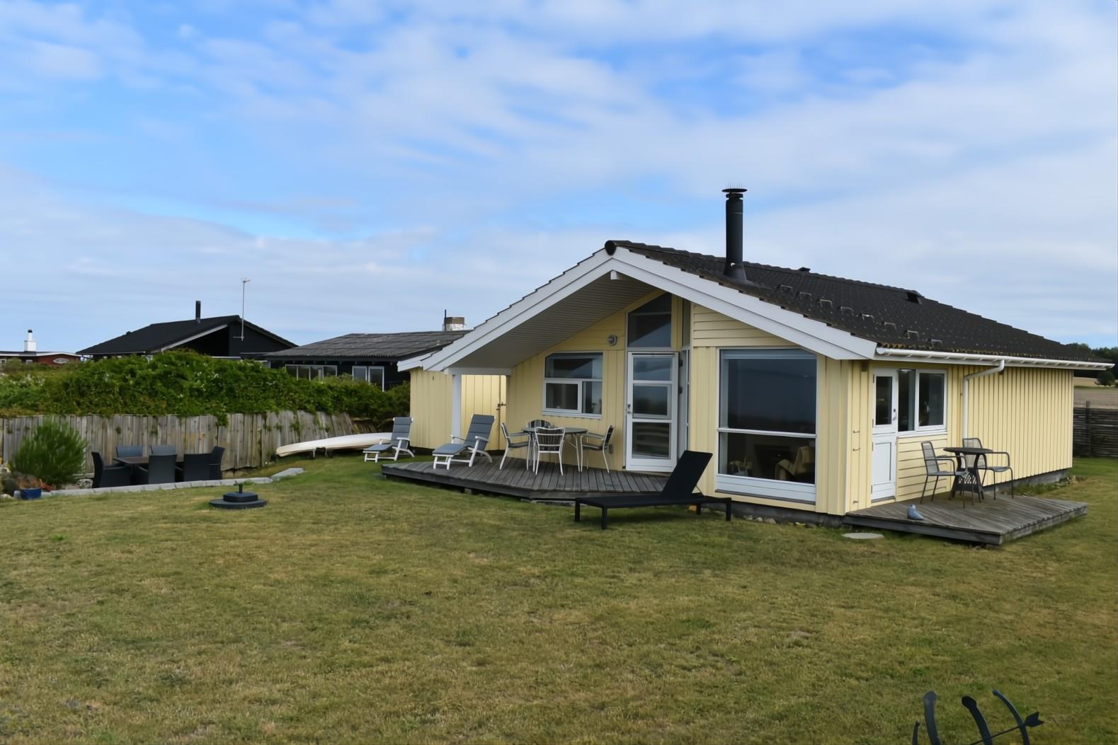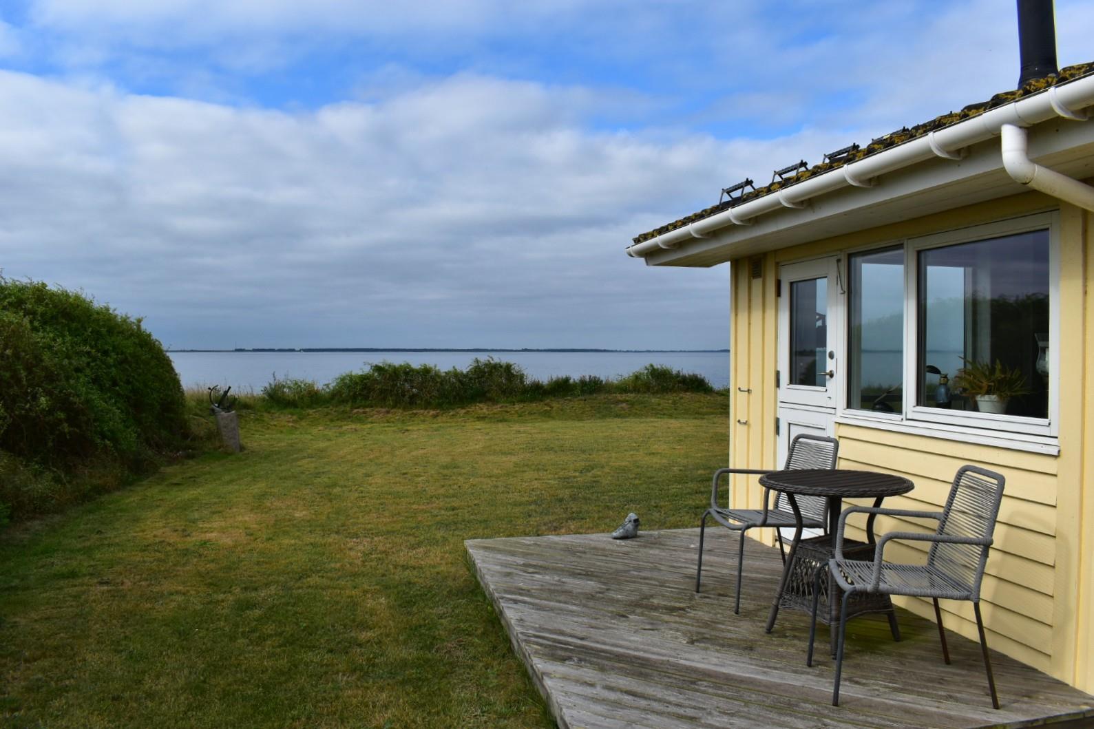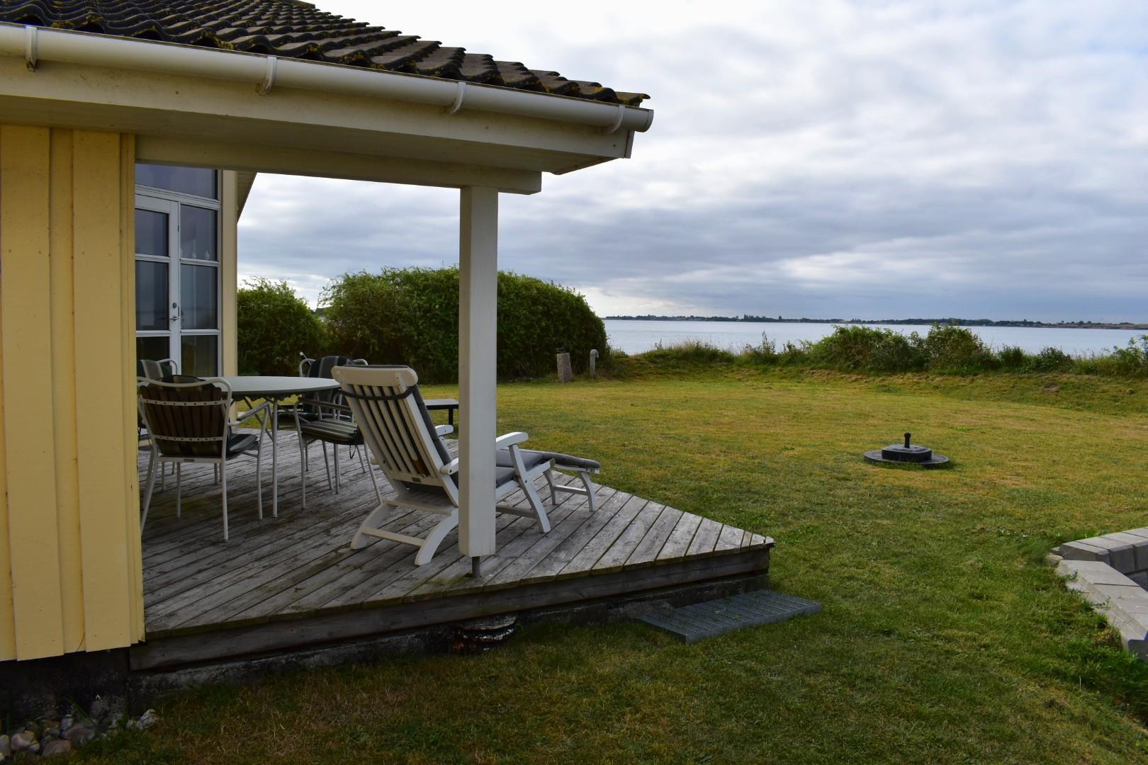 Fra stuen er der direkte adgang til en rummelig træterrasse og haven, hvor du kan nyde udsigten, finde læ i små hyggelige kroge og slappe af i fredelige omgivelser. Lige uden for huset er der gode muligheder for at bade, fiske og surfe. Der hører en kajak til sommerhuset, som må benyttes på eget ansvar.