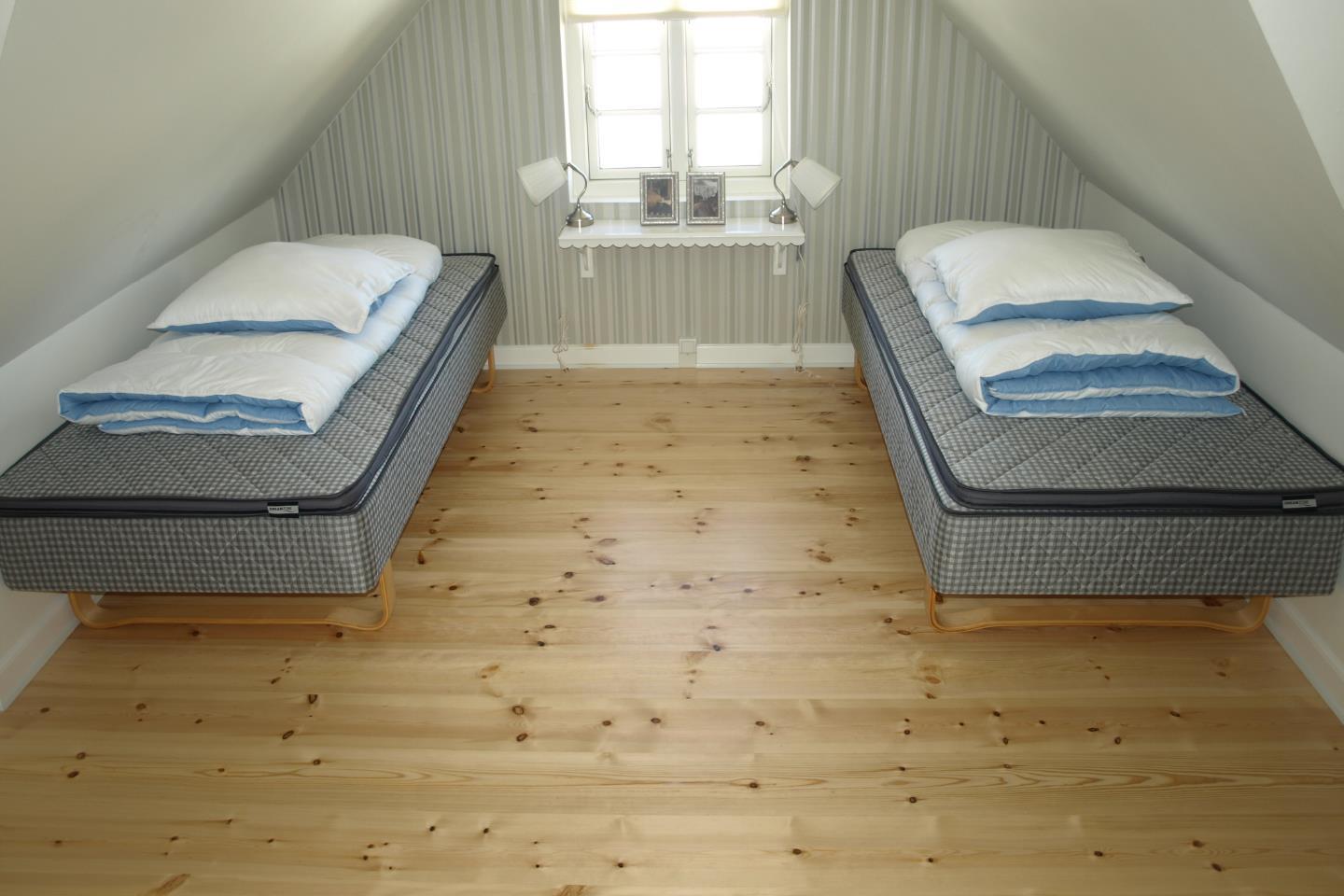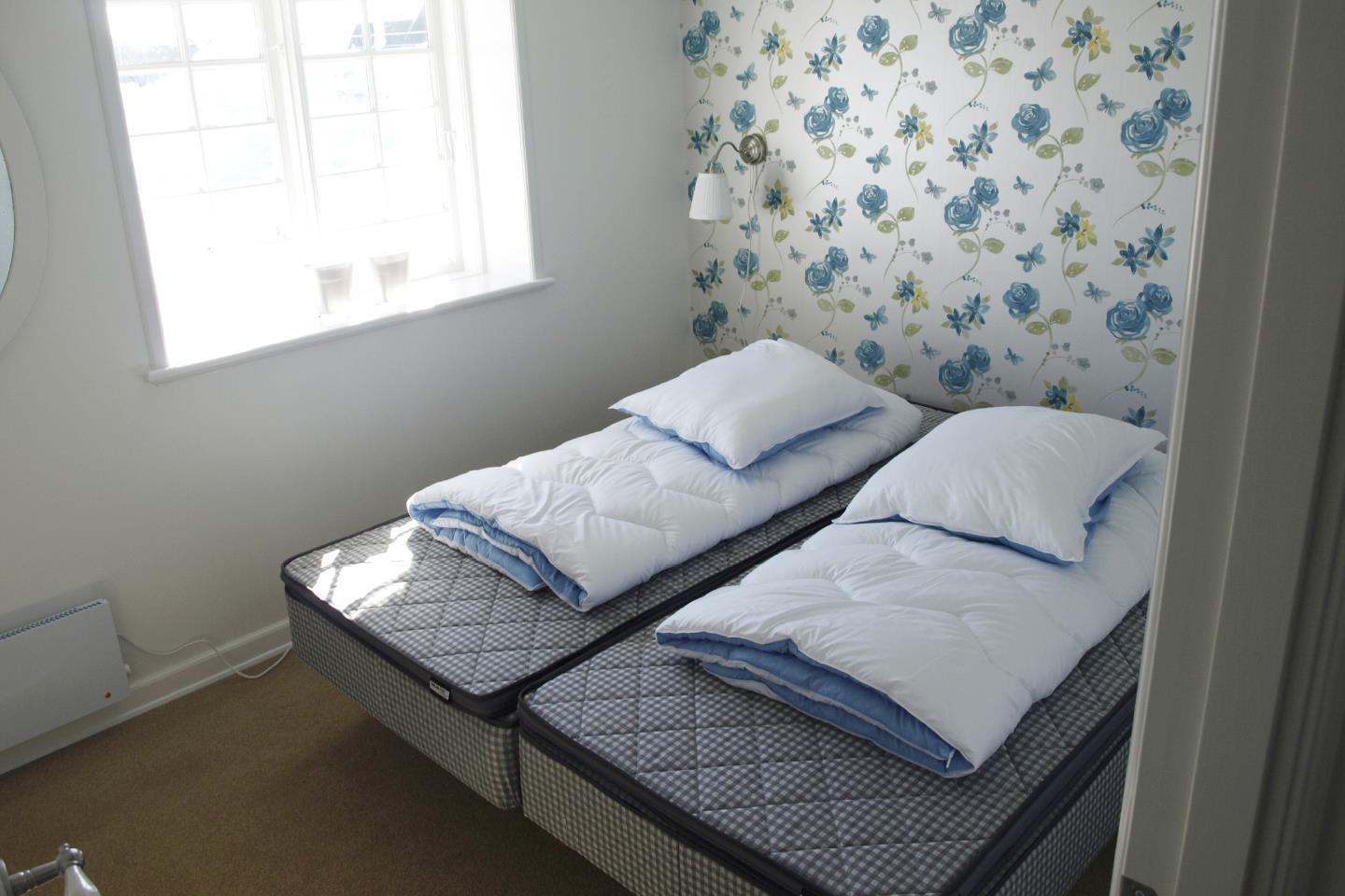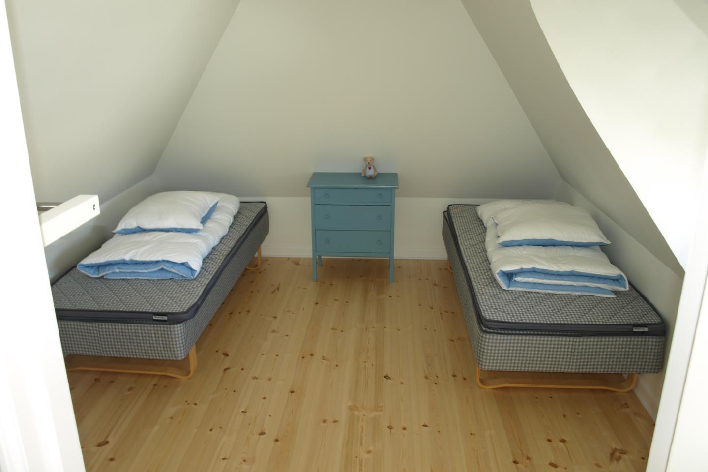 Der er 3 soveværelser indrettet med 6 enkeltsenge. Her er både barneseng og barnestol til rådighed.