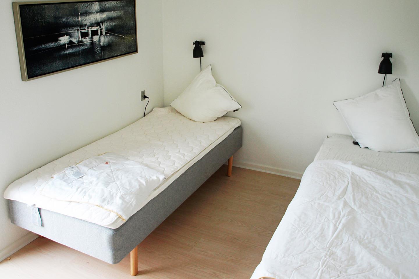 Huset har 6 soveværelser med i alt 11 enkeltsenge. Her er også en barneseng og en barnestol. Her er 2 badeværelser.