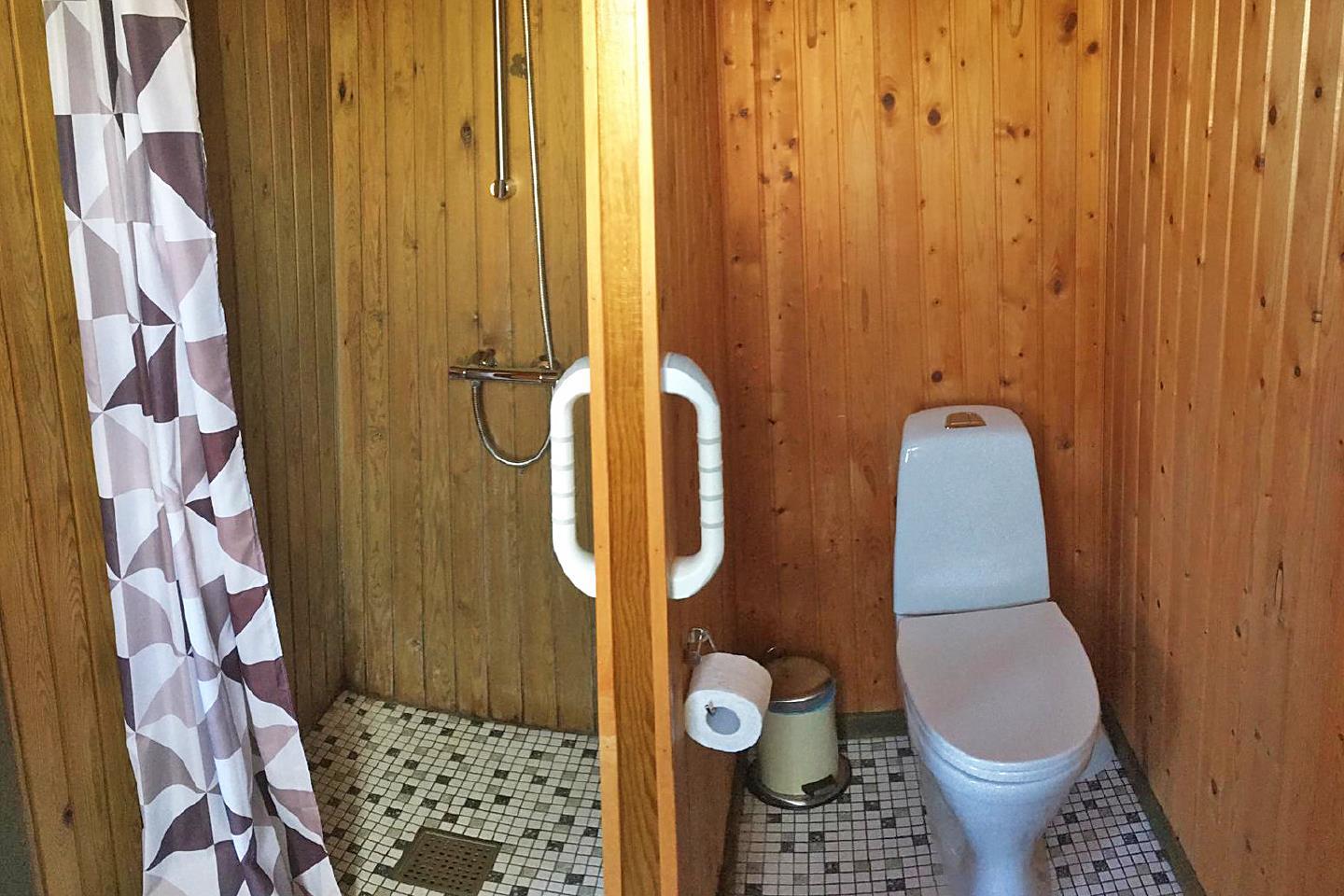 Der er toilet og bad.