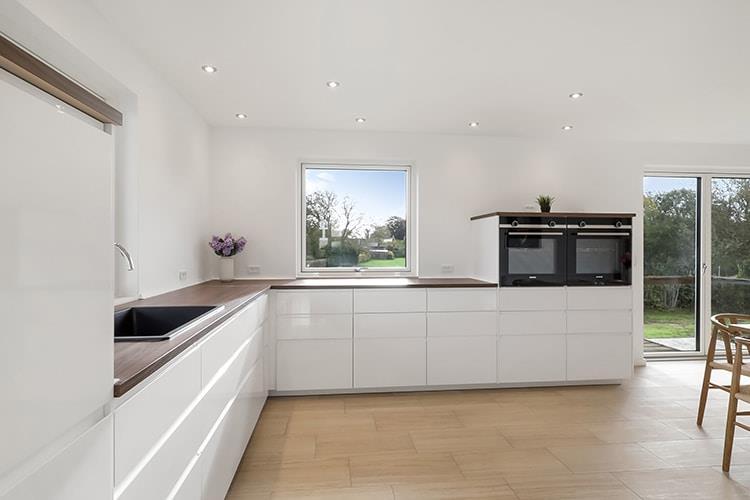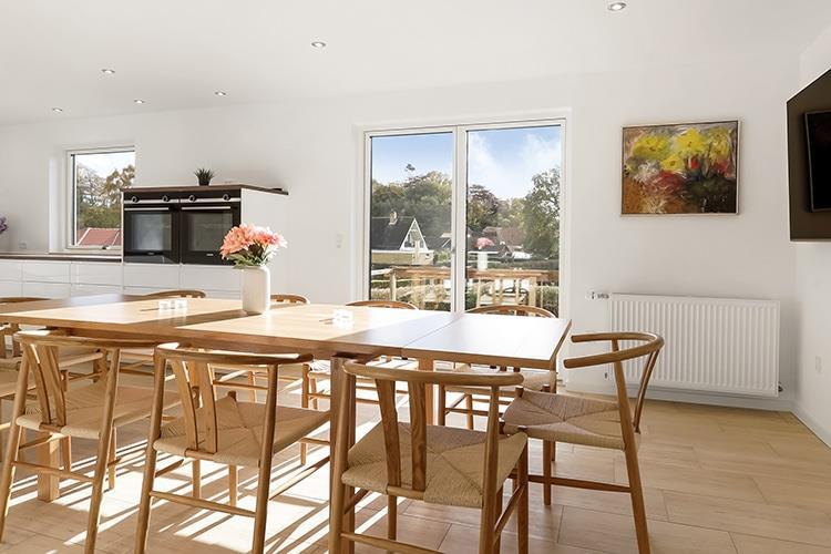 Dette, skønne, store feriehus på hele 180 m2 har havudsigt og god plads til 12 personer. Lækkert, hvidt køkken med opvaskemaskine og mikrobølgeovn.