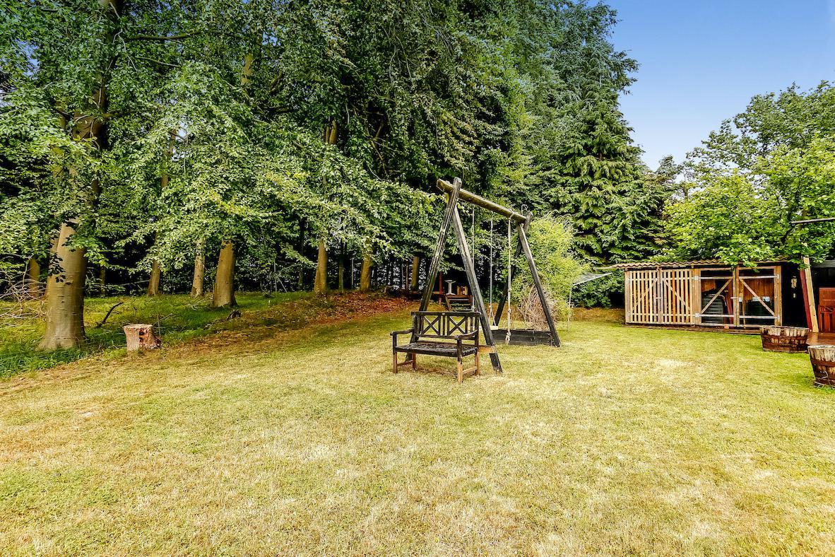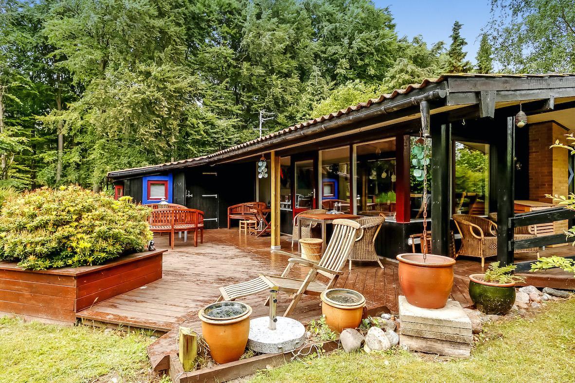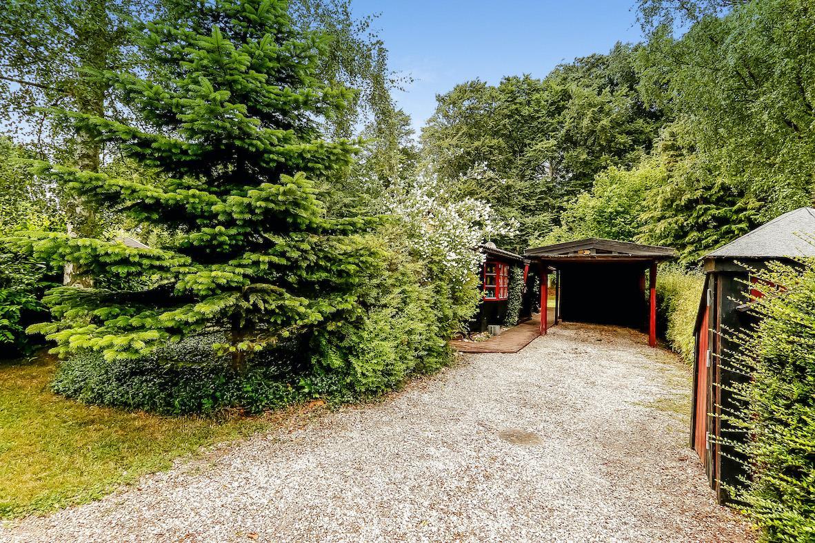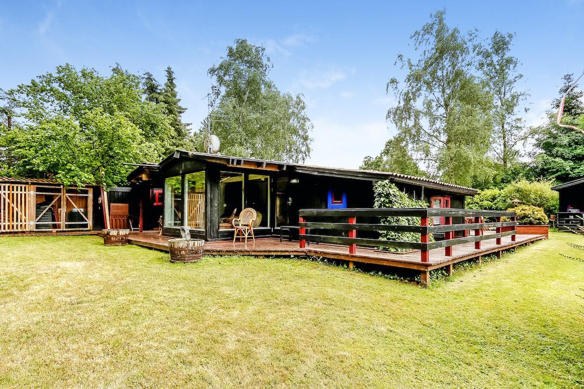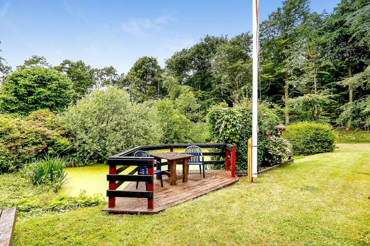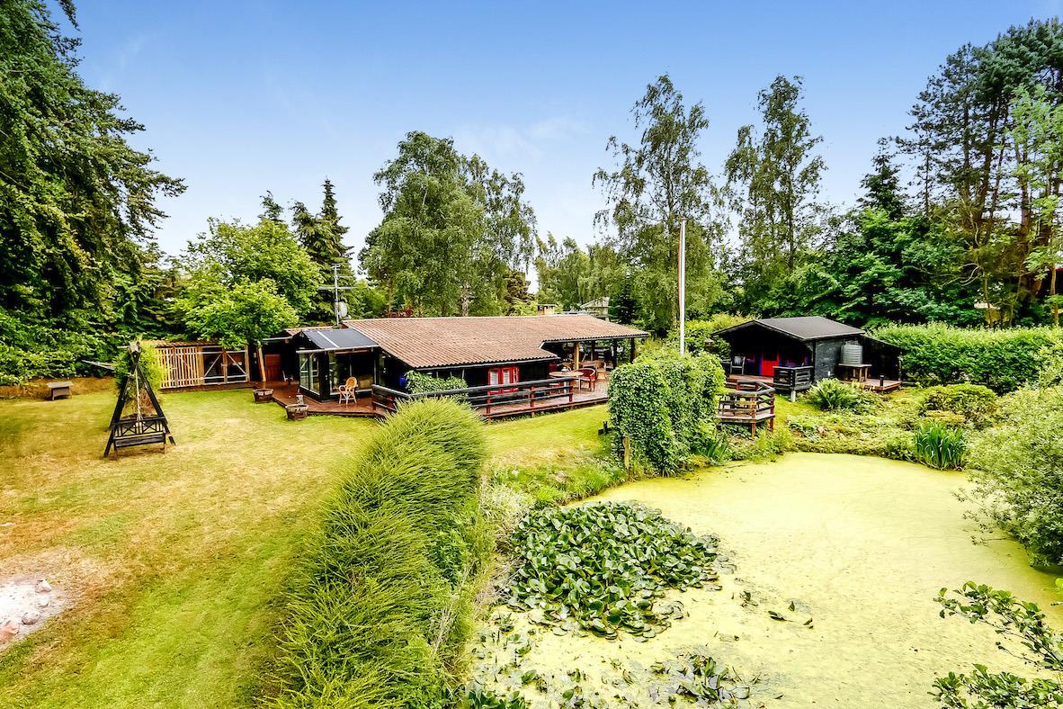 Charmerende feriehus på 90 m² på en 1.200 m² stor grund med en lille dam i baghaven. Huset er omkranset af høje træer og byder på en ægte træhytte/stemning. Huset er hyggeligt indrettet med god belysning, store vinduer og en skøn udsigt til haven.