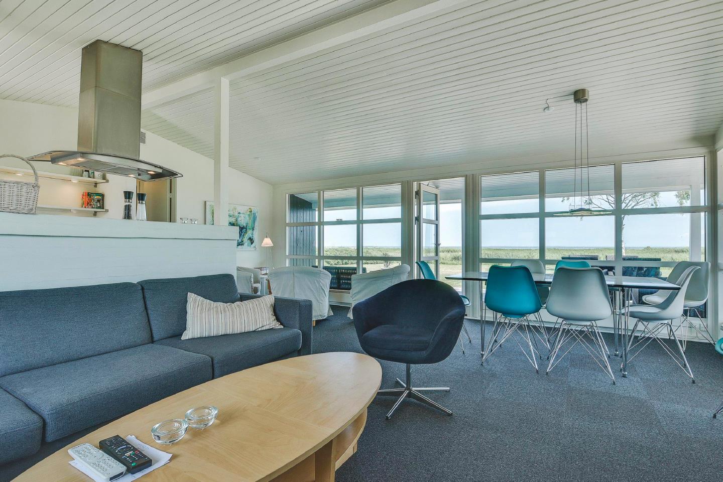Huset er meget velindrettet. Fra køkkenet har I direkte udgang til terrassen. I stuen er der store vinduespartier med et flot lysindfald og en fantastisk udsigt over området.