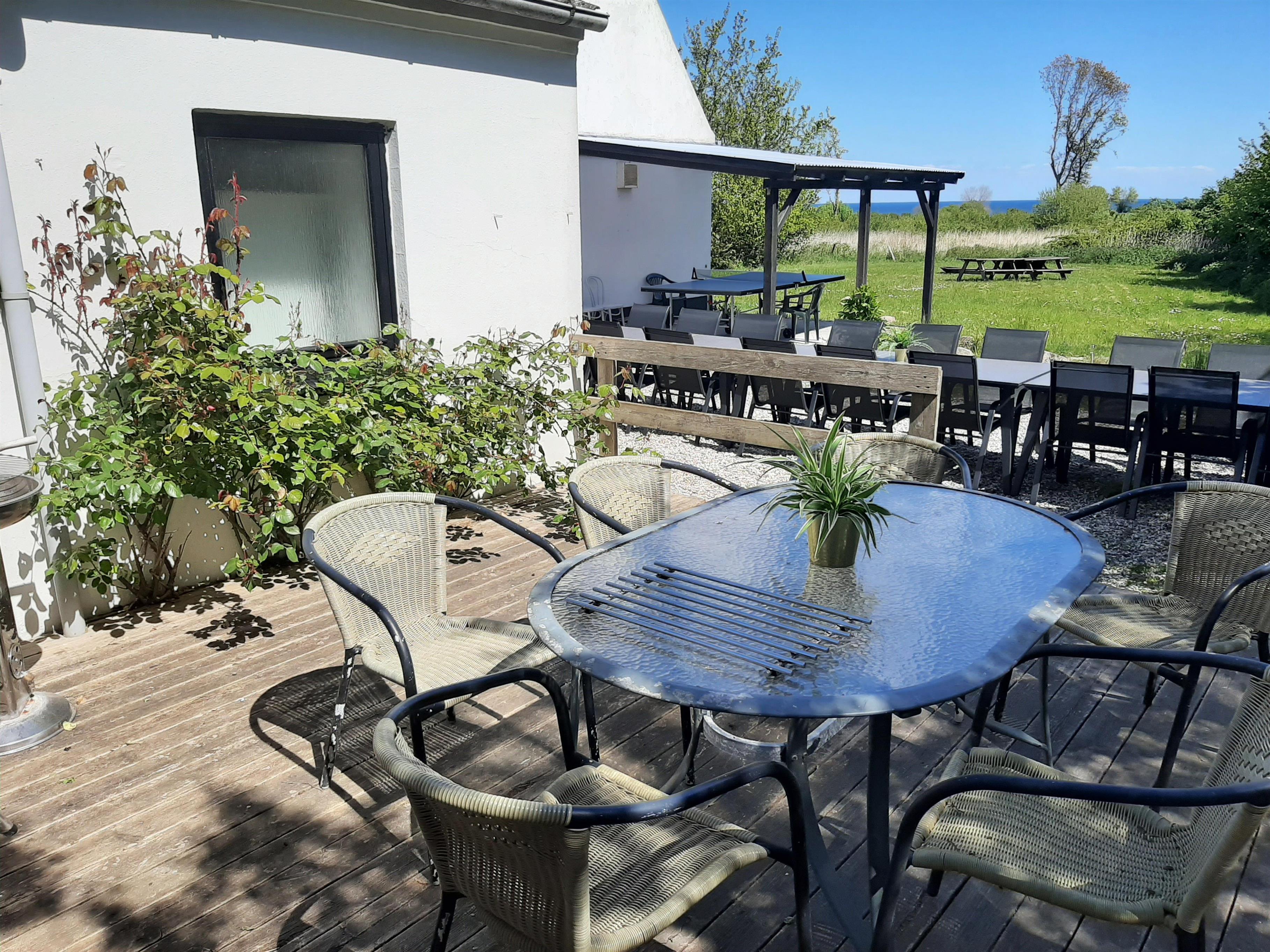 Rummeligt og hyggeligt 2-etages poolhus til 20 personer med swimmingpool og sauna beliggende på en stor naturgrund i landlige omgivelser 5 km fra Lohals med udsigt ned til havet. Huset ligger i udkanten af den lille landsby Snøde på det nordlige Langeland med nem adgang til den lokale købmand.