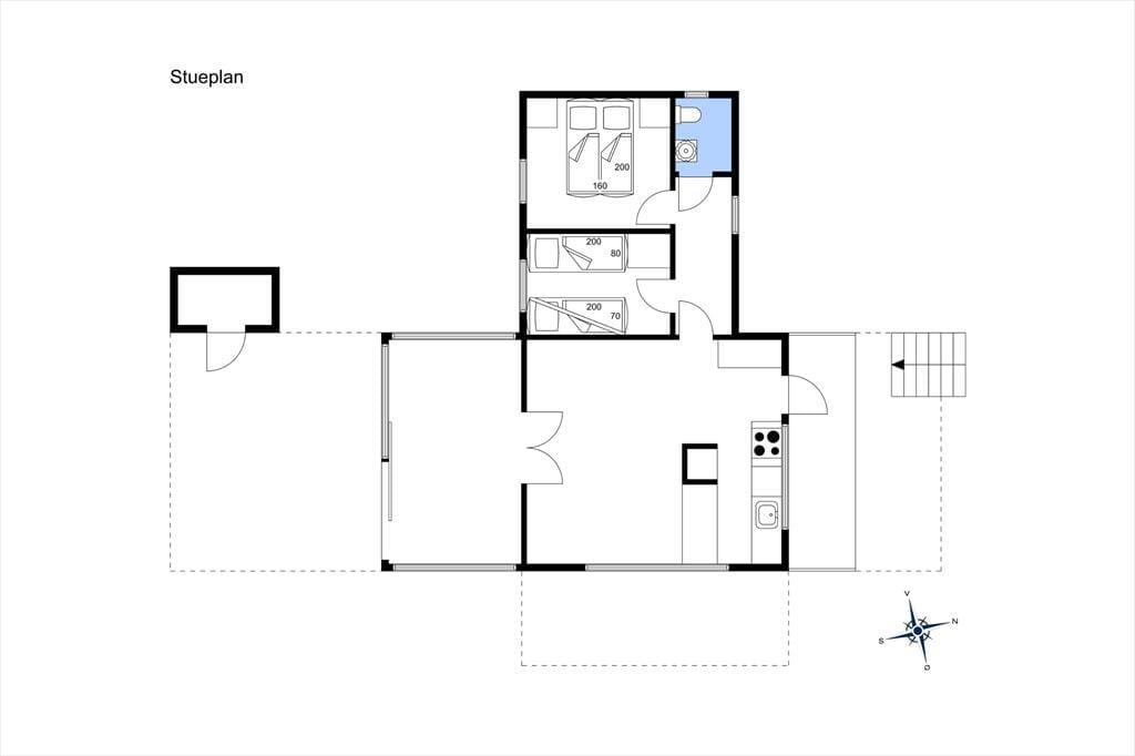 Huset rummer to soveværelser og et toilet på stueplan, mens badeværelset med vaskemaskine ligger i underetagen med egen indgang. Alt, hvad I har brug for til en bekymringsfri ferie, er på plads.