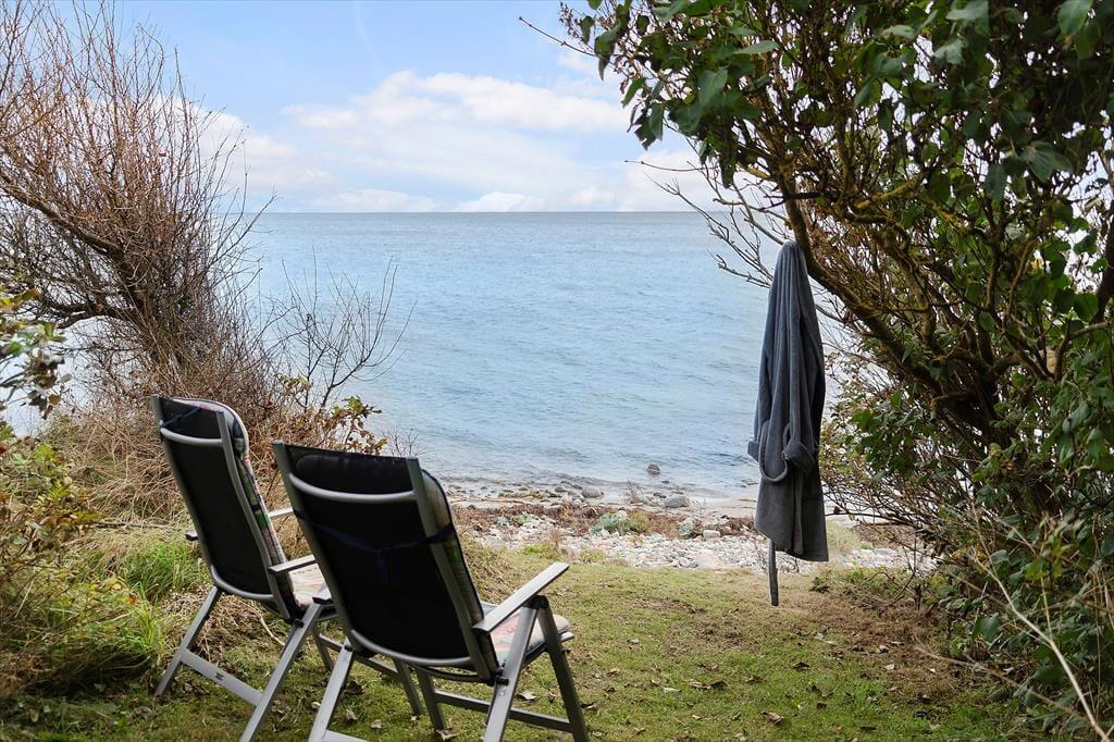 På terrassen er der udsigt over havet, og det er svært ikke at bruge mange timer på at nyde denne udsigt. Du kan næsten ikke komme tættere på stranden, end når du bor i dette sommerhus. Så snart du træder udenfor, er havet og stranden lige ved hånden, så I kan gå direkte ned og tage en dukkert.