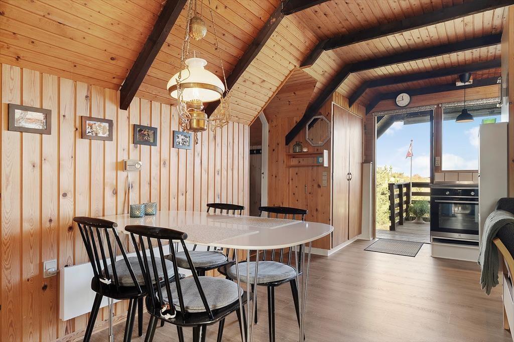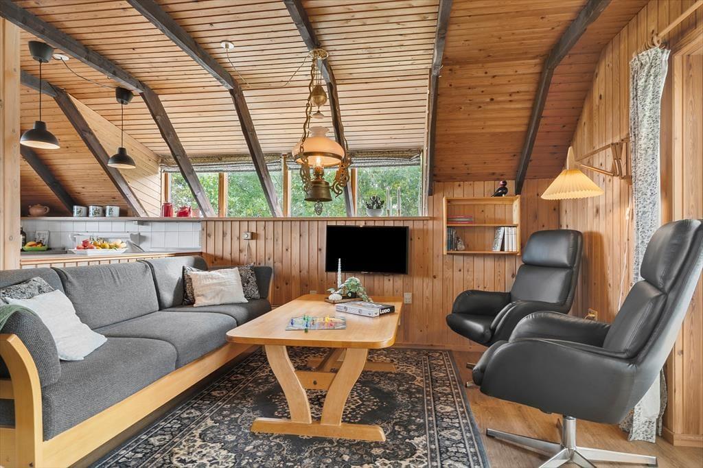 I udestuen er der god plads til at nyde måltiderne. Spisebordet har plads til alle, så uanset vejret kan måltiderne nydes med udsigt til skov og natur som baggrund. Ved siden af spisebordet finder I også sofa og lænestole, hvor det er oplagt at slappe af med en god bog eller nyde en kop eftermiddagskaffe. Her kan I tilbringe mange hyggelige timer sammen.