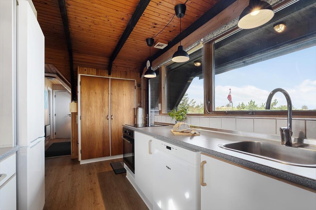 Sommerhuset er indrettet med fokus på hygge og samvær for op til fem gæster. Planløsningen er enkel, men charmerende og giver huset karakter. Det absolutte højdepunkt er udsigten: fra køkkenet og terrassen har I frit kig til havet, så selv når I laver mad, er naturen en del af oplevelsen.