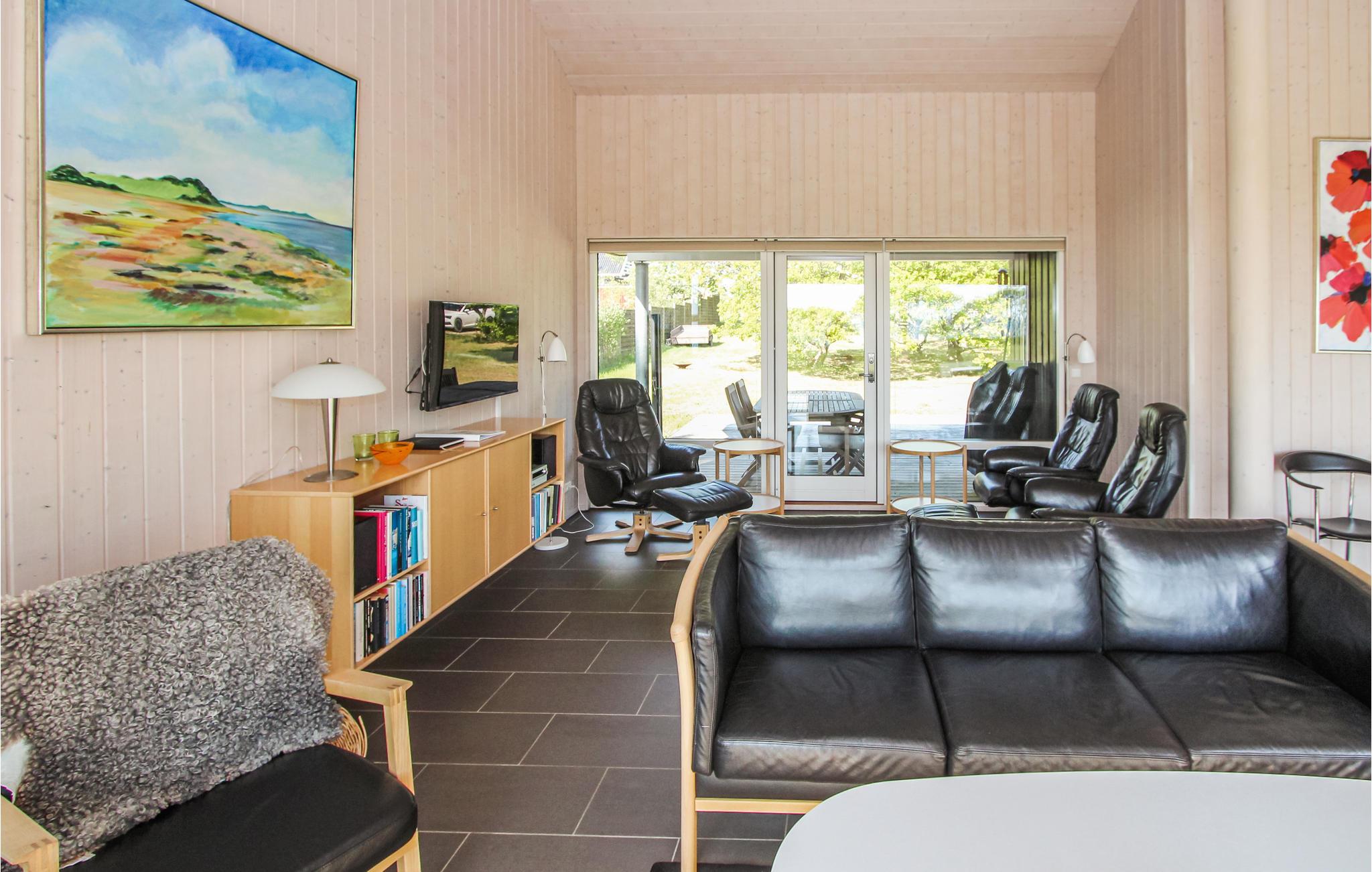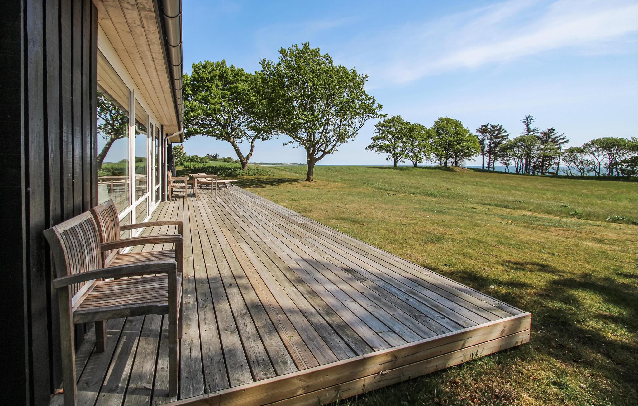 Huset, der ligger idyllisk ved havet, fortryller med sin lyse og smagfulde indretning. Da næsten hele den ene side af stuen består af vinduer, kommer der ikke kun masser af dagslys ind i huset, men I har også en vidunderlig udsigt over engene til havet. Sauna og boblebad byder på behagelig afslapning efter lange dage med udflugter på øen.