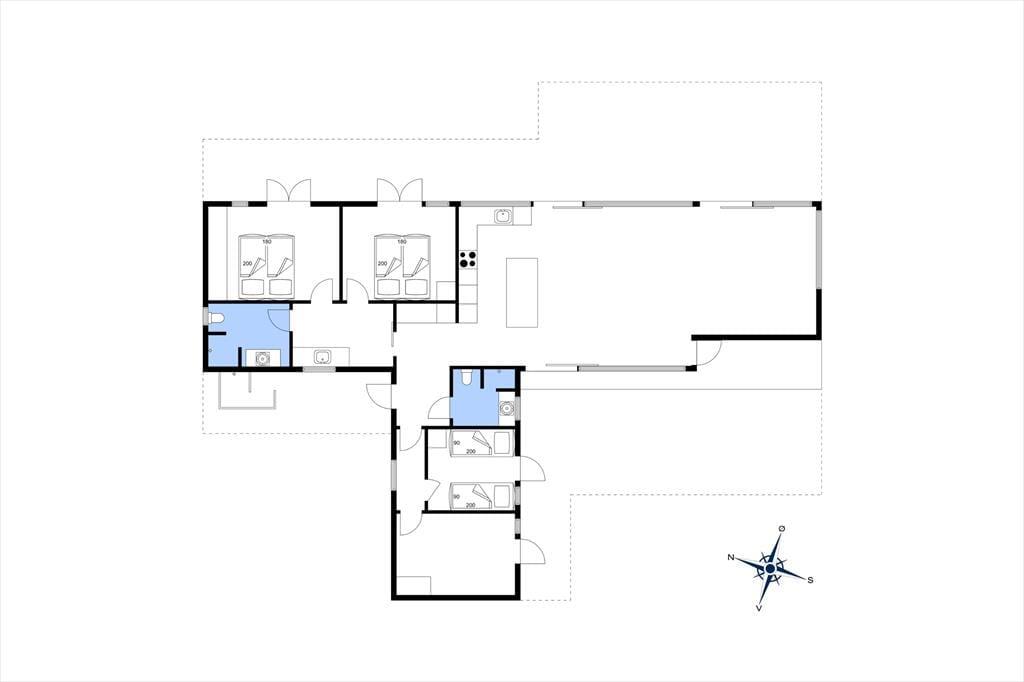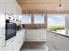 Stuen og køkkenet udgør husets samlingspunkt. Det åbne køkken gør det muligt at tilberede aftensmaden, mens du stadig kan snakke med dem, der hygger sig i stuen. Køkkenet er funktionelt og veludstyret med alle nødvendige faciliteter – og selvfølgelig udsigt til havet. Spisebordet er i forlængelse af køkkenet, og her er der plads til at spise sammen eller nyde et hyggeligt spil.