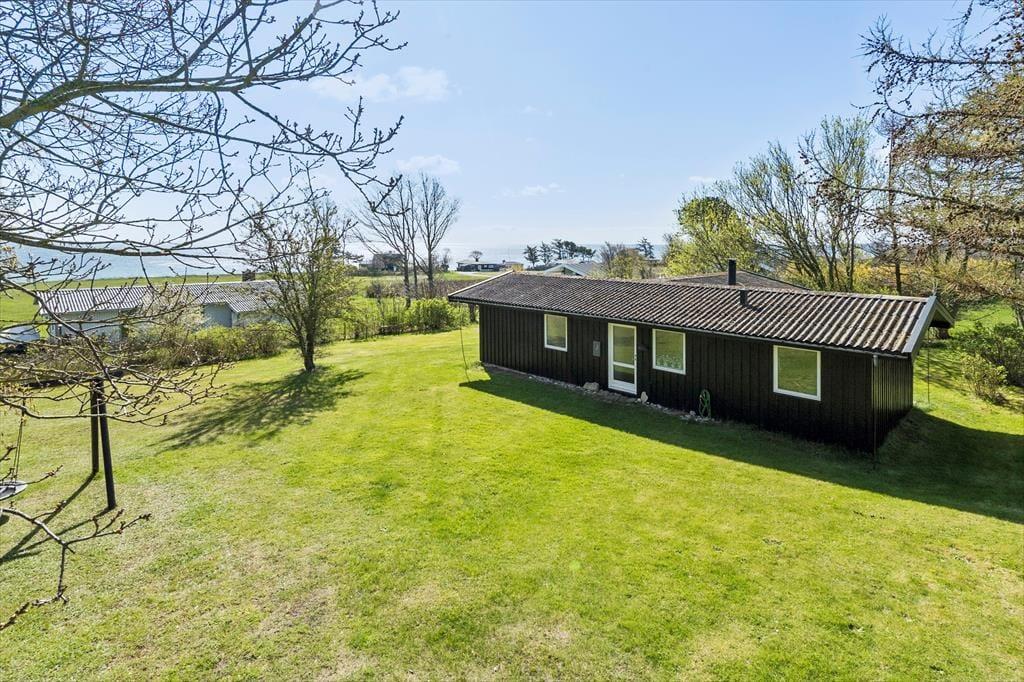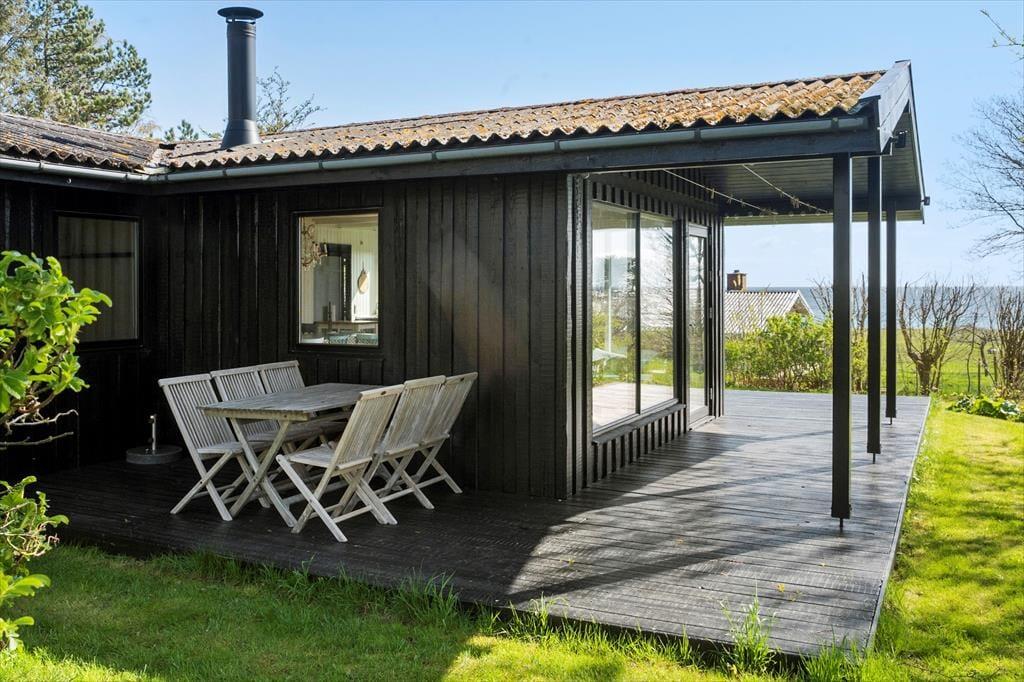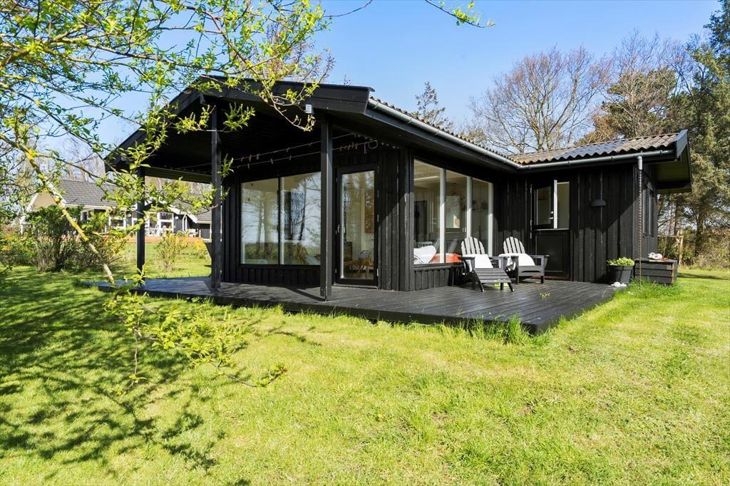 Sommerhuset har en dejlig stor have med træ terrasse. Huset er et klassisk og hyggeligt træhus med brændeovn og autentisk sommerhus indretning. Kun 150 meter fra huset er der en dejlig strand, hvor man kan bade eller nyde en gåtur. Kun 2 km ligger Ballen by hvor man kan fornøje sig med forskellige restauranter.
