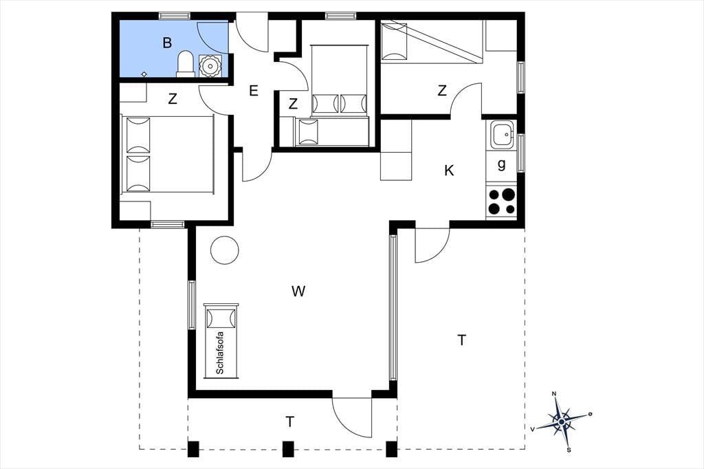 Huset har tre værelser der er fordelt med to soveværelser med dobbeltseng samt et værelse med køjesenge., så der er plads til både børn og voksne.