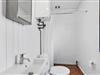 Ved siden af det store soveværelse er husets badeværelse, der ikke er stort, men har de faciliteter, der er brug for i sommerhuset.