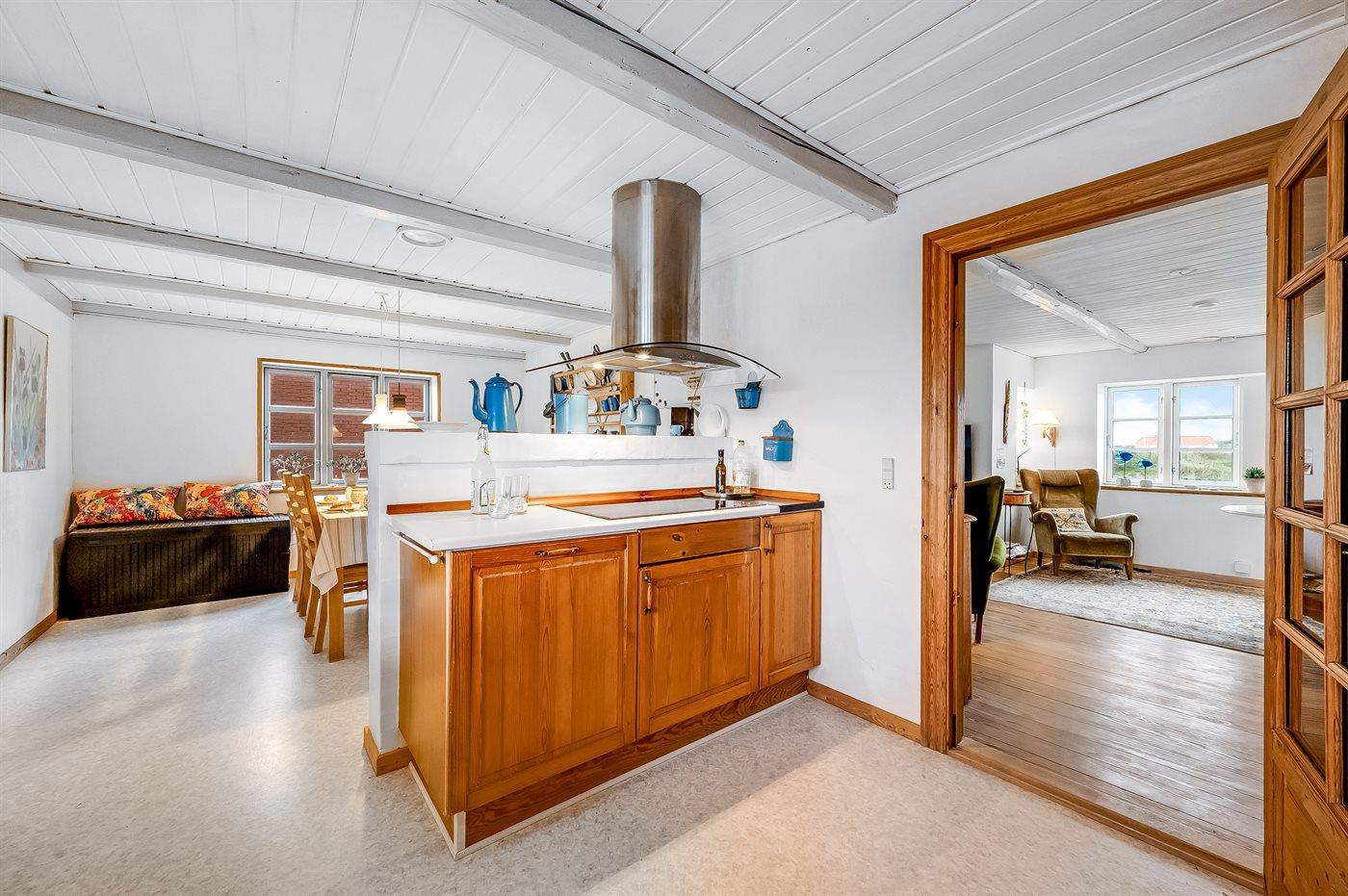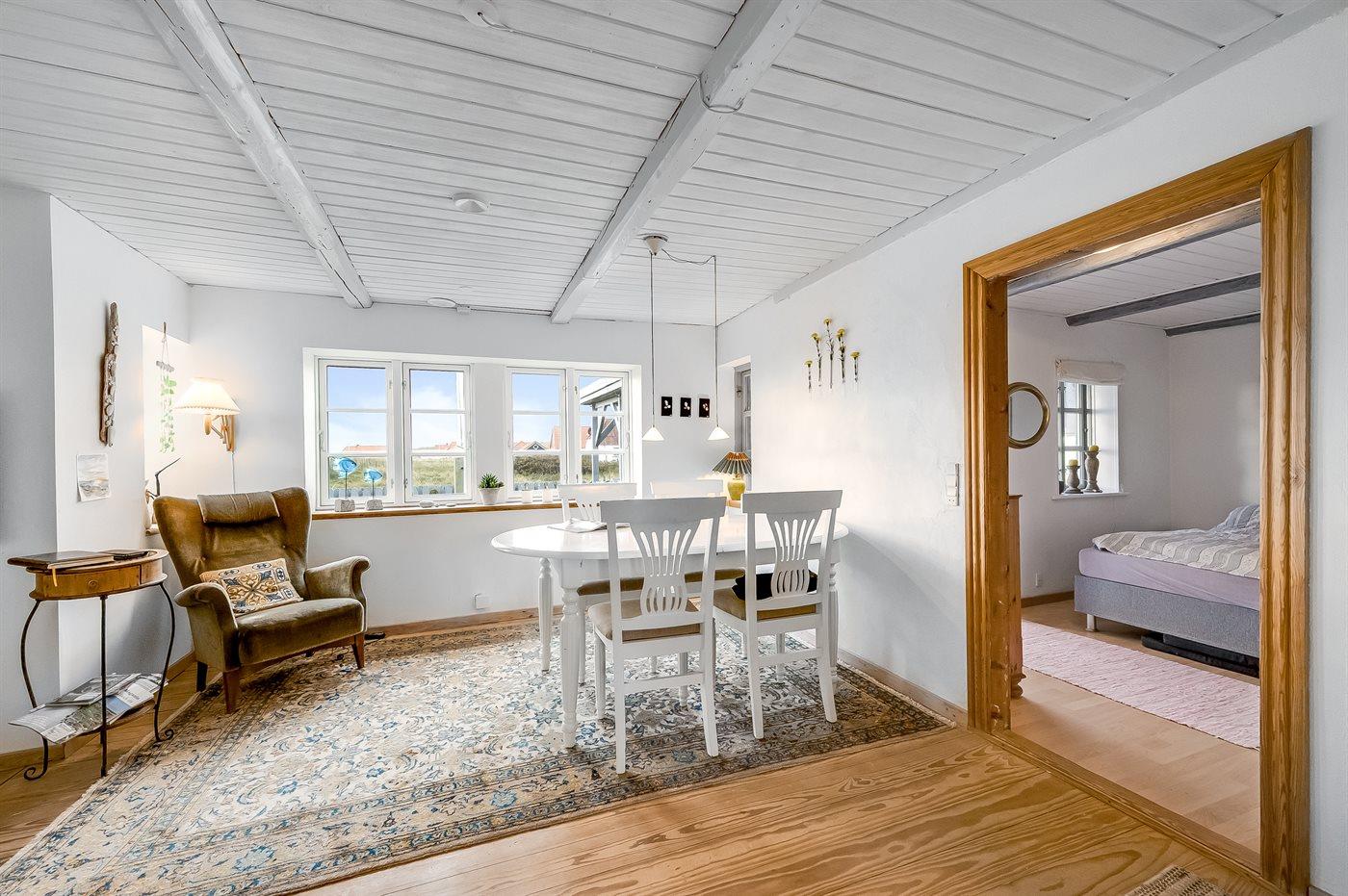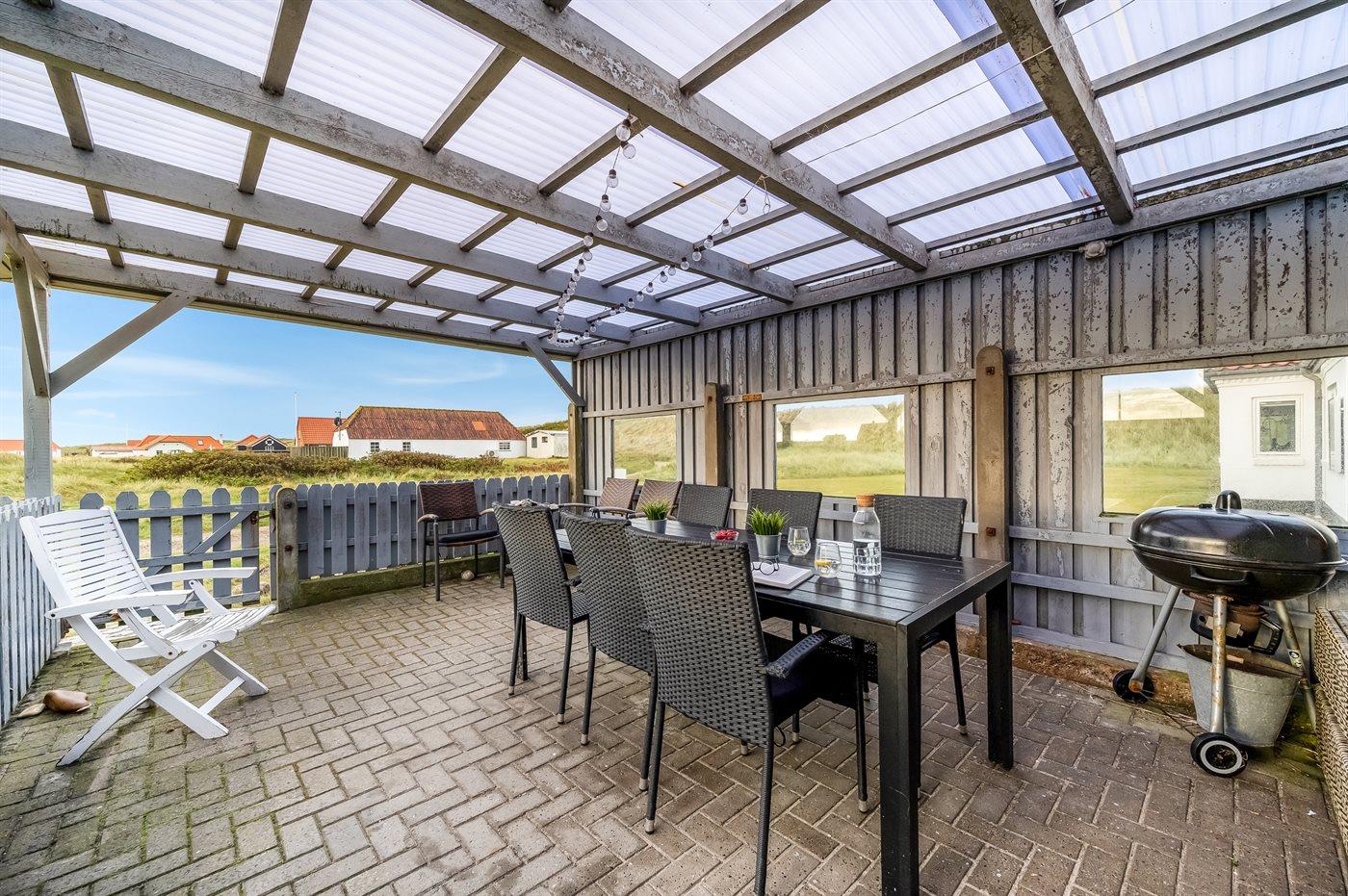 Dette meget charmerende sommerhus er indrettet i et oprindeligt fiskerhus bygget i sten, med beliggenhed i første klitrække til stranden og Vesterhavet. Huset er opført i 1900, men nænsomt renoveret, så det står opdateret med hyggelig indretning. Til huset hører en stor vestvendt terrasse samt dejlig overdækket terrasse med gode læforhold. Huset har en dejlig stue med brændeovn samt et godt og rummeligt køkken/alrum. I stueplan er der endvidere et pænt badeværelse og 3 gode soveværelser. Bemærk, at det ene soveværelse er et gennemgangsværelse (se grundplan).