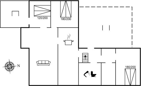 Køkkenet er udstyret med 1 køleskab. Der er 4 induktionskogeplader, varmluftovn, mikrobølgeovn samt opvaskemaskine.
