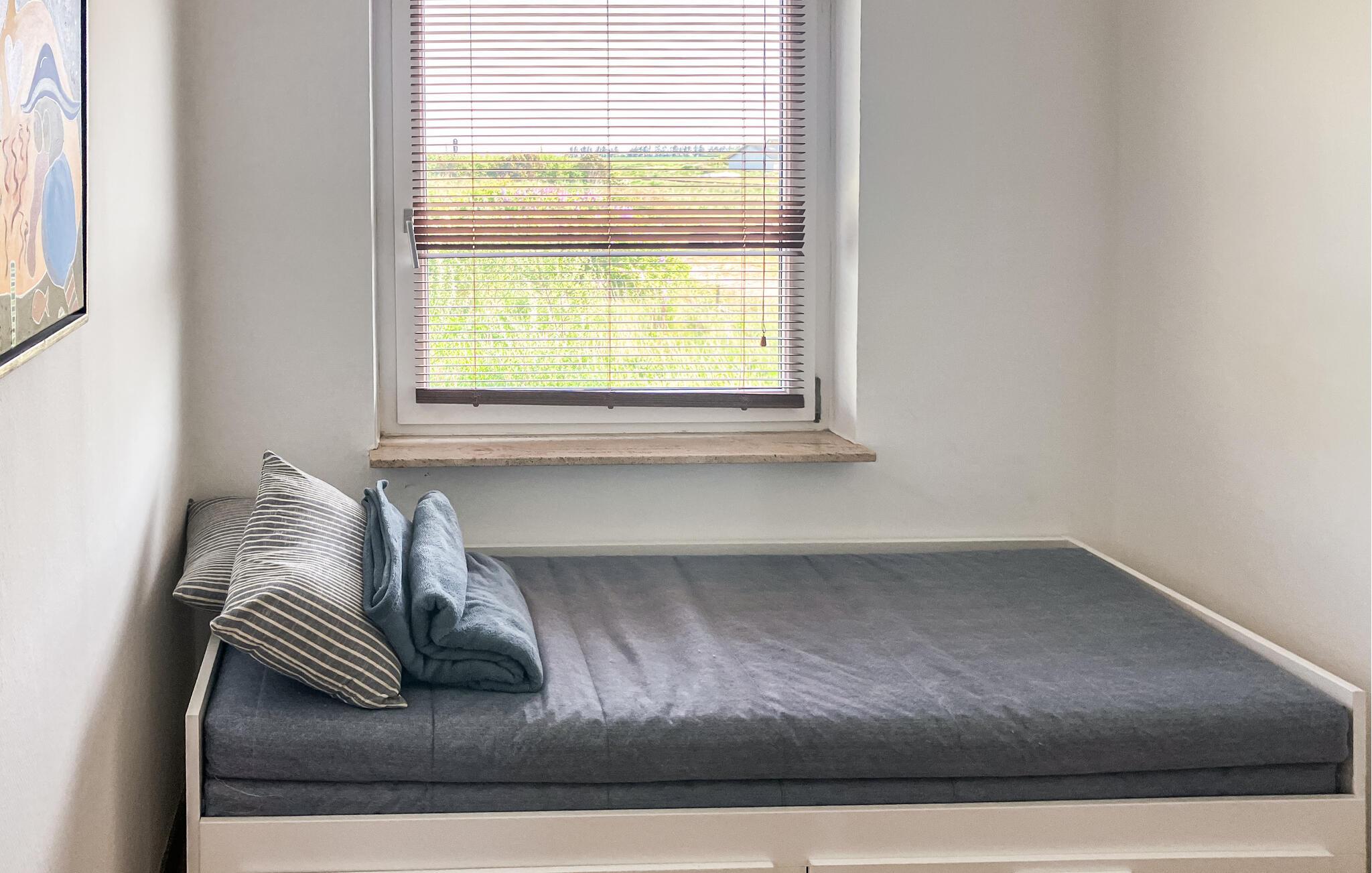 Ren ferieafslapning venter jer i dette komfortable hus, som er godt placeret nær stranden og er det optimale sted til en familieferie. Find jer godt til rette i de hyggelige og moderne værelser. Den indbydende sofa lægger op til nogle hyggelige aftener.