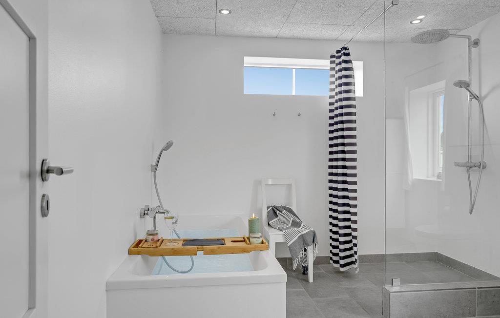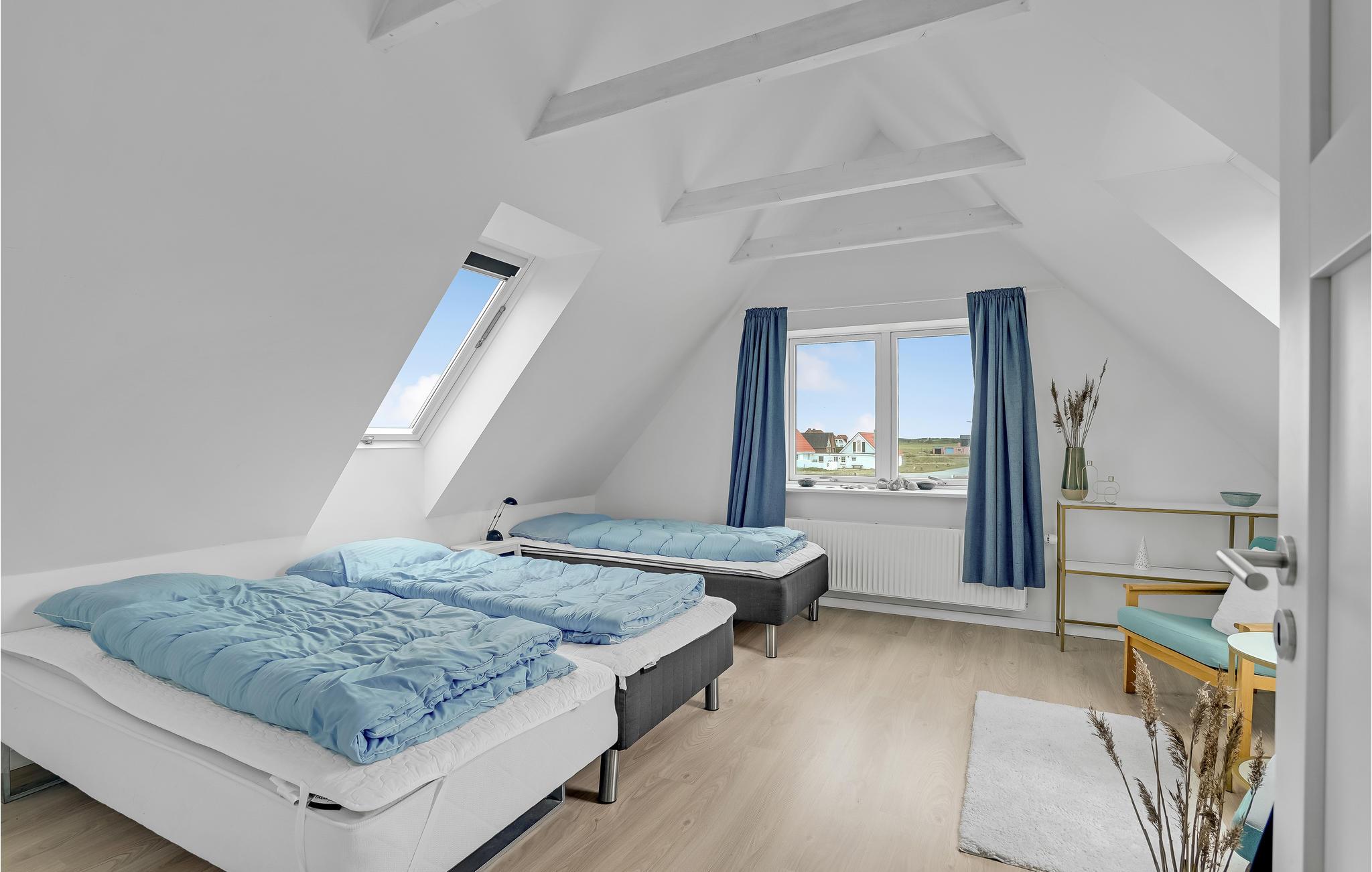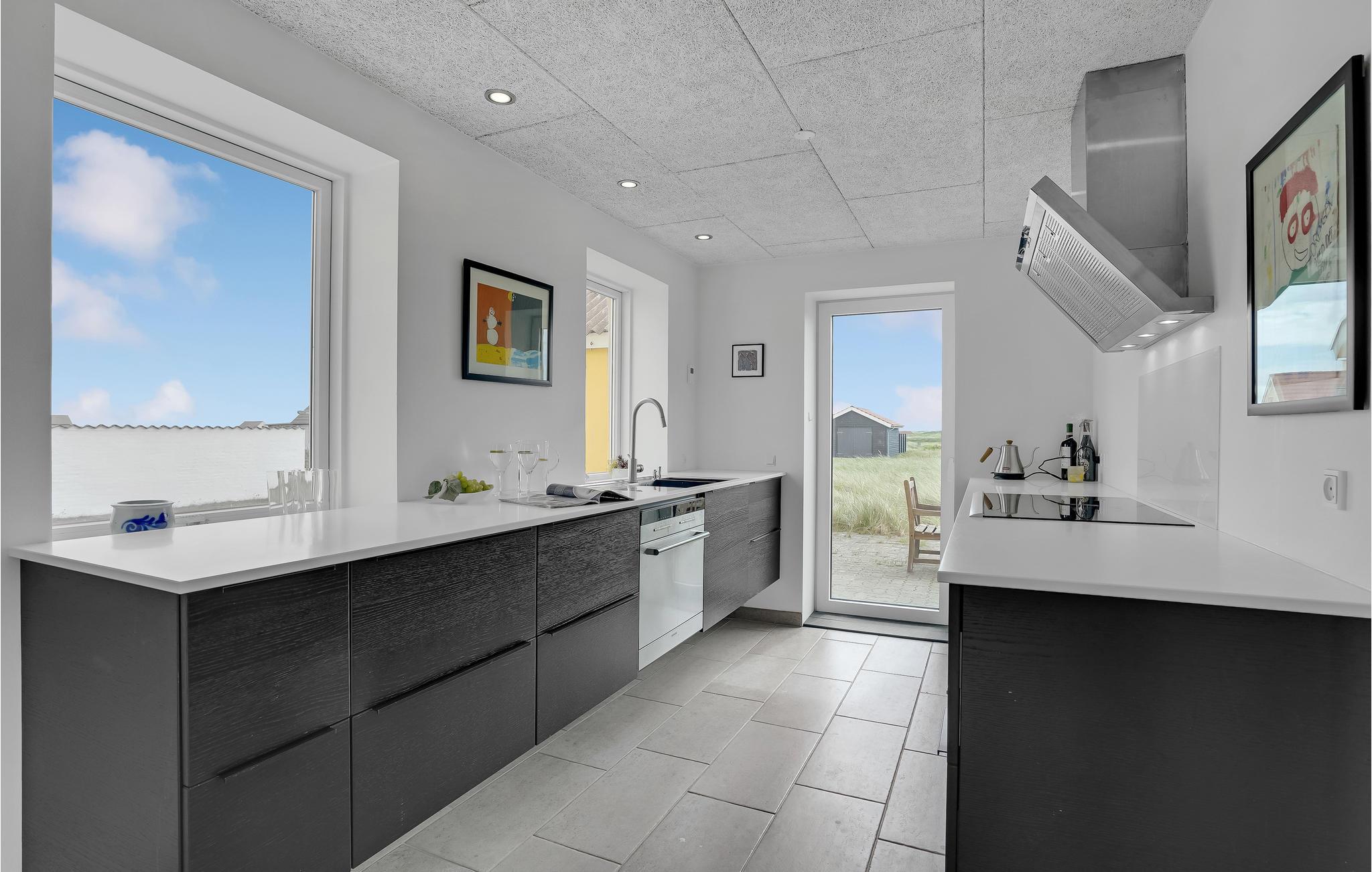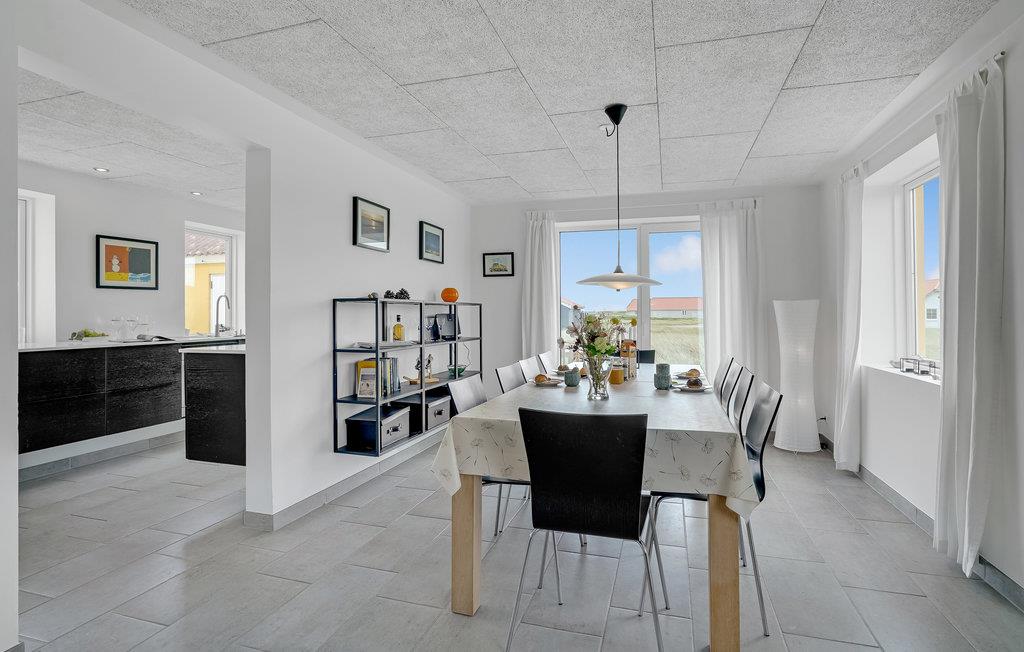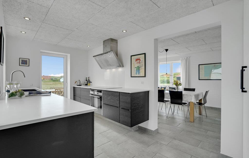 Blot 75 meter fra Vesterhavets brusende vand ligger dette flotte feriehus, hvor der er plads til den store familie. Stå på høfderne lige nede for huset, og fisk efter både makrel og fladfisk, eller spring på surfbrættet og sus afsted ud på bølgerne. Huset ligger med en af vestkystens mest attraktive placeringer, med havet som nærmeste nabo, og strande med store vidder hvor der er plads til alle. Huset har desuden den store fordel at det ligger for enden af en blind vej, så biltrafik vil være minimalt. I huset, gennemrenoveret i 2015 ligger den store spisestue og tv-afdeling med udgang til sydvendt terrasse, et flot køkken med de bedste hårde hvidevarer, et stort indbydende badeværelse med badekar, samt stort soveværelse med to sovepladser og baggang med fiskerenseplads i stueplan. I hele stueetagen er der gulvarme, som gør temperaturen yderst behageligt. På første sal ligger der hele tre soveværelser med i alt otte sovepladser, samt et fint lille badeværelse med brus. Vrist og Langerhuse ligger 10 km fra fiskerbyen Thyborøn, med forskellige aktivitetsmuligheder. Besøg for eksempel det store Sea War Museum, og lad børnene se og røre ved fisk og krabber i Jyllandsakvariet. Nyd et fiskemåltid på et af havnens restauranter, og slut dagen af med is i hånden, mens I går tur lang havnekajen. Spil golf i Lemvig golfklub, dens smukt anlagte baner ligger 15 km øst for huset. Golfklubben ligger 2 km fra den hyggelige by Lemvig, med gågade med mange butikker.