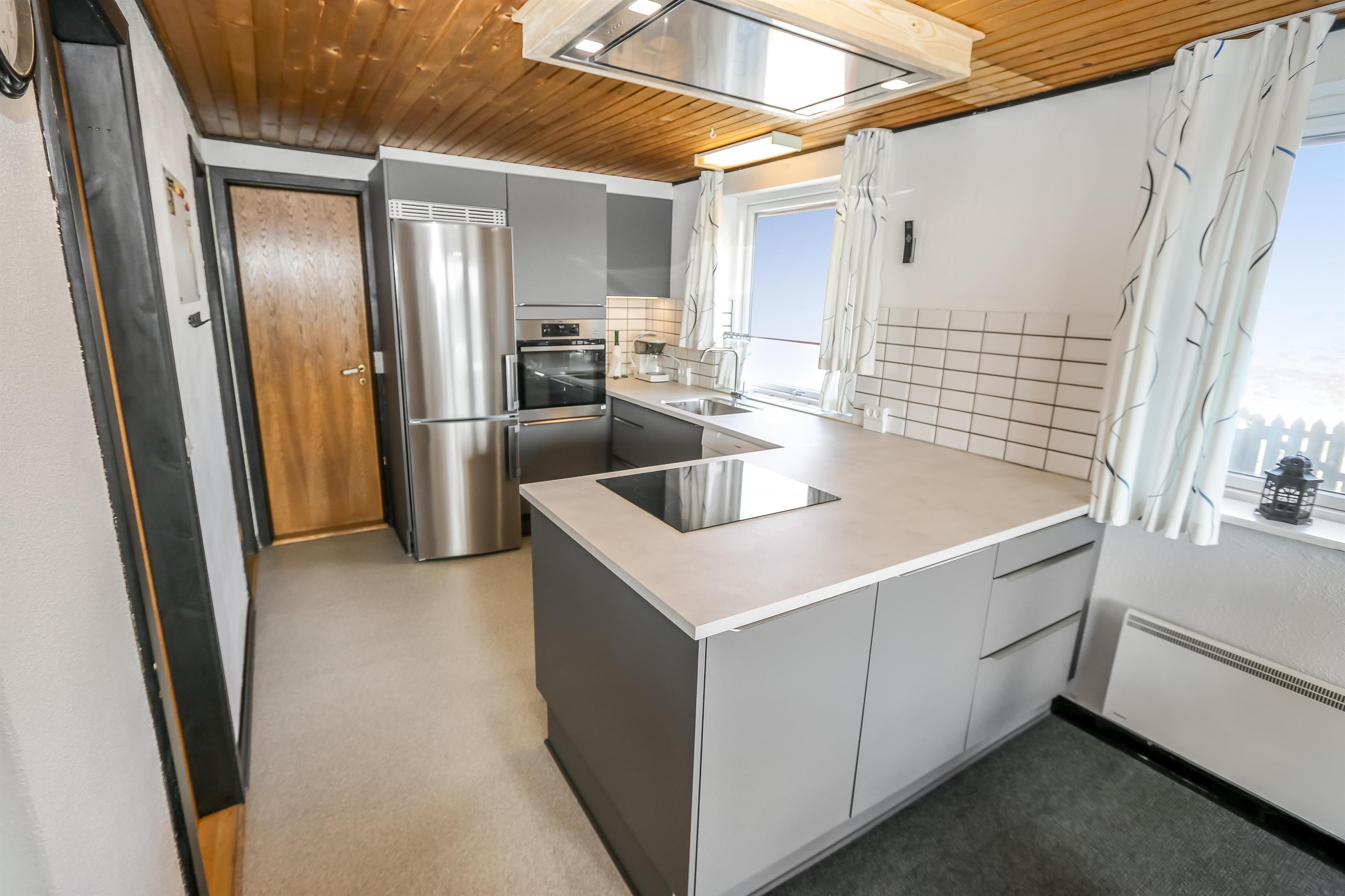 Dette feriehus i sten er med et nyt og veludstyret køkken med keramisk kogeplade, indbygget ovn, opvaskemaskine, emhætte og køle-/fryseskab. Stuen og køkkenet er kombineret og i stuen er der lædermøbler, F-TV med danske og tyske programmer, DVD og radio, desuden er der en brændeovn som sammen med varmepumpen sørger for en behagelig og billigere opvarmning. 2 soveværelser: 1DB og 1K. Anneks med soverum med 2ES og en sauna med plads til 5 personer. Bryggers med vaskemaskine og tørretumbler. Badeværelse med toilet, håndvask og bruser. Stue og soverum er med tæpper. 1 husdyr er tilladt. 1 barneseng og 1 barnestol.