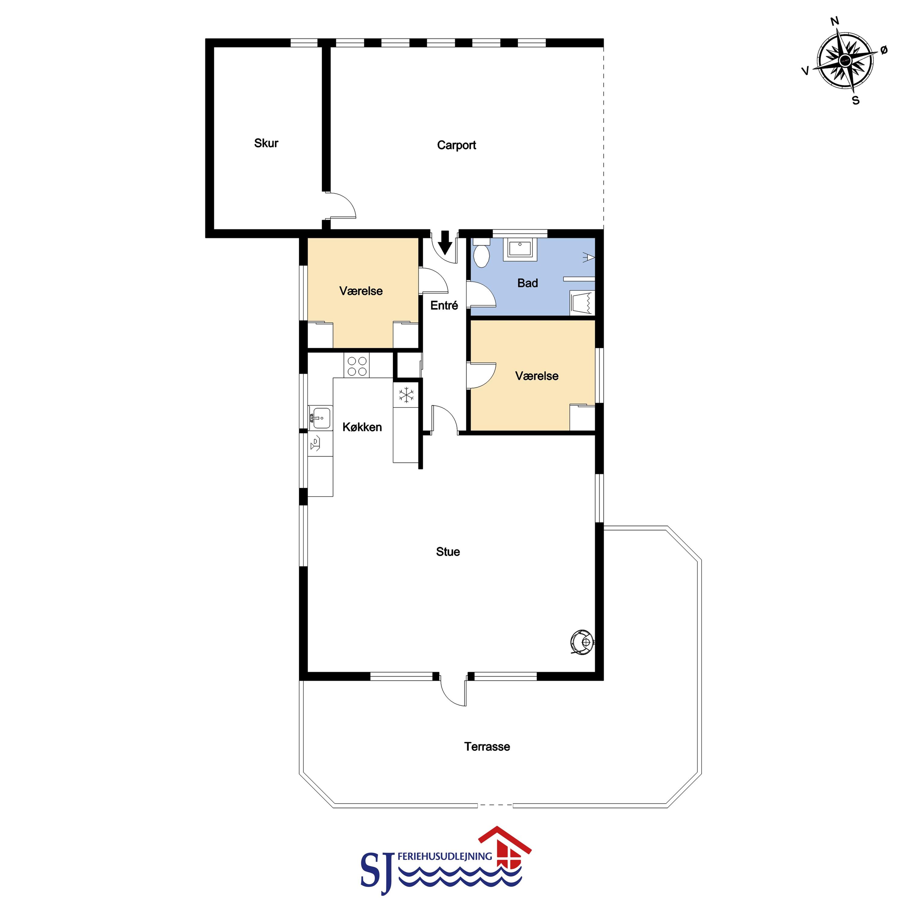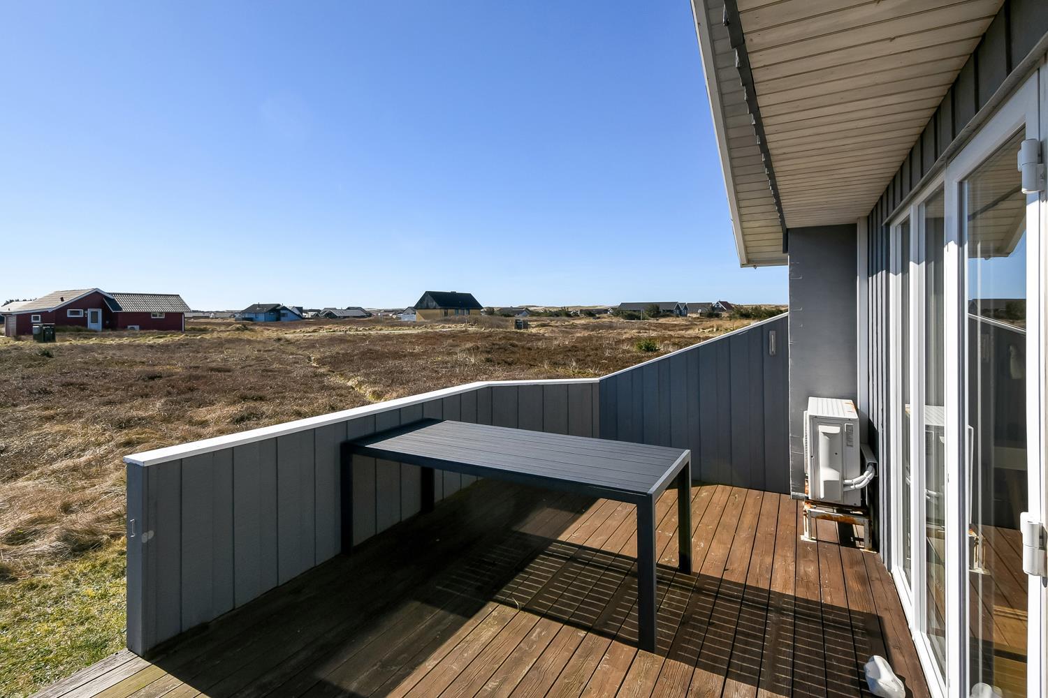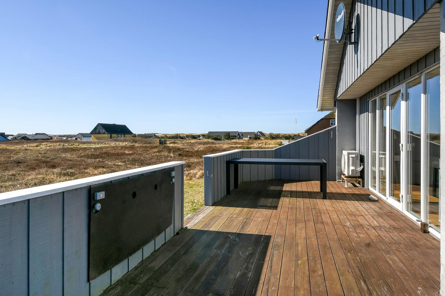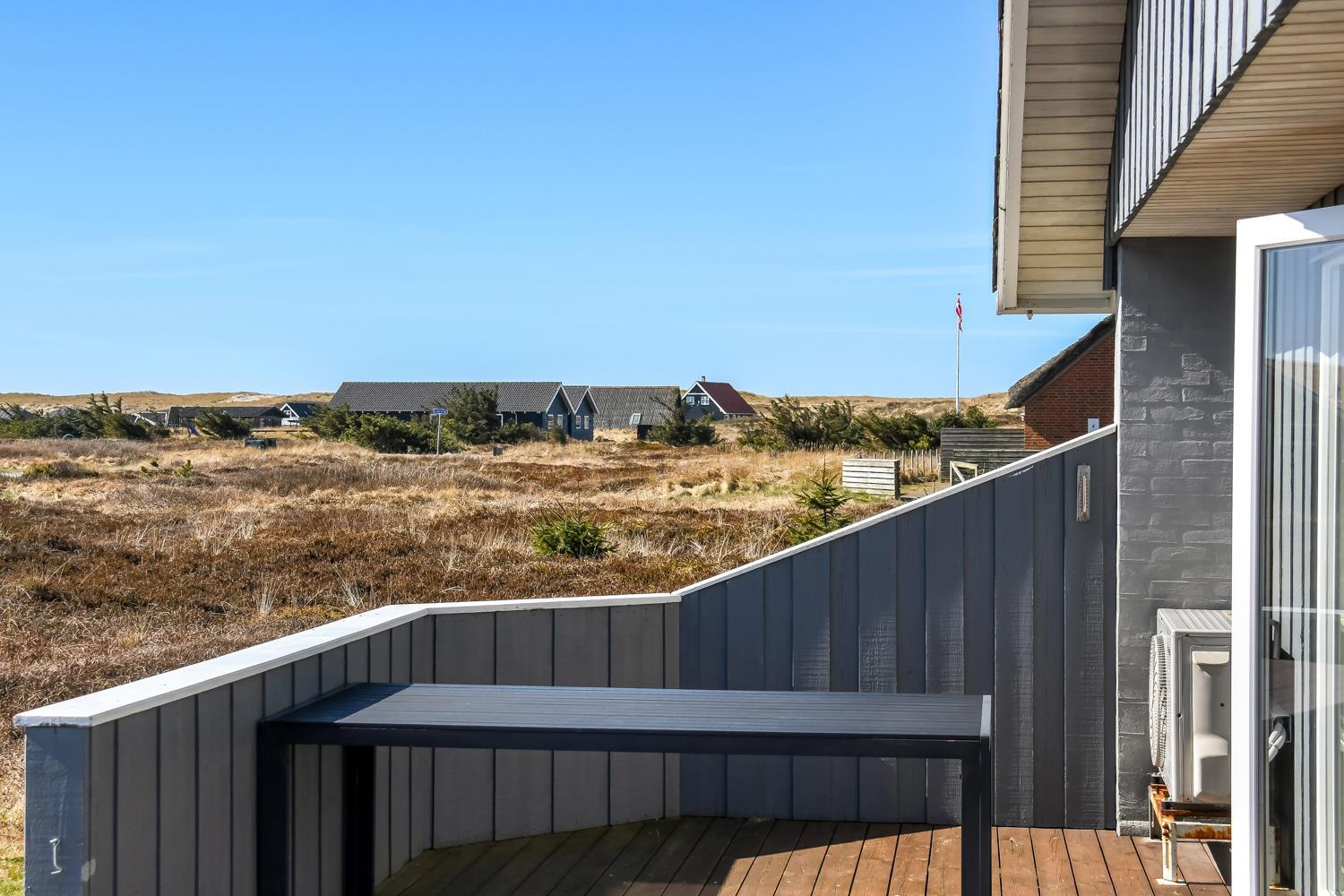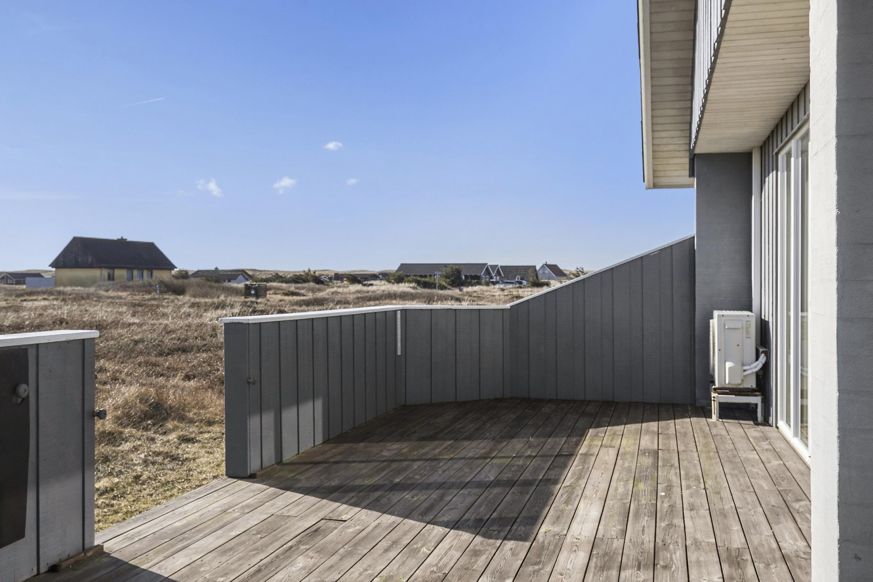 Fra opholdsstuen er der udgang til en dejlig indhegnet terrasse med havemøbler, liggestole og grill. Carport og ekstra opbevaringsrum. Et rigtig godt sommerhus med den perfekte beliggenhed på en dejlig naturgrund tæt på det unikke Vesterhav som er et dagligt besøg værd både på solrige- som på blæsende dage. Hop ind i bilen eller tag cyklen og hent morgenbrød til familien i hos de nærved liggende supermarkeder. Så hvad enten du er til aktiv ferie eller total afslapning, danner dette feriehus en dejlig ramme både hvad angår hus, beliggenhed og omgivelser.