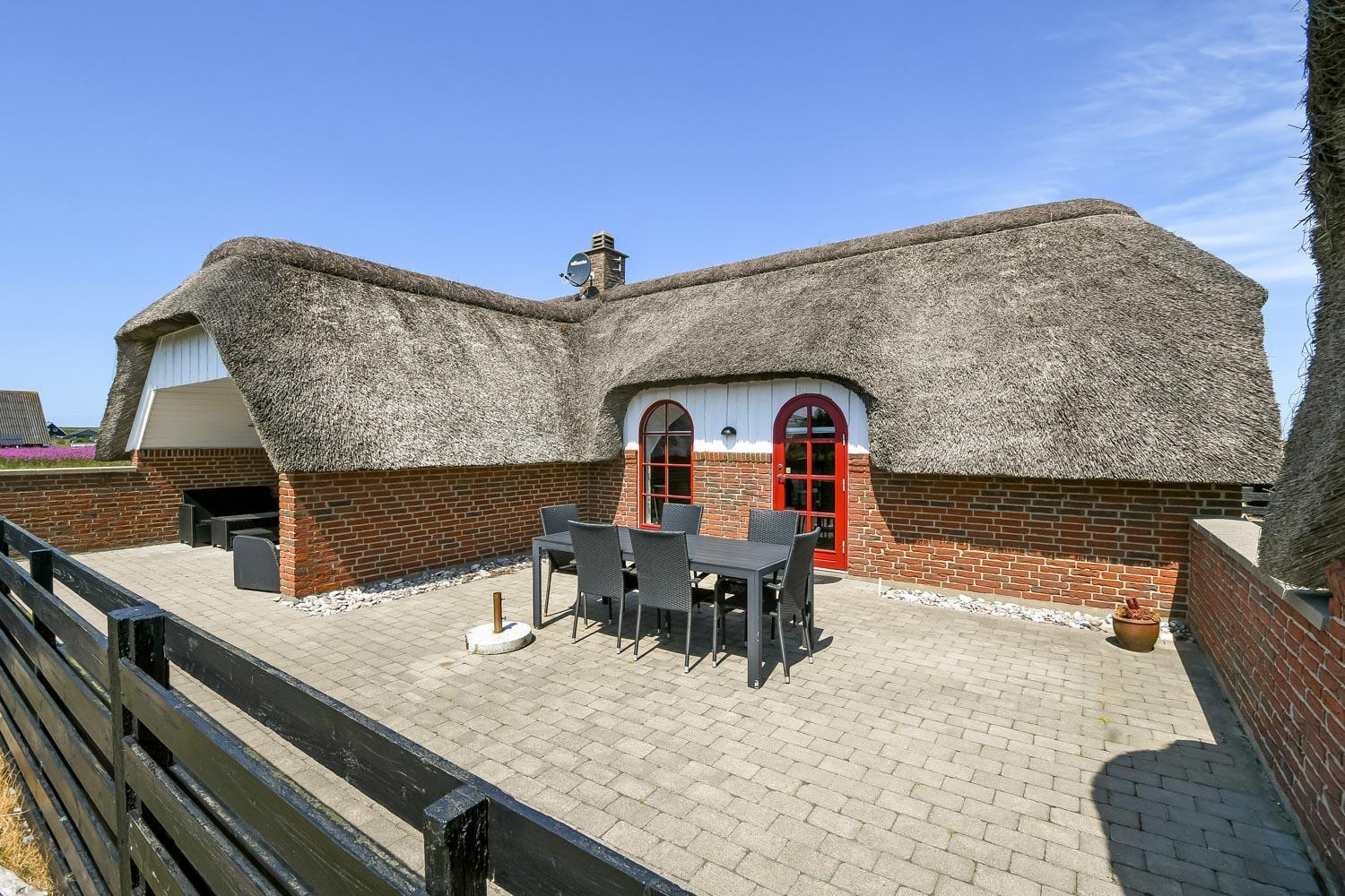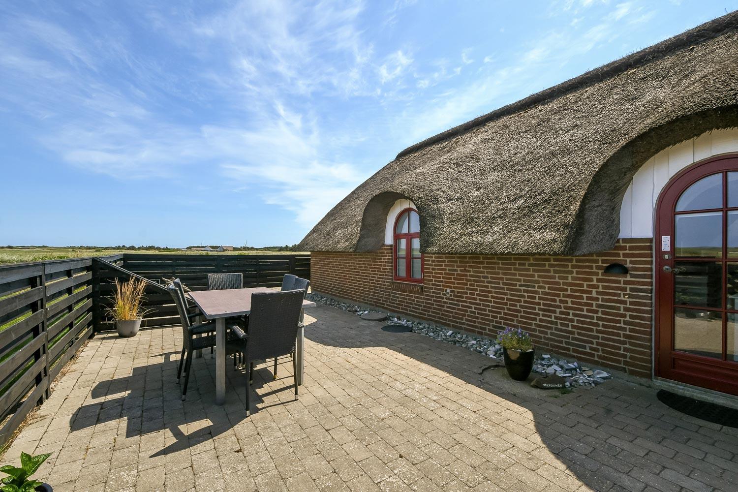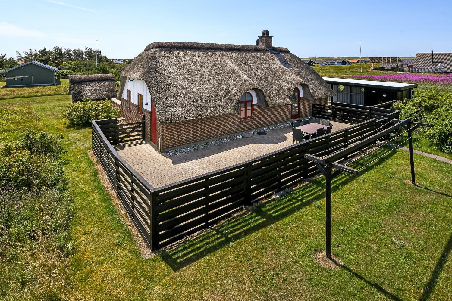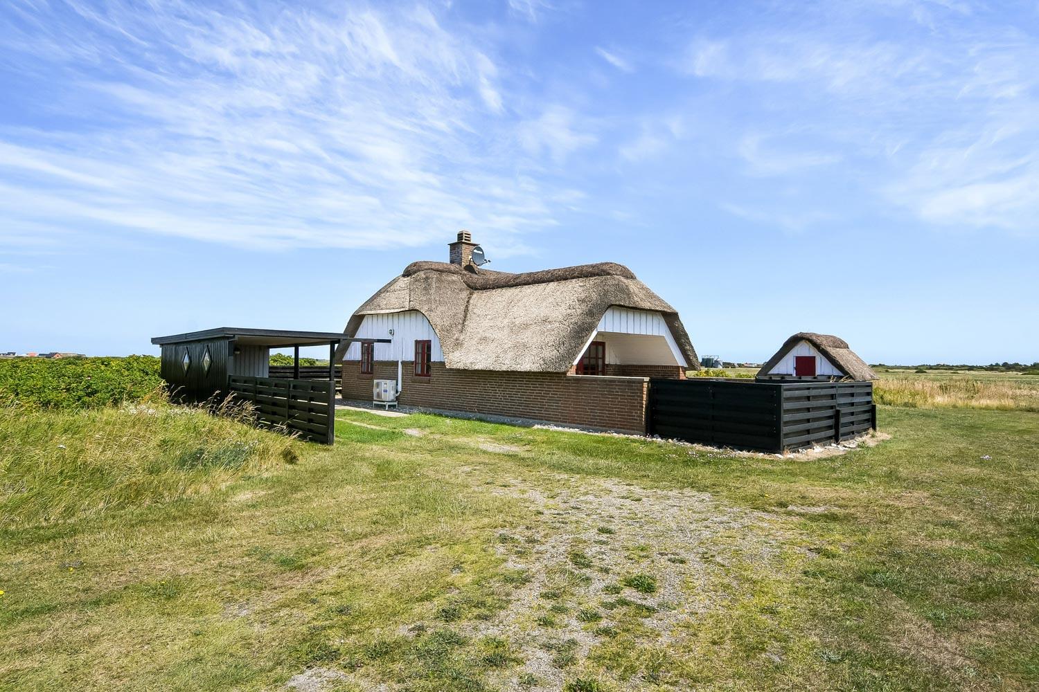 Dette skønne stråtægte stenferiehus ligger blot 350 m fra Vesterhavet. Huset har plads til 6 personer og er løbende renoveret sidst i 2024. Der er gratis fibernet og 2 hunde er tilladt.