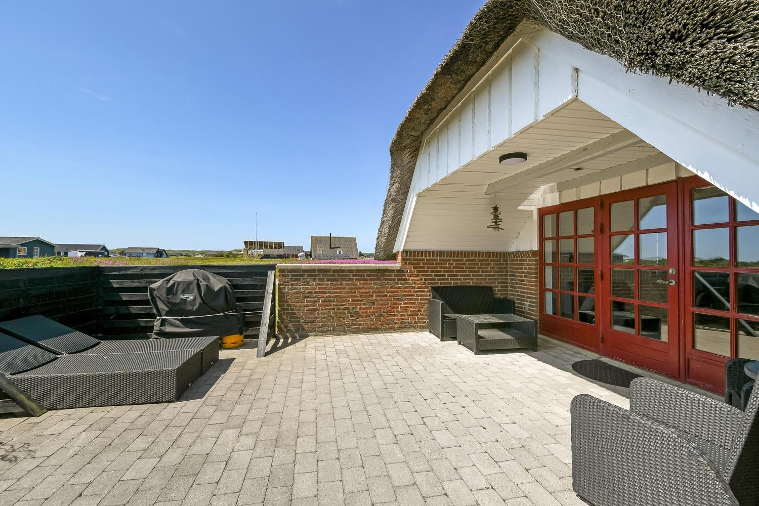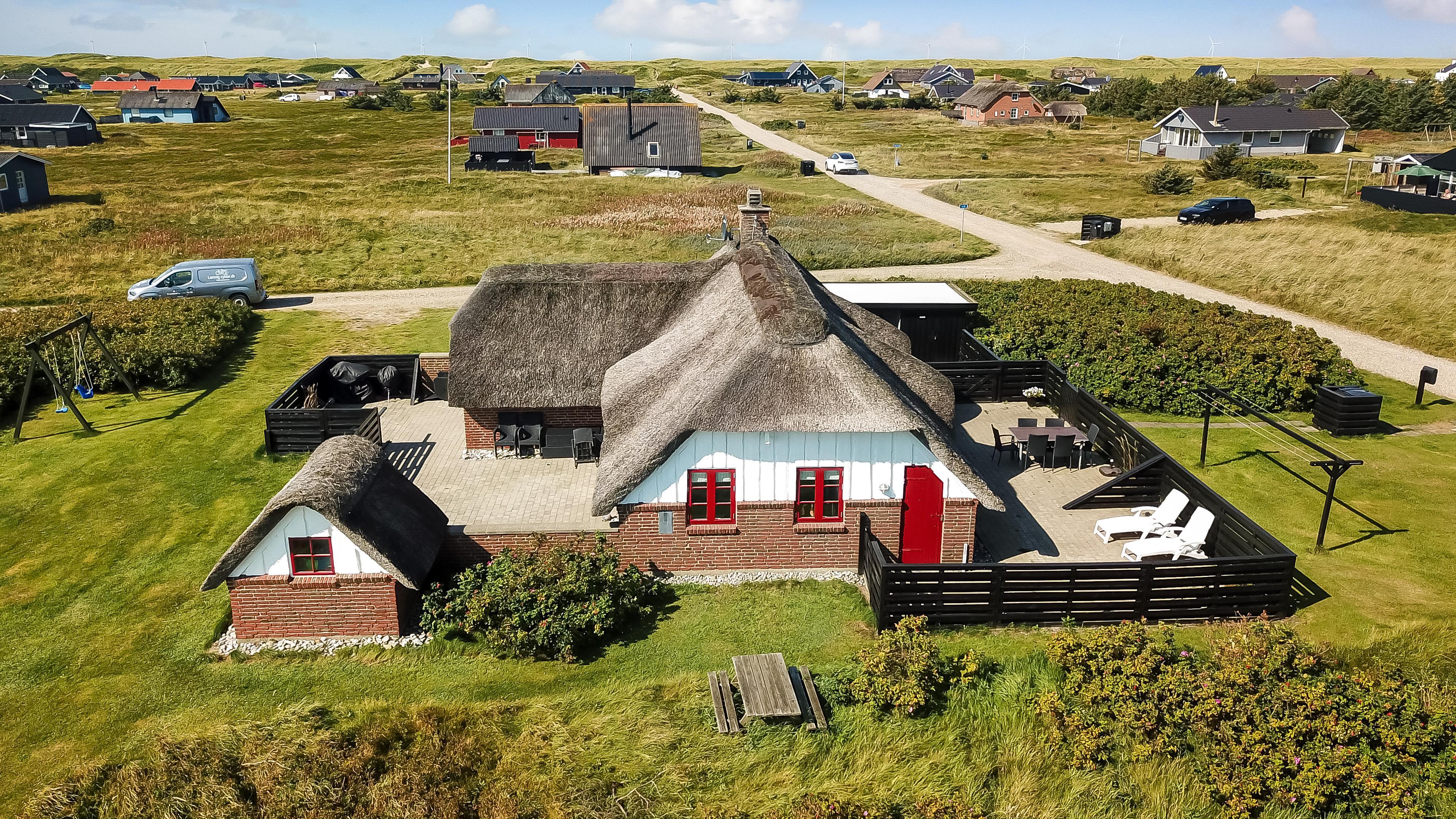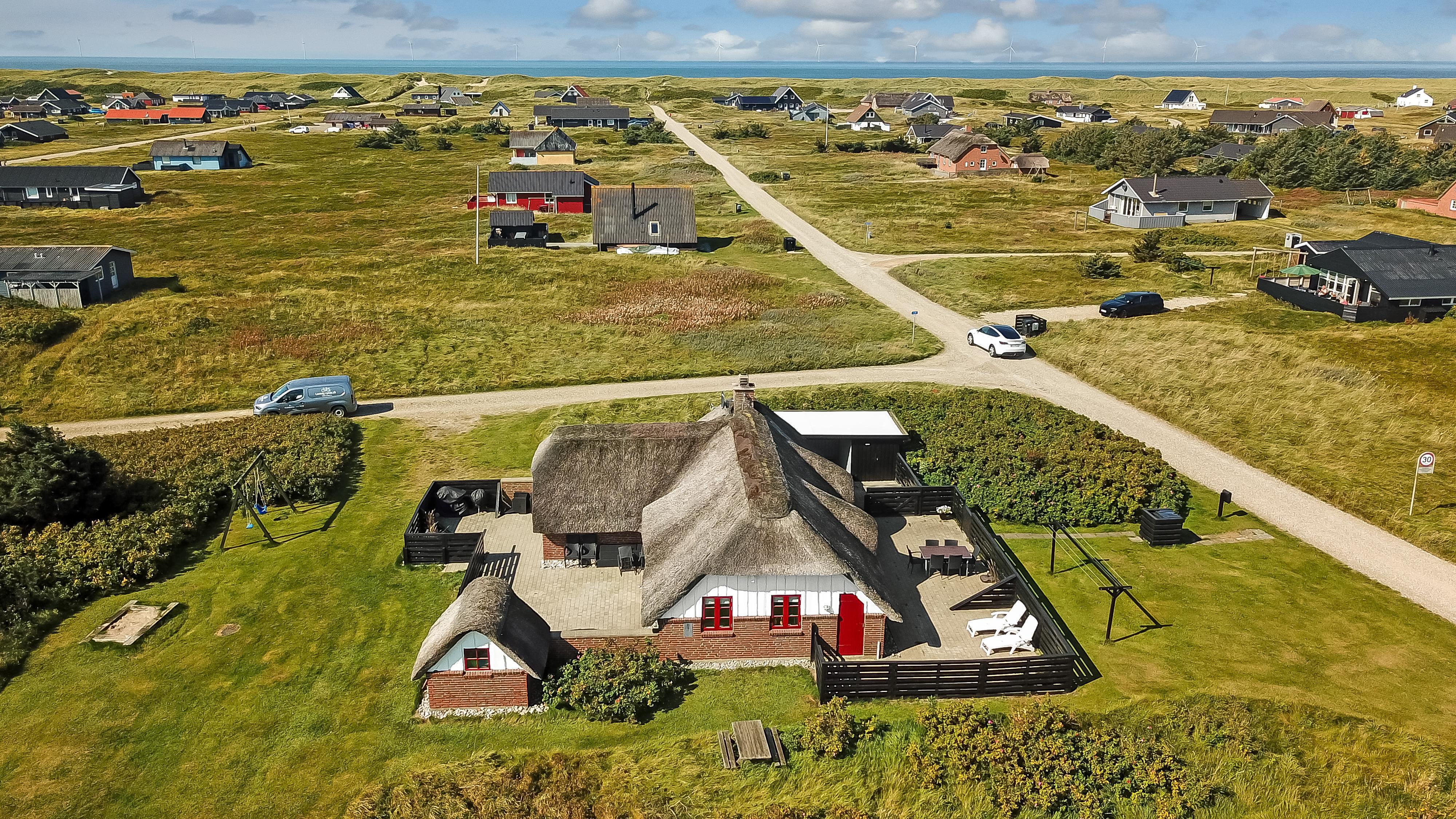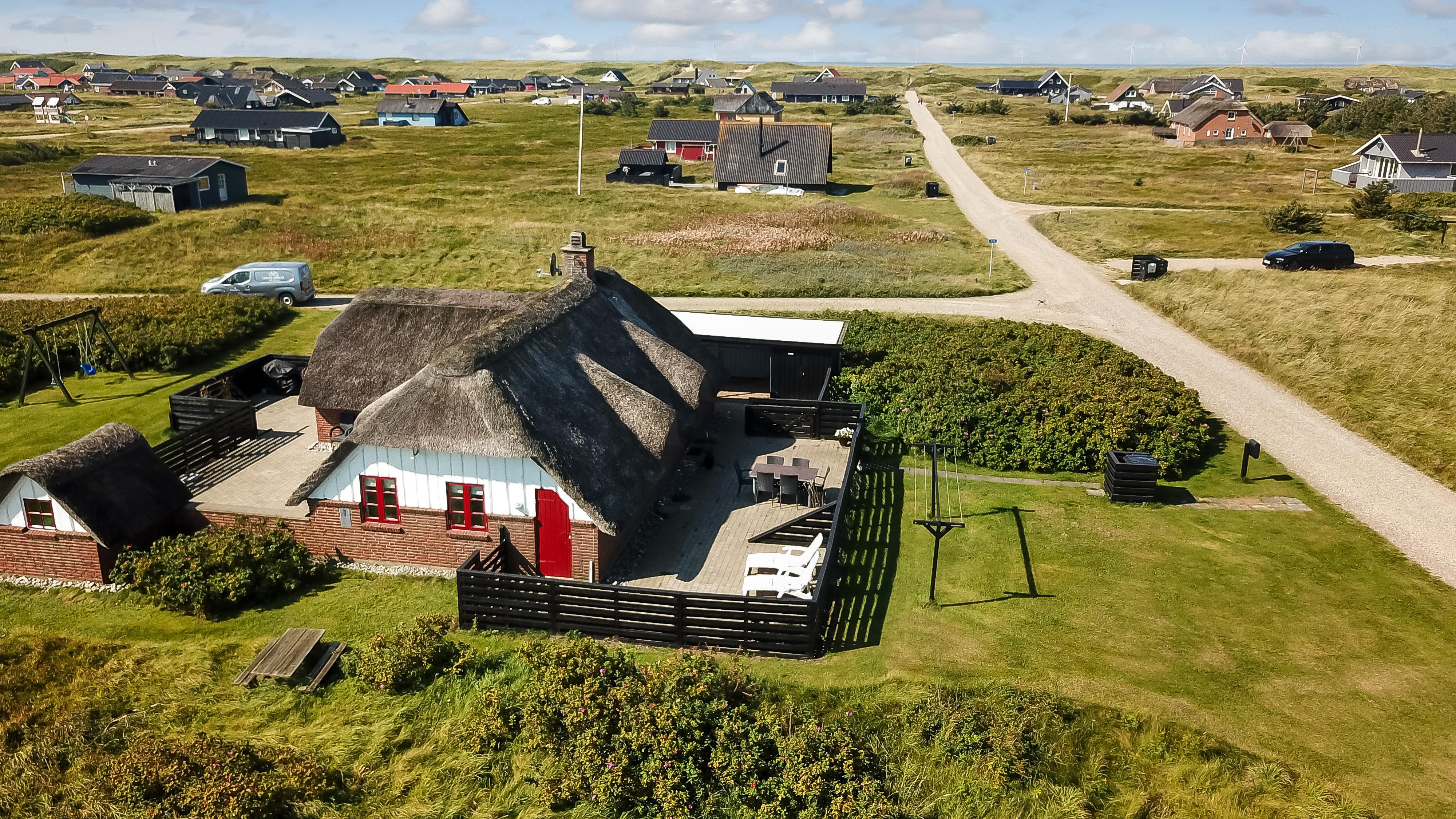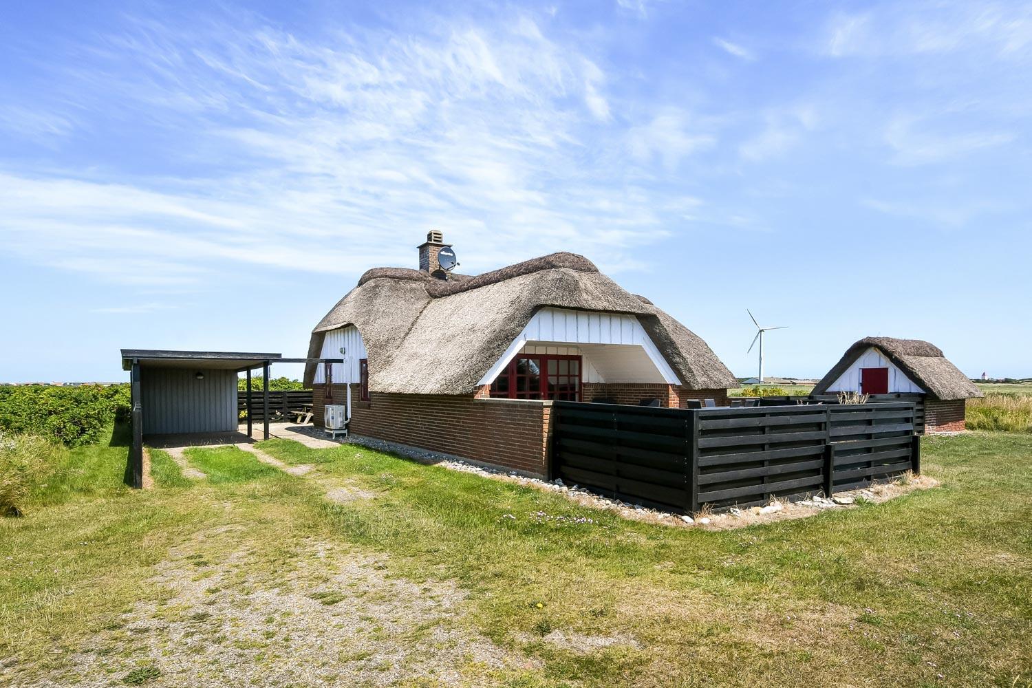Dette skønne stråtægte stenferiehus ligger blot 350 m fra Vesterhavet. Huset har plads til 6 personer og er løbende renoveret sidst i 2024. Der er gratis fibernet og 2 hunde er tilladt.