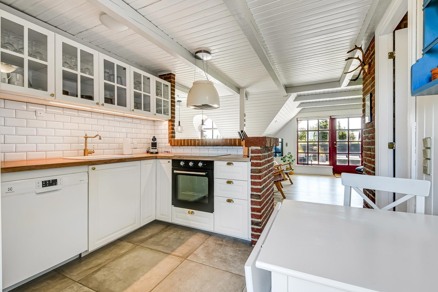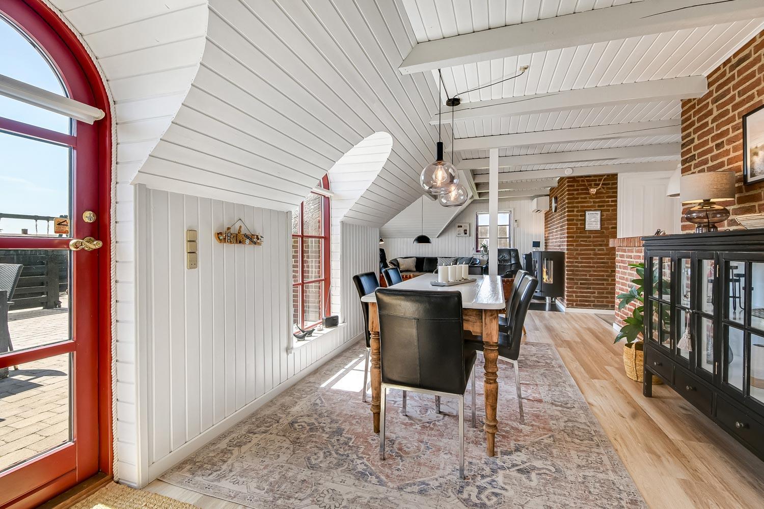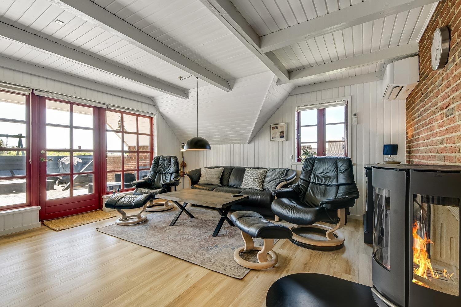 Huset er personligt og hyggeligt indrettet med trægulve med løse tæpper. Flot badeværelse med toilet, håndvask, bruser, gulvvarme samt adgang til sauna. Køkkenet er velindrettet og er kombineret med stuen. Stuen er indrettet med brændeovn, radio og TV med DR1 og TV2 og en parabol til tyske kanaler, desuden er der et chromecast så der er mulighed for at streame APP/Radio/TV som I selv har et abonnement til. Der er også en varmepumpe som sammen med brændeovnen er medvirkende til at give en behagelig varme uanset årstid og samtid sparer på forbrugsafregningen. Der er gode lædermøbler i stuen. Tæt på køkkenet står spisebordet med plads til 6 personer, Køkkenet er veludstyret og glaskeramisk komfur, emhætte, køle-/fryseskab, opvaskemaskine og klinkegulv. Huset råder over 3 gode soverum: 2S + 1DS + 1K. Fibernet. 2 hunde tilladt. Ikke rygerhus. Obligatorisk slutrengøring