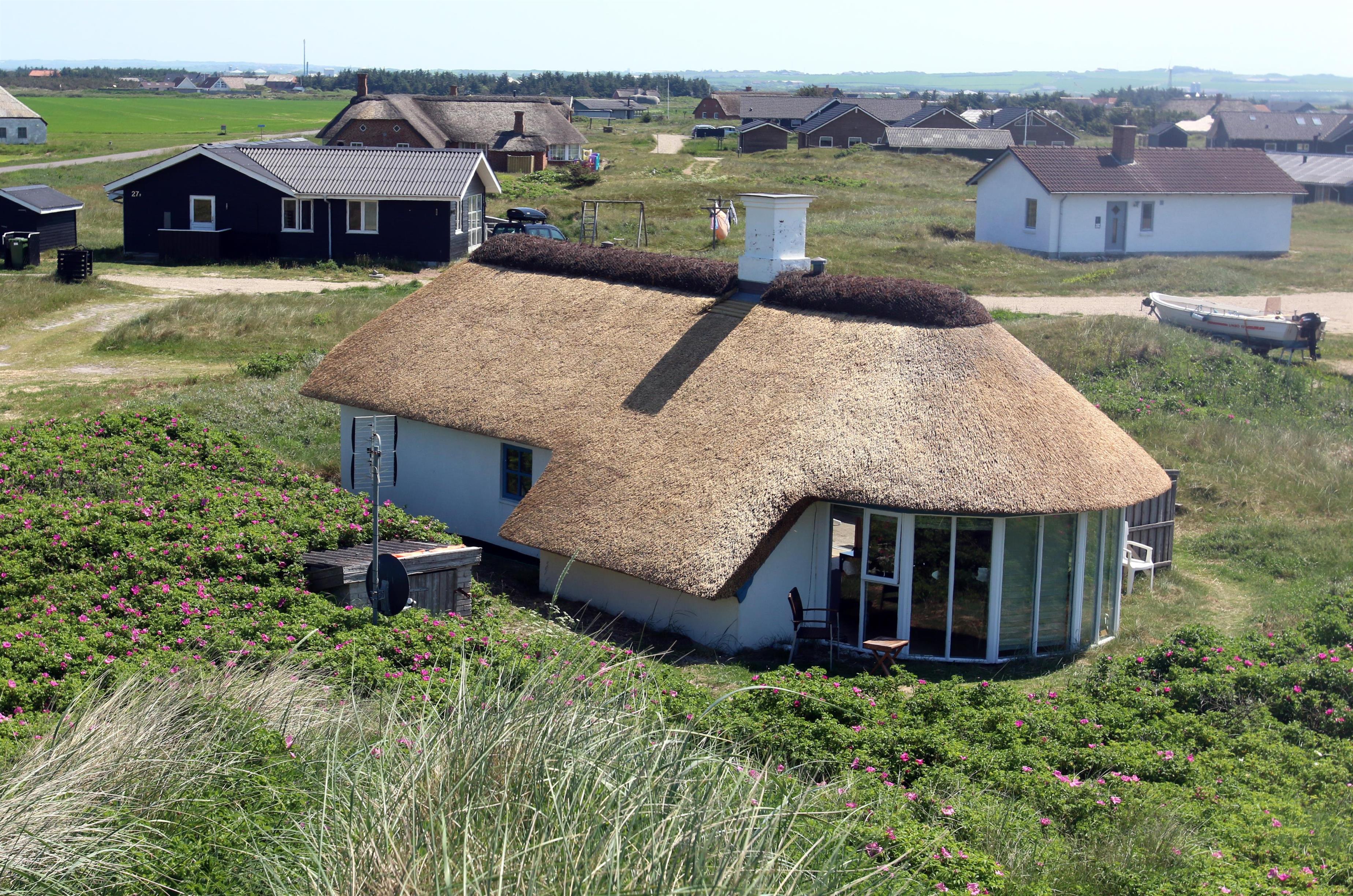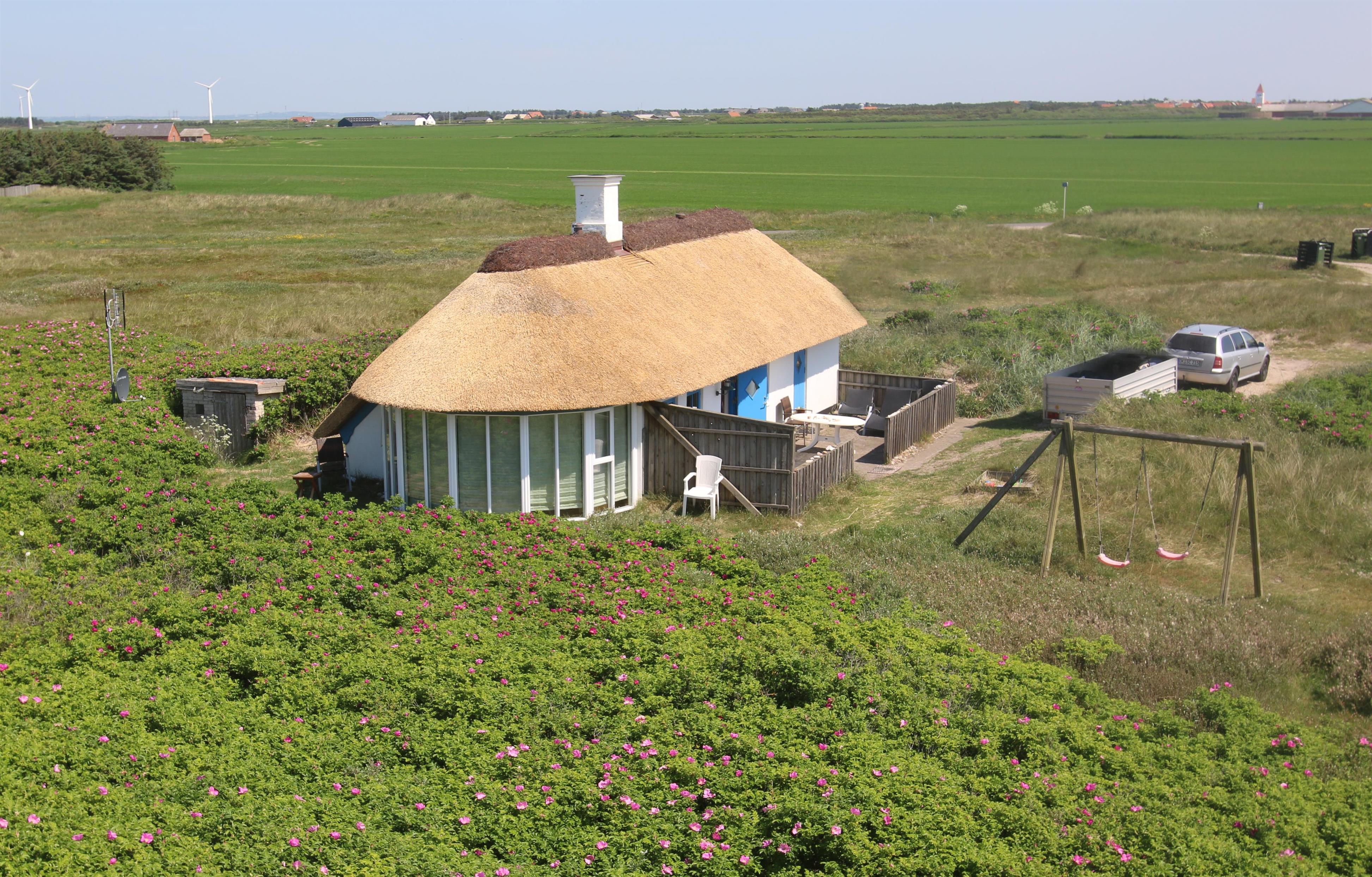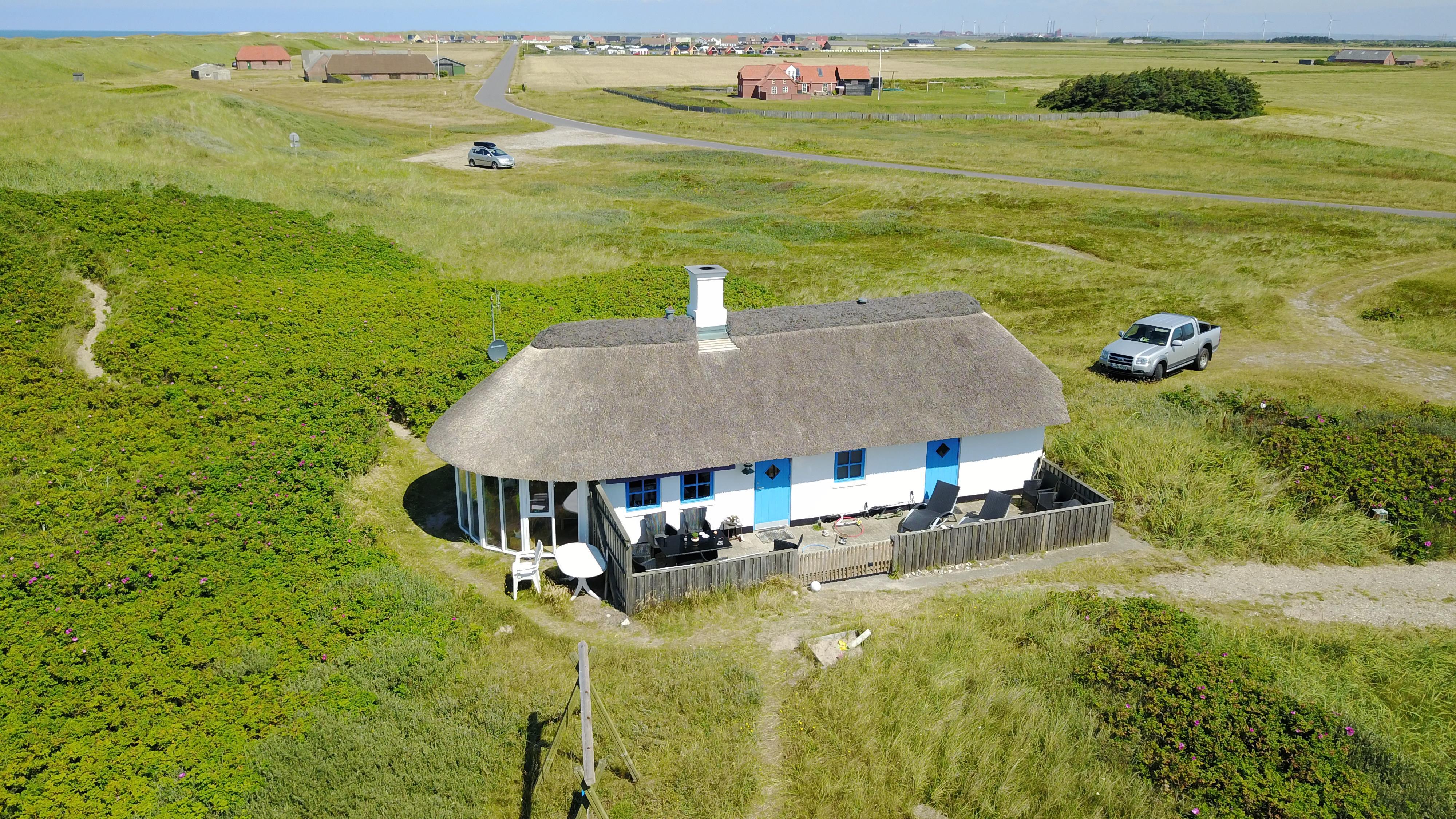 I yderkanten af feriehusområdet i Vrist, ligger dette dejlige stråtækte feriehus i første klitrække ved Vesterhavet. Huset ligger lidt afsides, så man uforstyrret kan nyde sin ferie. Huset har plads til op til 7 personer og 1 husdyr. Gratis fiber-internet. Ikke rygerhus.