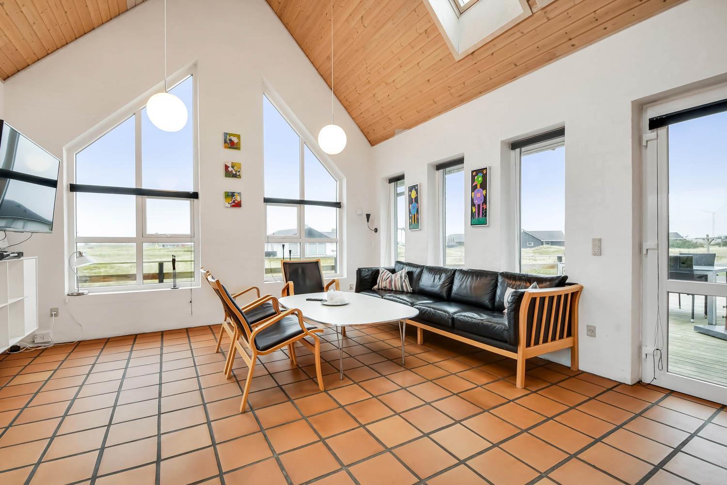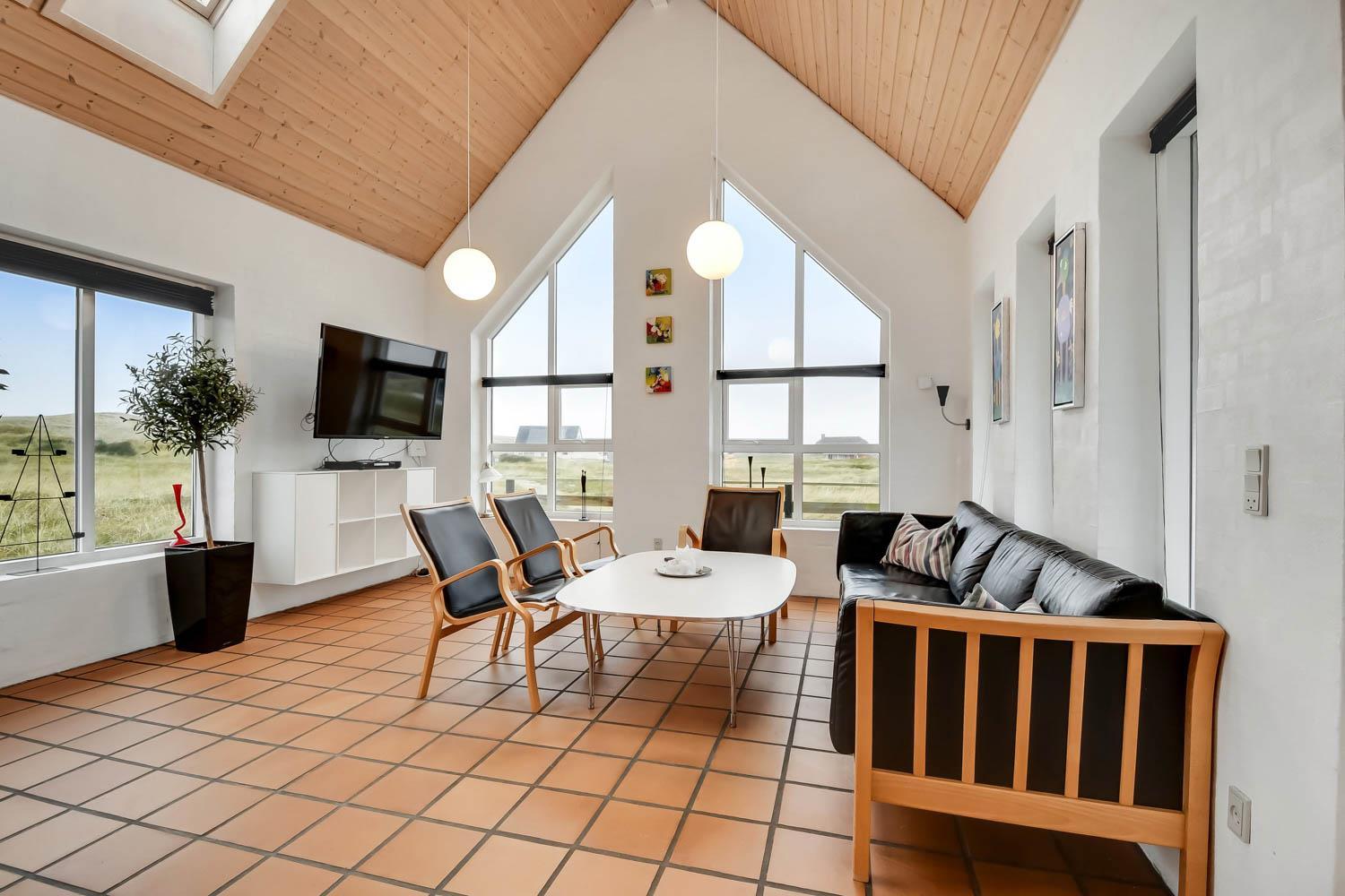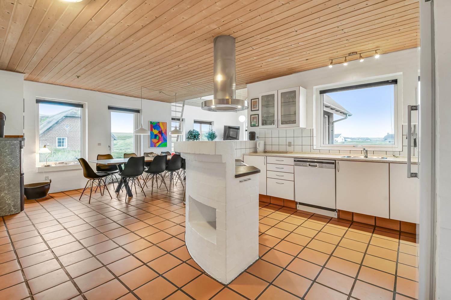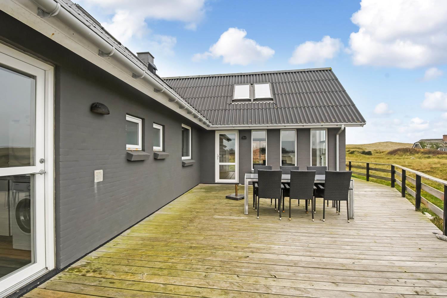 Huset råder over en 200 m2 stor og lækker træterrasse, som går hele vejen rundt om huset, hvilket giver rigtig gode muligheder for at finde læ. Der er naturligvis havemøbler og liggestole til rådighed. Det er den perfekte feriebolig med udsigt til klitterne, som kan danne rammerne for jeres helt unikke ferie meget tæt på Vesterhavet.