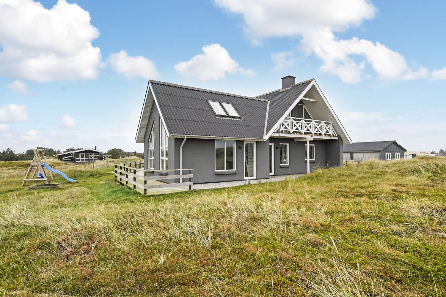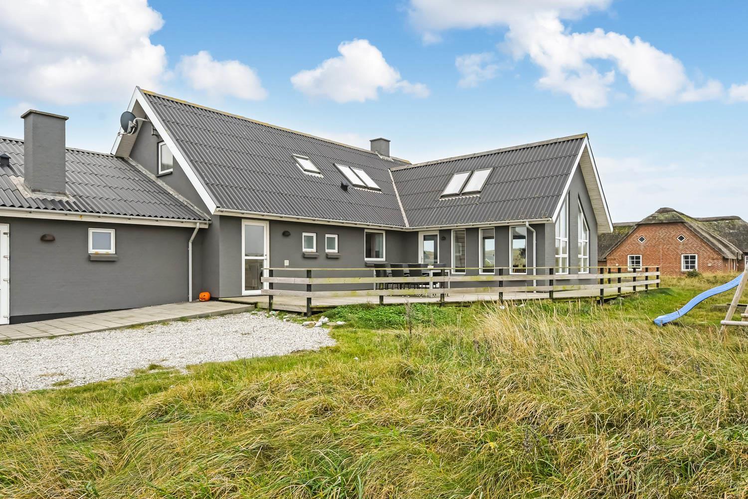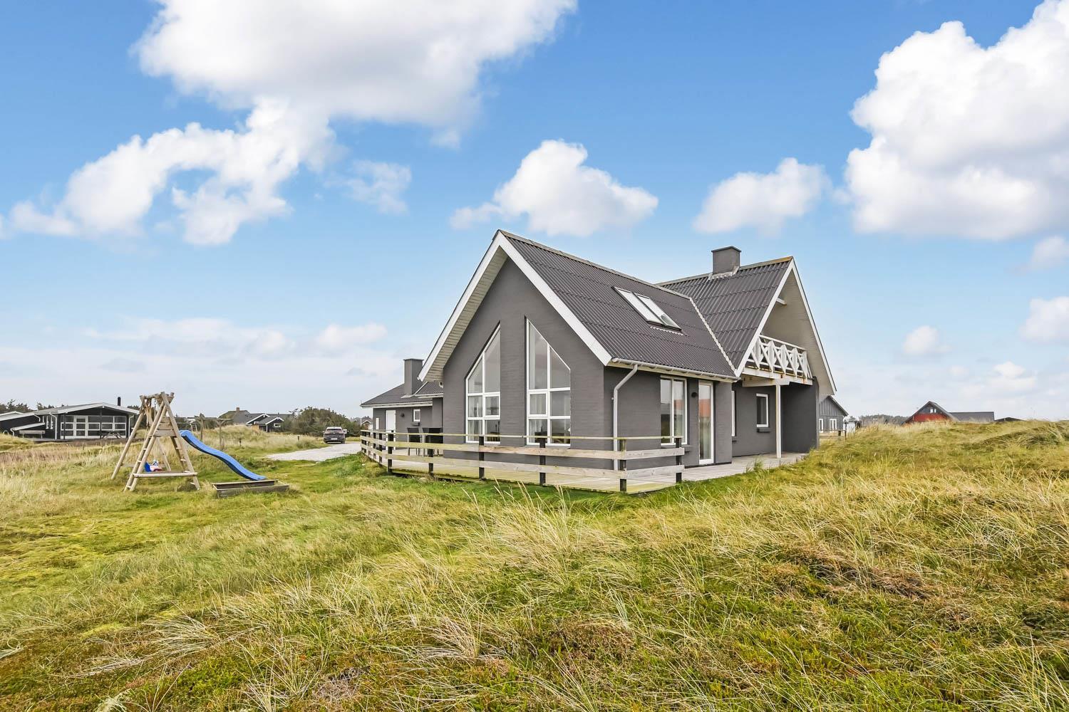 Dette luksusferiehus på 260 m2 i 2 etager er beliggende på en stor naturgrund meget tæt på Vesterhavet (ca. 150 m). Huset er velegnet til 2-3 familier eller par, som ønsker at bo under samme tag. Gratis internetadgang.